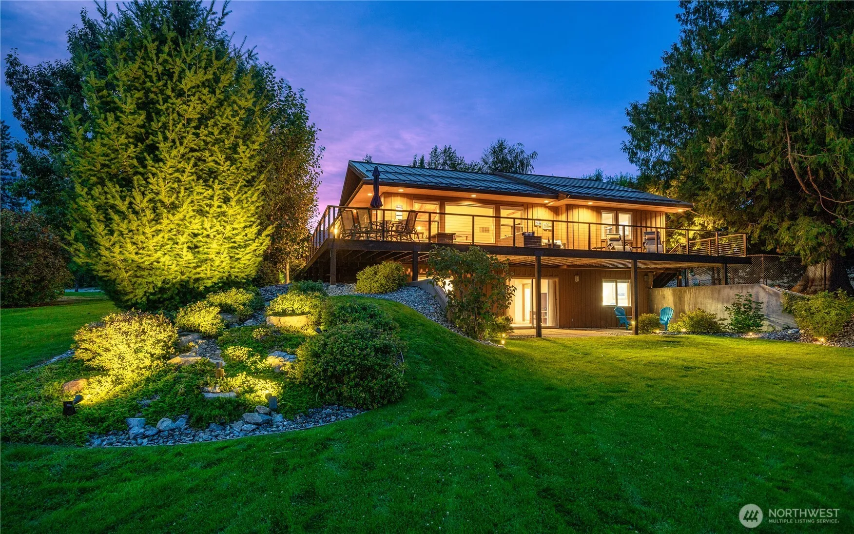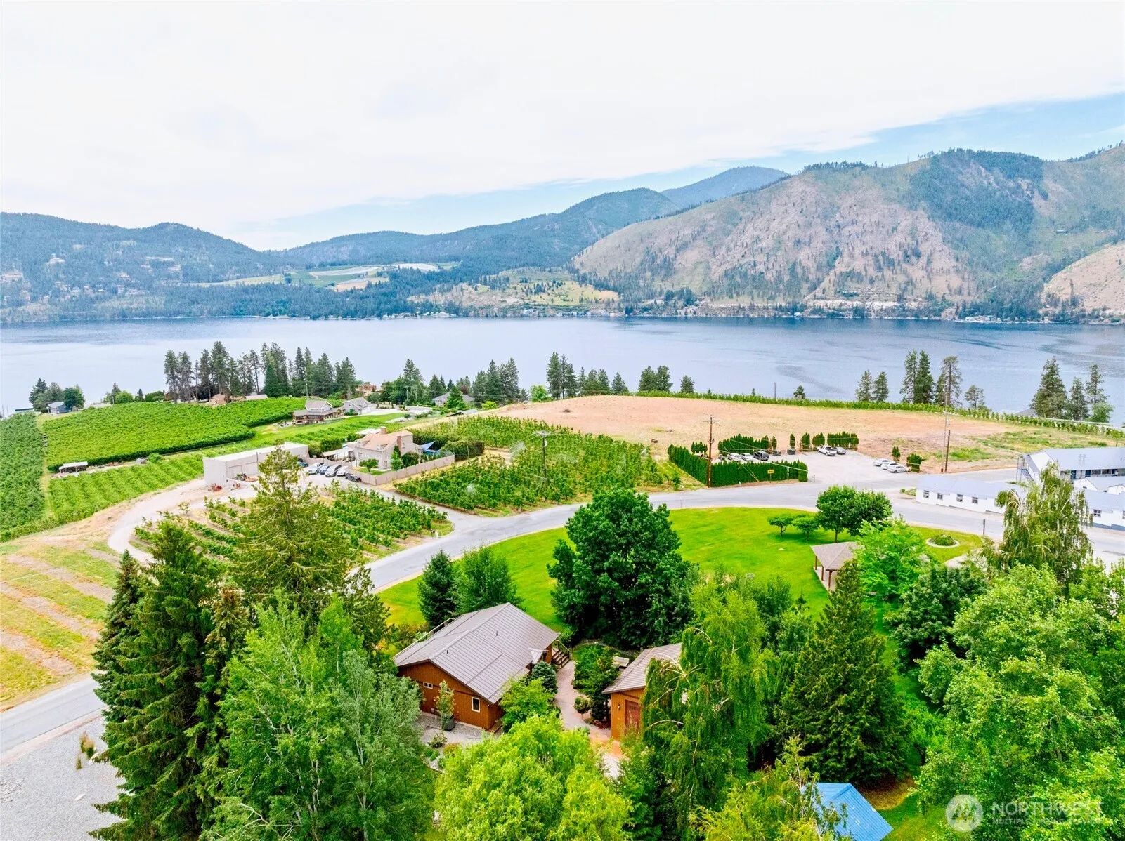 This Lake Chelan view home features a gorgeous park-like setting within a fully-fenced half acre lot – all just 5 minutes from Downtown Manson. With 4 bedrooms & 2.75 baths, it features a 52′ wraparound deck, reclaimed wood timber frame & a detached 2-car garage/shop with 50-amp RV/boat parking. The main level includes a vaulted great room, kitchen, primary suite, guest room/office & full bath. Downstairs offers 2 more bedrooms, den, bonus room ideal for a gym or wine storage & a patio with hot tub. Mature landscaping creates a private, fairytale-like setting offering multiple outdoor entertaining areas. Surrounded on 3 sides by HOA-maintained open space, this beautiful property also includes access to the Sienna community clubhouse.