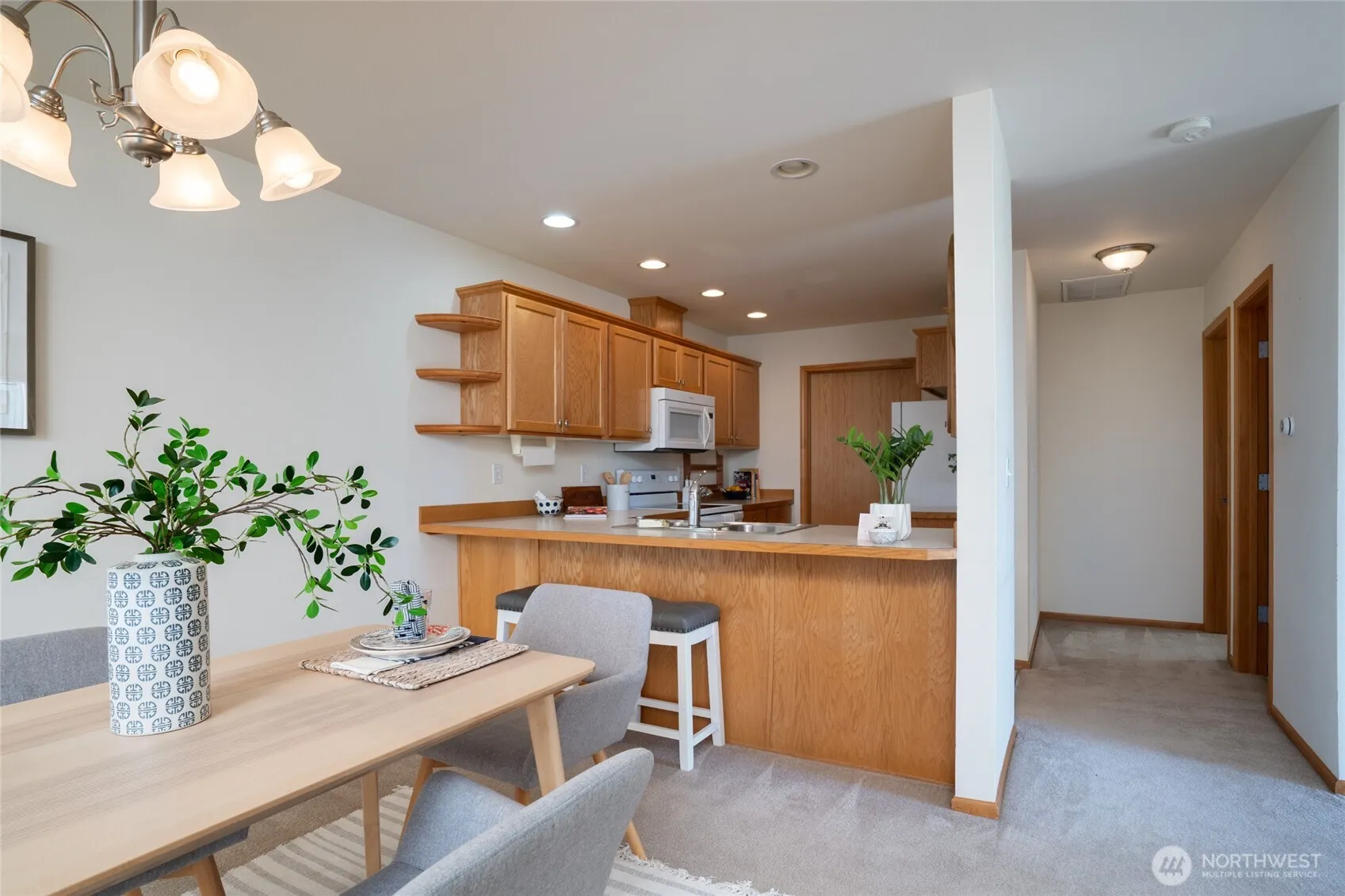 Welcome to easy living at Cedar Point! This beautifully maintained, move-in ready 2-bedroom, 2-bath condo is tucked in a peaceful 55+ community with no special assessments. Enjoy an end-unit location with a private entrance and lovely views of the park and surrounding mountains. The single-level layout is open and bright, with a spacious kitchen, breakfast bar, dining area, and sun-filled living space. The primary suite offers a walk-in closet and private bath. Additional highlights include a newer roof, private deck, laundry room, one-car garage, and access to community amenities like walking trails, a clubhouse, secure mailboxes, and RV parking. Close to shopping, medical services, and the Senior Center—this home has it all!