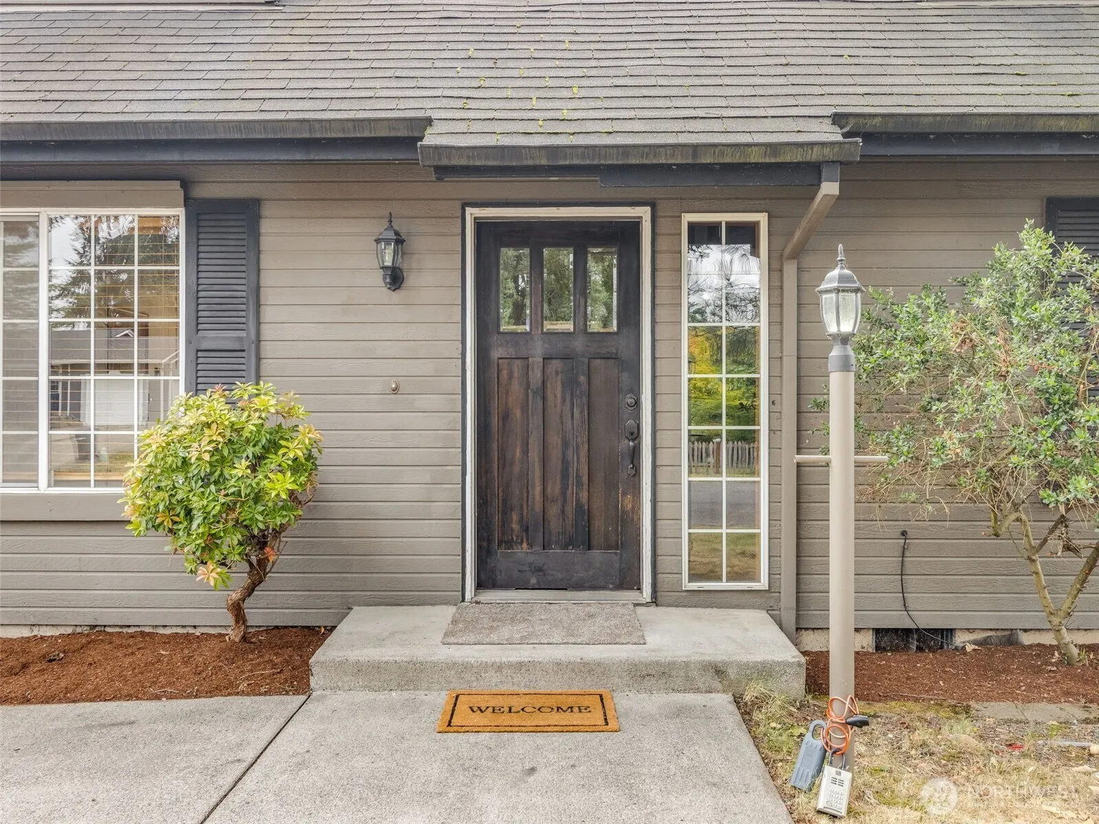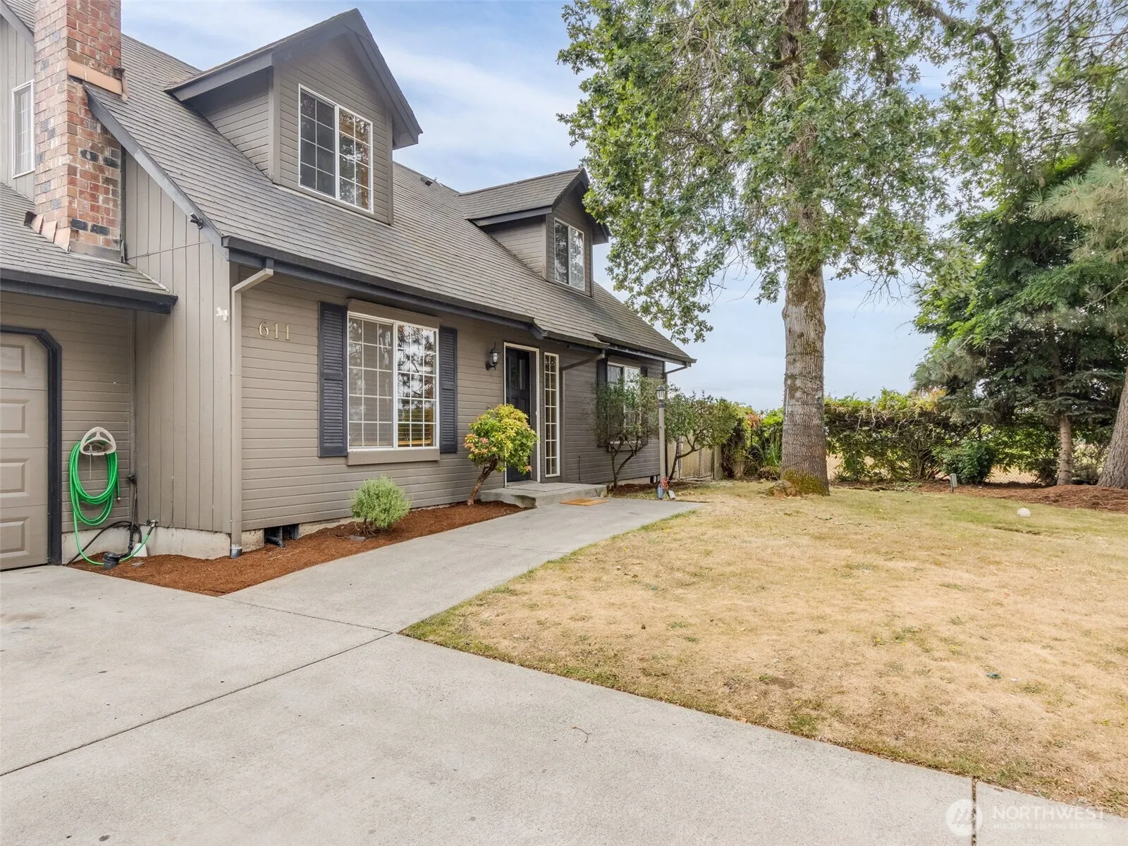 WOW! Cookie-cutter home? I DON’T THINK SO! Tucked at the end of a peaceful dead-end street, this charming 3-bed, 2.5-bath gem is a rare find in an established neighborhood. Freshly updated with new paint and carpet, it features a cozy wood-burning fireplace, bright dining area, and a kitchen with breakfast bar and large pantry. Main-level primary suite includes a tile shower, while two bedrooms and skylit full bath await upstairs. Versatile laundry with half bath. Outside offers fruit trees, berries, raised beds, a chicken coop, and TWO RV spots! Backing to green space with fresh landscaping and great storage. Minutes to schools and downtown Battle Ground!