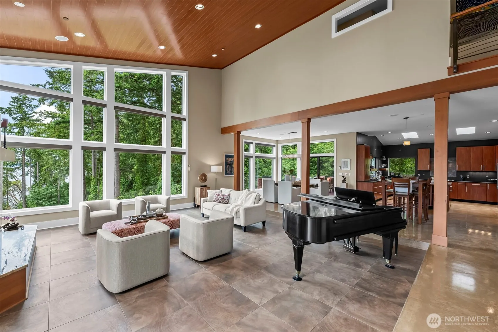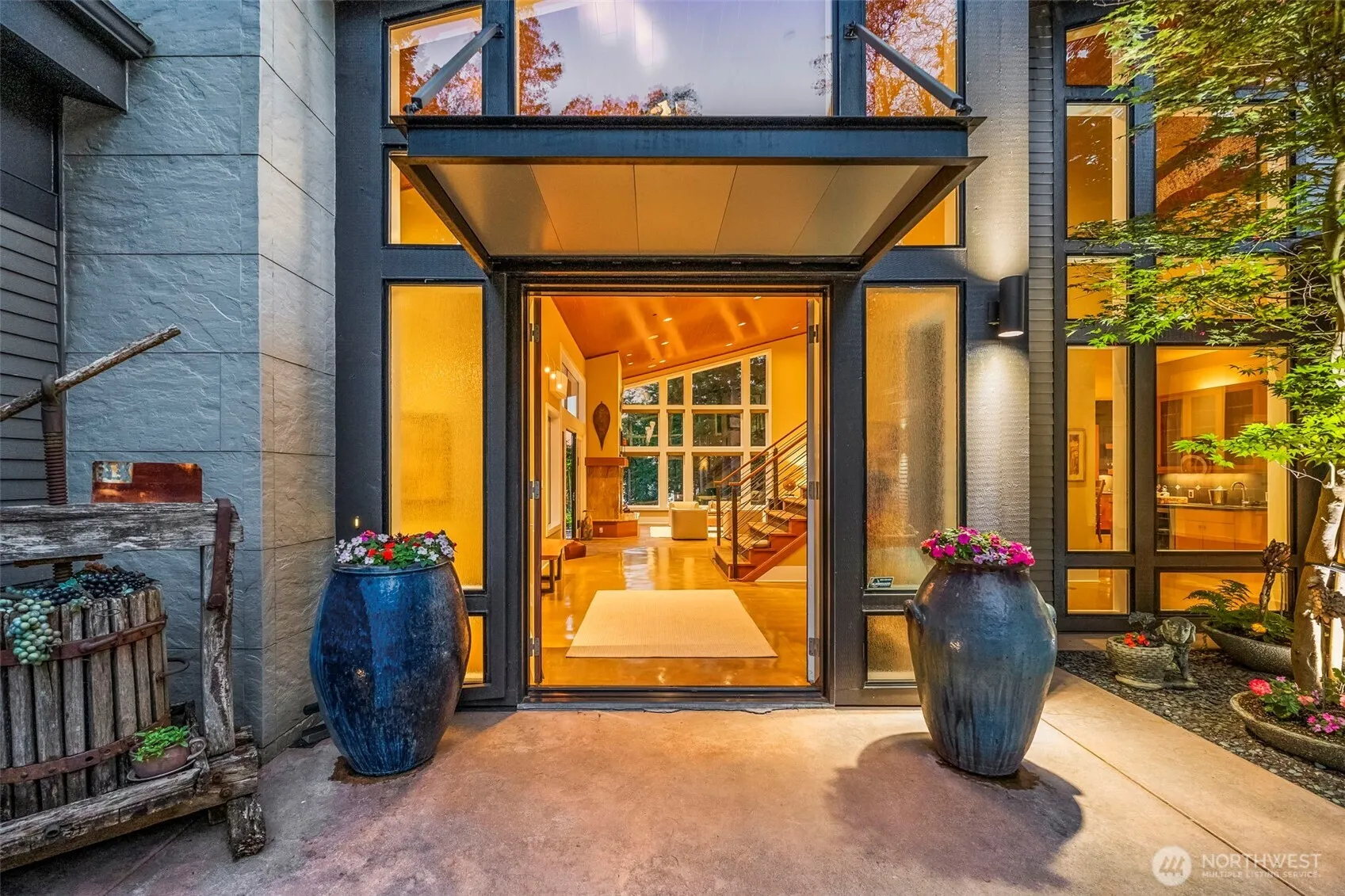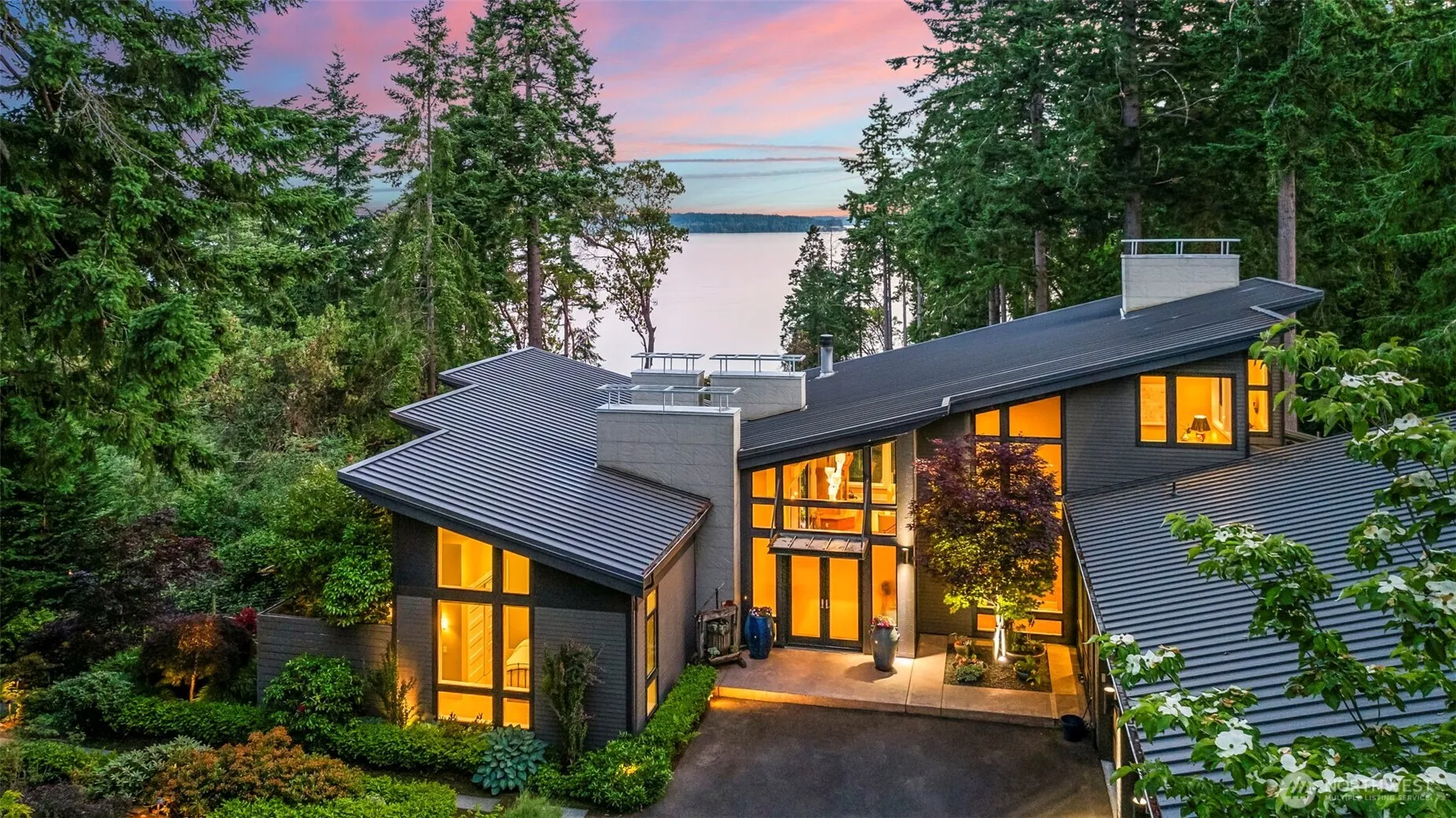 Sleek, striking, and set apart—this modern masterpiece is nestled on nearly 3 acres with dramatic views over Carr Inlet. A true expression of design and lifestyle, it offers over 5,000 SF of curated living space for those who value architectural integrity and the quiet luxury of privacy. Walls of glass flood the interiors with natural light and ever-changing views. Radiant heated floors, clean lines, and artisan craftsmanship define the open-concept spaces. The main-level primary suite is a serene escape with a sunken soaking tub and private outdoor atrium shower—spa living at home. Grand yet welcoming, sophisticated yet warm—this is a home that inspires. For entertaining, for retreat, for those who expect more.