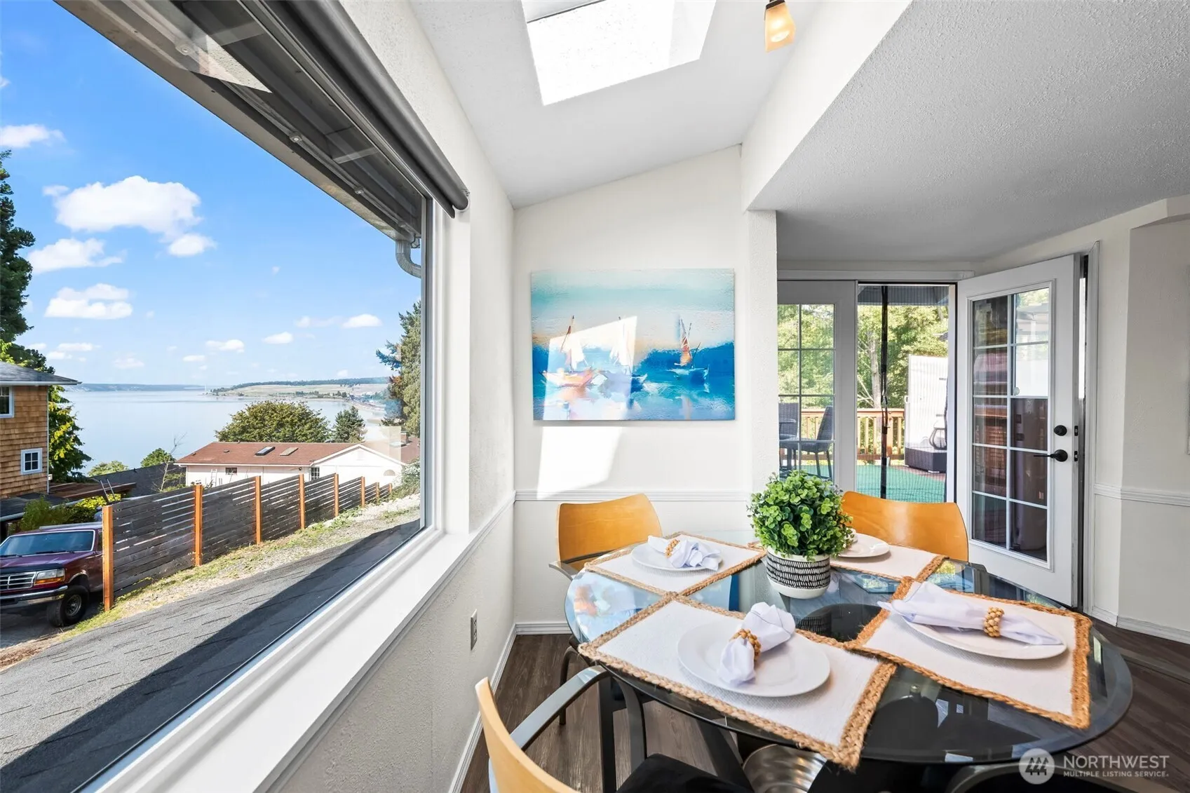 Discover timeless charm and modern efficiency in this iconic 1880s Victorian located in the Steilacoom Historical District. This beautifully updated three-level home offers full water views from nearly every room, capturing sweeping vistas of the Puget Sound, Olympic Mountains, and Chambers Bay. A rare main-floor bedroom adds flexibility and convenience, while thoughtful upgrades throughout help you save on utility costs, including solar panels, ductless heating and cooling, a tankless water heater, and a new 30-year roof. Extensive improvements also include updated plumbing, electrical, windows, appliances, EV charging, and a generator transfer switch, blending peace of mind with modern comfort. The finished basement ADU with separate entrance, kitchenette, full bath, and washer/dryer provides excellent potential for multigenerational living or rental income. Step outside to three expansive decks and a patio, perfect for entertaining, relaxing, or enjoying Fourth of July fireworks and vibrant town events—all just steps from charming downtown Steilacoom. The fully fenced property offers five parking spaces, and unbeatable walkability to Sunnyside Beach, the ferry terminal, farmers market, parks, and local shops, with easy access to I-5 and JBLM. This classic Old Steilacoom home seamlessly blends historic character, modern updates, income potential, and breathtaking views—an exceptional opportunity in one of the South Sound’s most beloved communities.