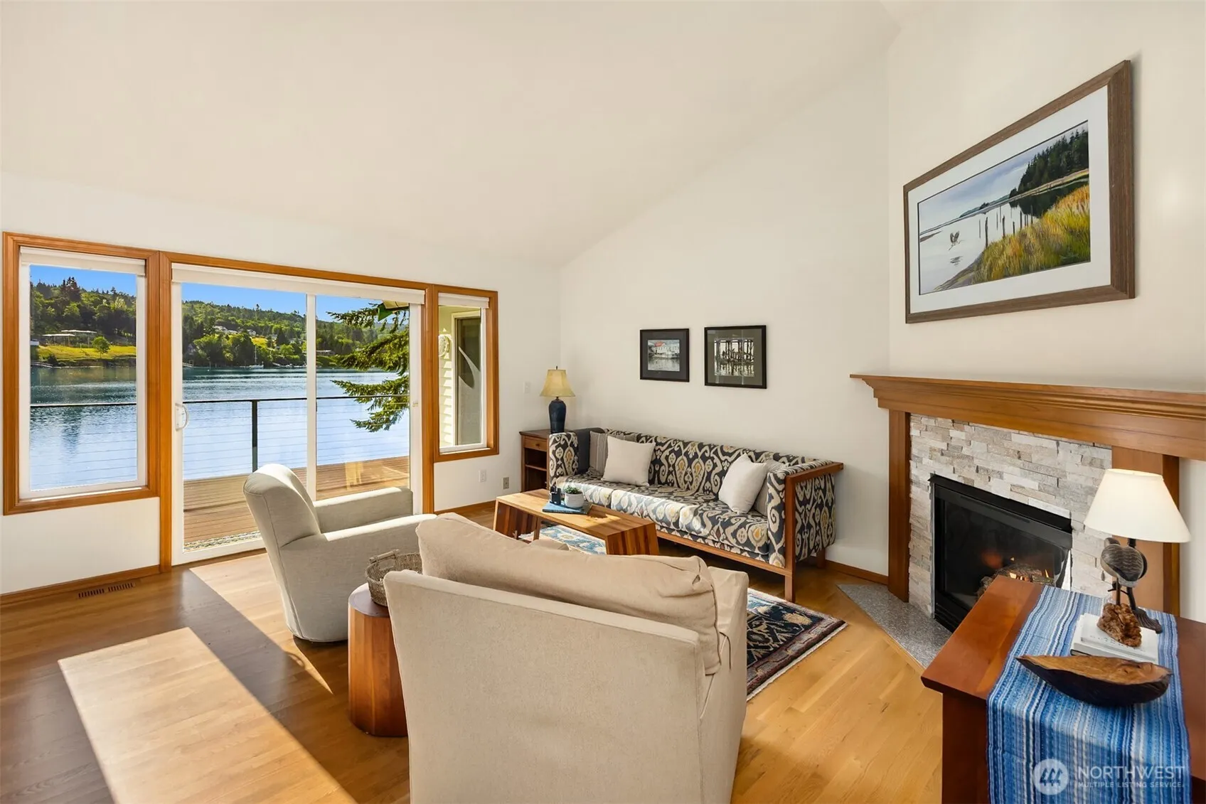 Discover serene waterfront living in this immaculate, light-filled, daylight rambler. Set on 1.32 idyllic acres with 107 feet of low-bank waterfront on picturesque Mats Mats Bay, this gem is turn key ready. Nestled in a tranquil setting with mature landscaping & garden space, this home boasts a new kitchen, high ceilings & hardwood floors throughout the main floor. The primary suite on the main features a pretty en suite bath & opens to the waterside deck. Enjoy indoor-outdoor living with a covered front porch, large deck overlooking the bay & private stairs to the beach. The finished walk-out basement provides ample living space, storage & flexibility. A rare opportunity for peaceful, coastal living just minutes from town.