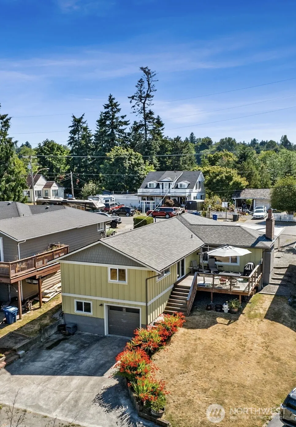Located a quick walk to Marina District amenities, this turnkey VIEW rambler with convenient commuter location is not one to miss! The open floor plan includes spaces that flow from room to room on out to the lovely view facing deck. The light & bright Primary Bedroom features a walk in closet and three quarter bath. With landscaping that is easy to care for and plenty of room for toys – note the 710sf garage that features ample storage and shop space, as well as off street RV and boat parking with alley access – this inviting home also features thoughtful updates throughout: oak hardwood flooring, refreshed paint and lighting, newer furnace and A/C, newer roof, kitchen appliances, 2021 hot tub & so much more!