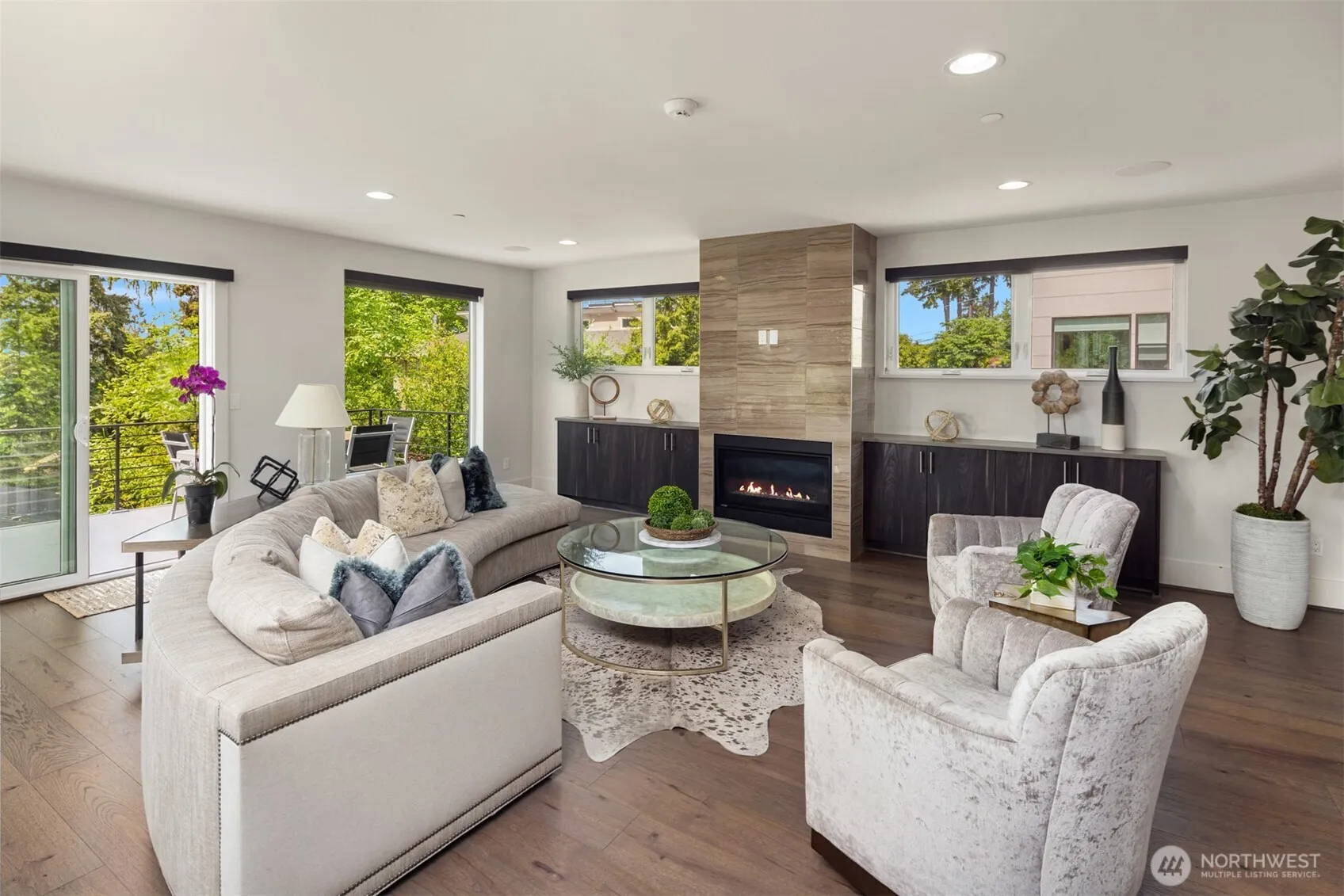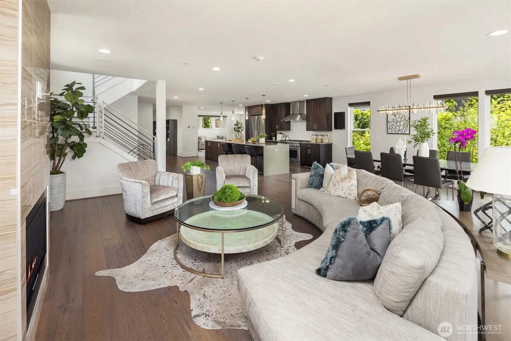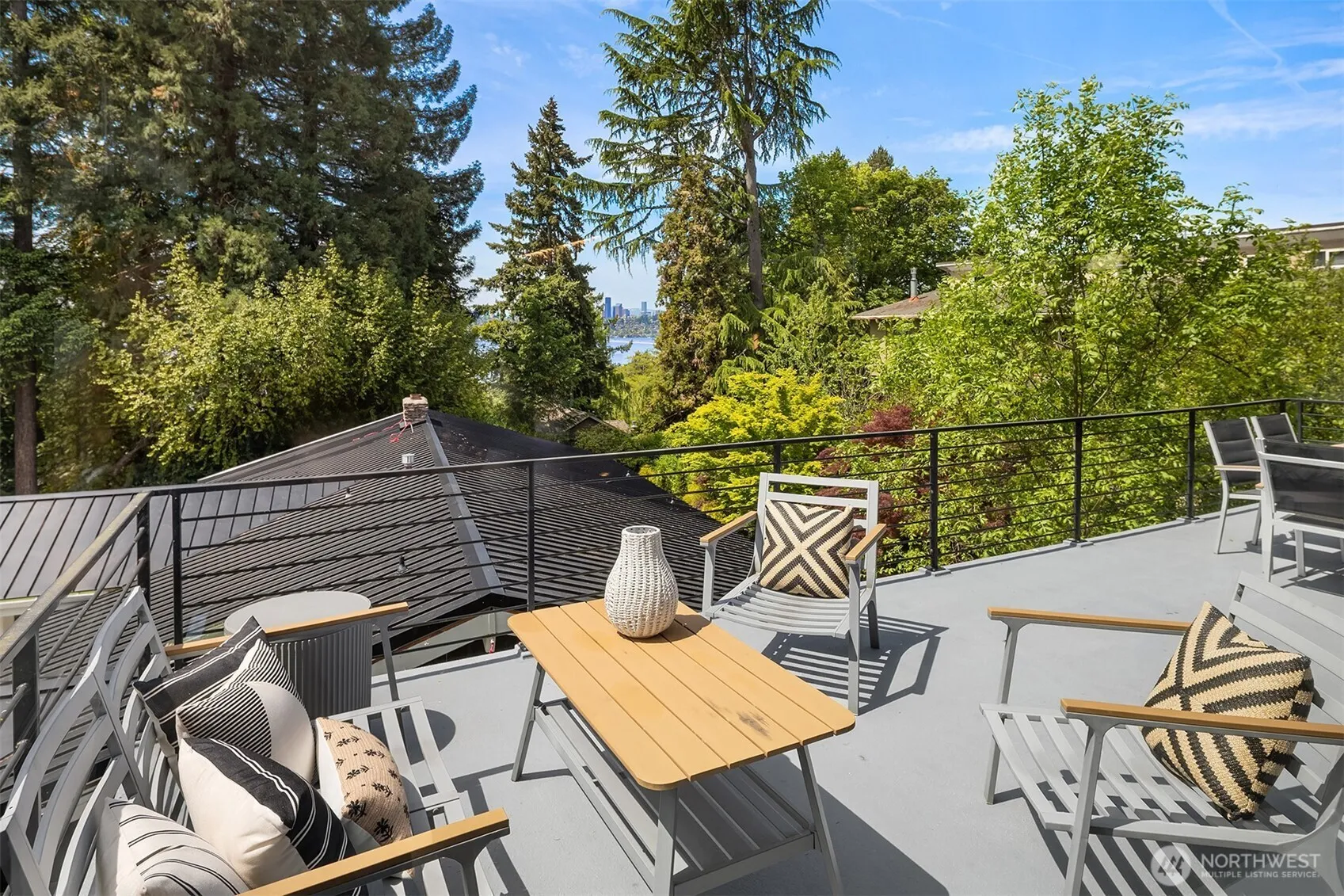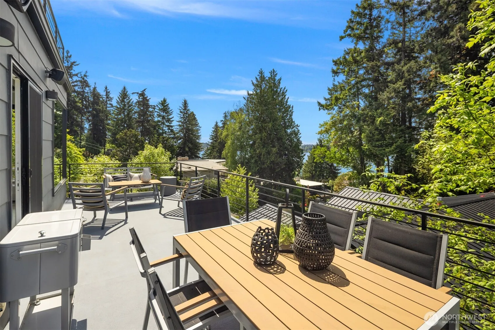 Escape to this modern urban retreat nestled on a serene street at Mercer Island’s North End. Its open interiors live like new w/expansive windows framing stunning sunsets and views to the lake, Seattle skyline, & Olympics beyond. Relax or gather in voluminous living & dining areas flowing around a grand epicurean’s kitchen, chefs will love the epic Thermador range & massive waterfall island. Step out for alfresco dining on a view deck. Clean lines & high-end finishes continue upstairs in the primary suite escape w/ its own private balcony. Great flex space w/ 4 more bedrooms + den & rec room. Certified green built by Build Urban with H.E. heating/cooling + EV charger. Stroll to waterfront beaches, or follow the nearby path to downtown MI.