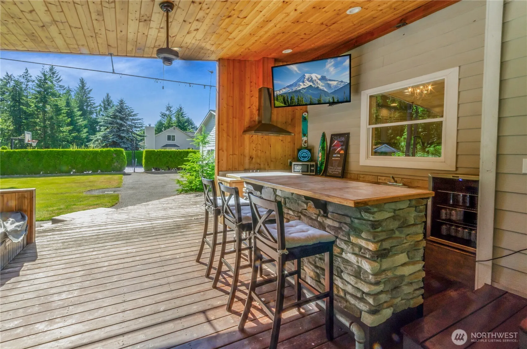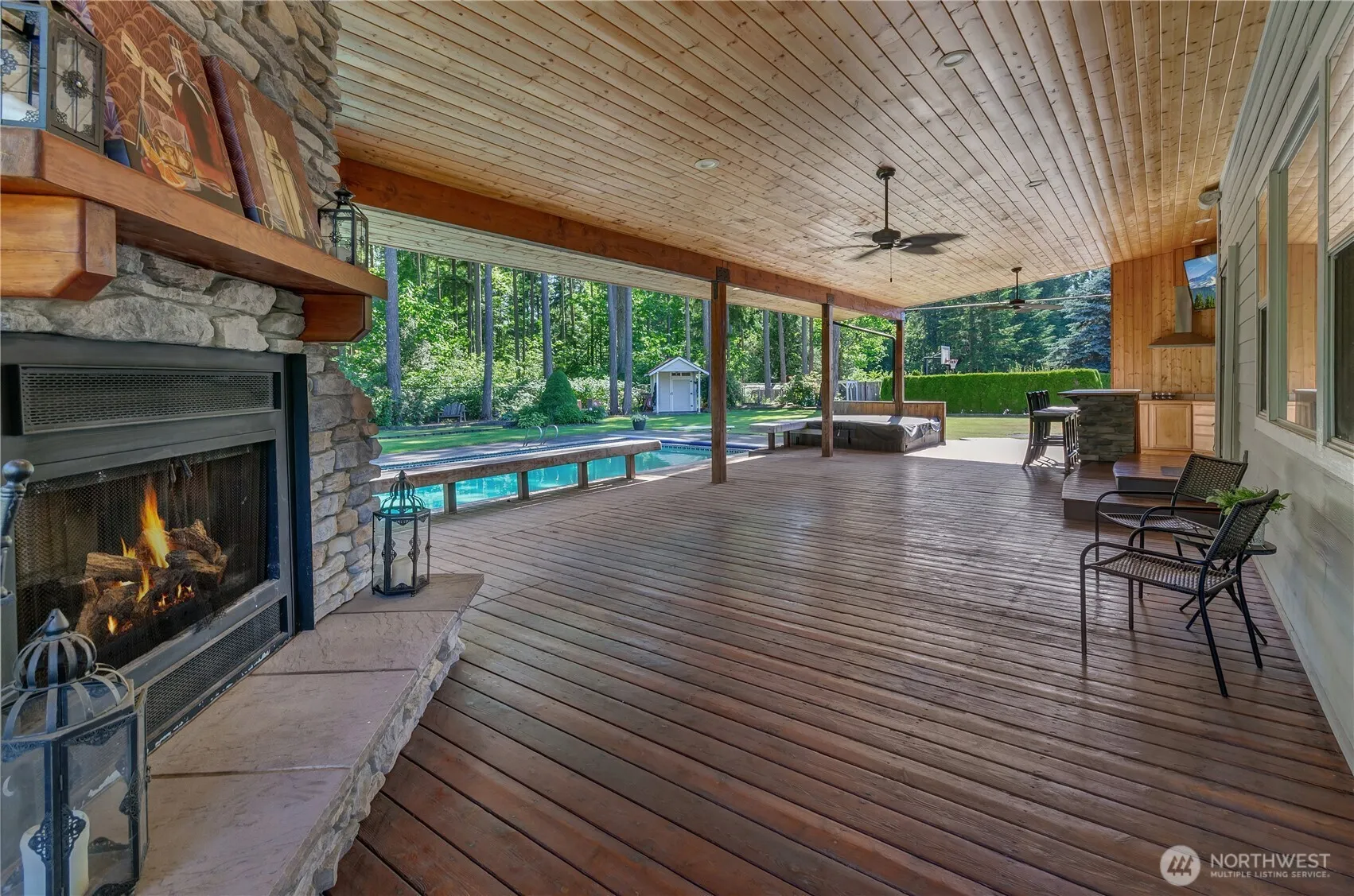 Get ready for summer!! This is a great home for entertaining with a huge fenced backyard, covered patio with fireplace and bar, in ground pool full sports court. There is plenty of room for parking cars and whatever else you please and a large detached shop for all the toys. Enjoy the remodeled kitchen with quartz countertops, oversized fridge and beautiful cabinets. The living room is cozy with a gas fireplace and built in shelves. The primary offers a walk in shower and separate soaking tub. The entire property is irrigated with an in-ground sprinkler system and there is a greenhouse for gardening. There is an attached pool house area with bathroom!
