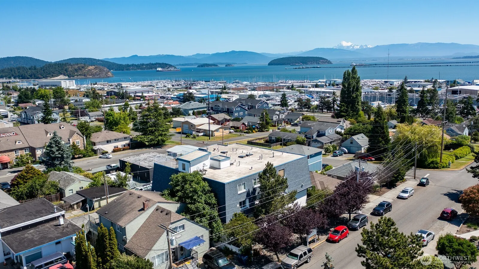 Top-floor charm with sweeping views! This delightful 2-bedroom, 1.75-bath condo offers picture-perfect vistas of Mt. Baker, Fidalgo Bay & downtown. Located in a prime corner position, this top-level bungalow is filled with natural light & perfectly situated close to town, beaches, Tommy Thompson Trail & convenient hwy access. The living is easy with one-level design, in-unit laundry, secure entry, elevator to all floors, both street & covered garage parking. Enjoy private deck off the primary bedroom, plus a rooftop terrace ideal for morning coffee or watching sailboat races glide across the bay. Additional perks include community rec room & private storage. Comfortable, connected & full of charm—this is Anacortes condo living at its best.