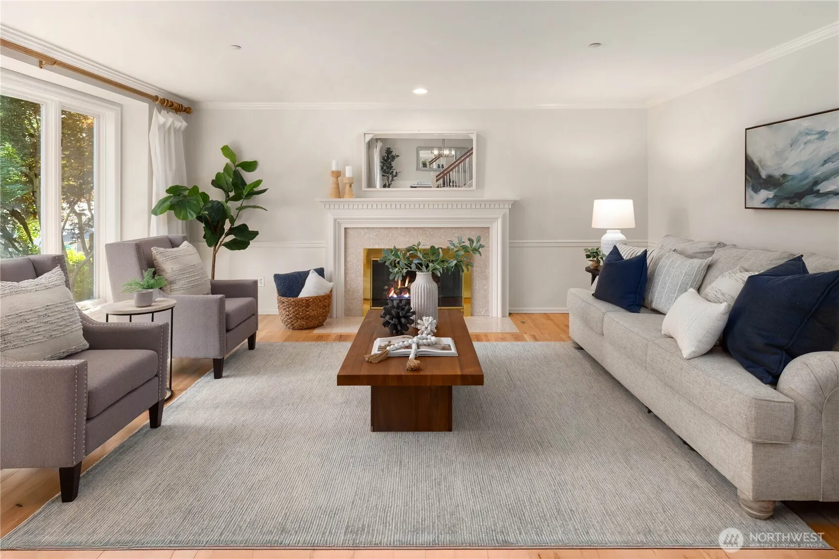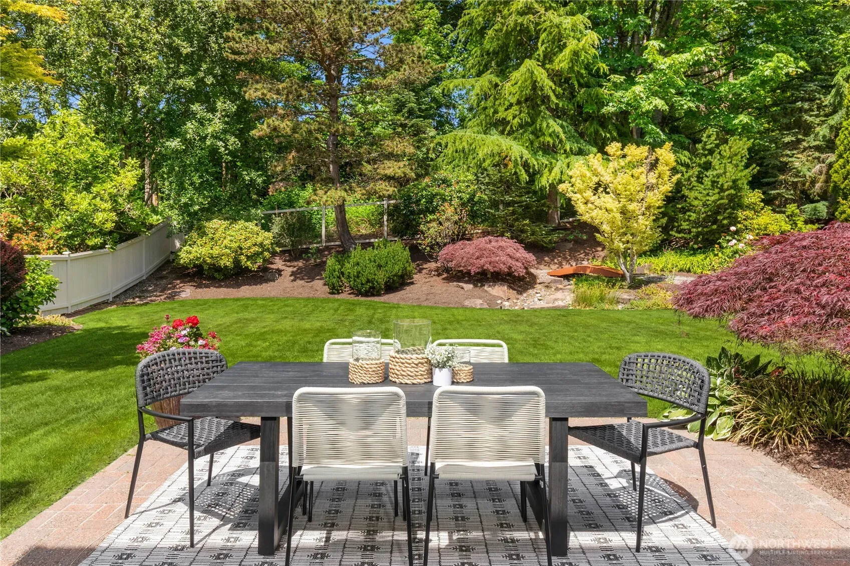 Tucked within the coveted Meadow View Park community, this impeccably maintained 4-bed, 3-bath home offers timeless design and serene livability. Backing to a protected greenbelt, the lush, level backyard is a private oasis—perfect for entertaining with a large patio, retractable awning, and newer luxury saltwater spa. Inside, light-filled spaces with vaulted ceilings and skylights flow effortlessly, offering multiple versatile living areas, an upper loft, and a well-appointed kitchen with GE Monogram appliances. Generous primary suite with spa-like, 5-piece en suite bath and walk-in closet. Recent updates include new interior paint and carpet (2025), newer furnace and AC. Prime location near top-rated schools, parks, and commuter routes.