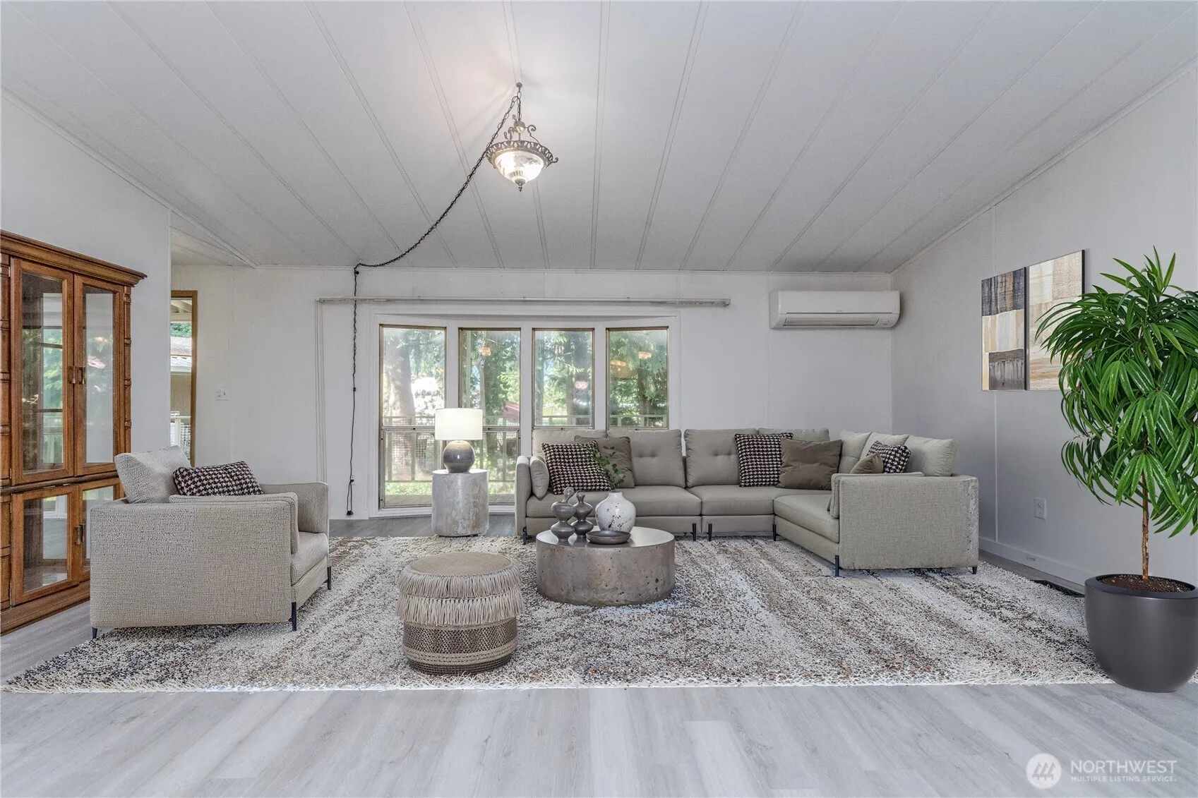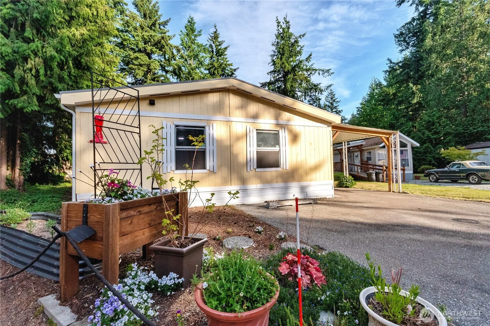 SPACIOUS 3-BED 2 BTH 1960 SQ FT home in Parkwood Mobile Manor 55+ park! Move-in ready home features newer vinyl plank floors throughout, fresh interior paint, massive storage & big island in large kitchen. Formal dining area with built-in hutch offers more storage. Additional storage in walk-in pantry & in laundry room. Flexible layout with a 3rd bedroom off living room is perfect as a guest room, craft space, or office. Primary suite includes a walk-in closet & ensuite bath & shower combo. Large walk-in closet in 2nd bedroom. New dishwasher, newer roof and newer mini-split for heat & cooling. 50-foot covered deck/walkway leads to 12×20, newer surface deck & pleasant open space view. 40ft x 12ft covered area