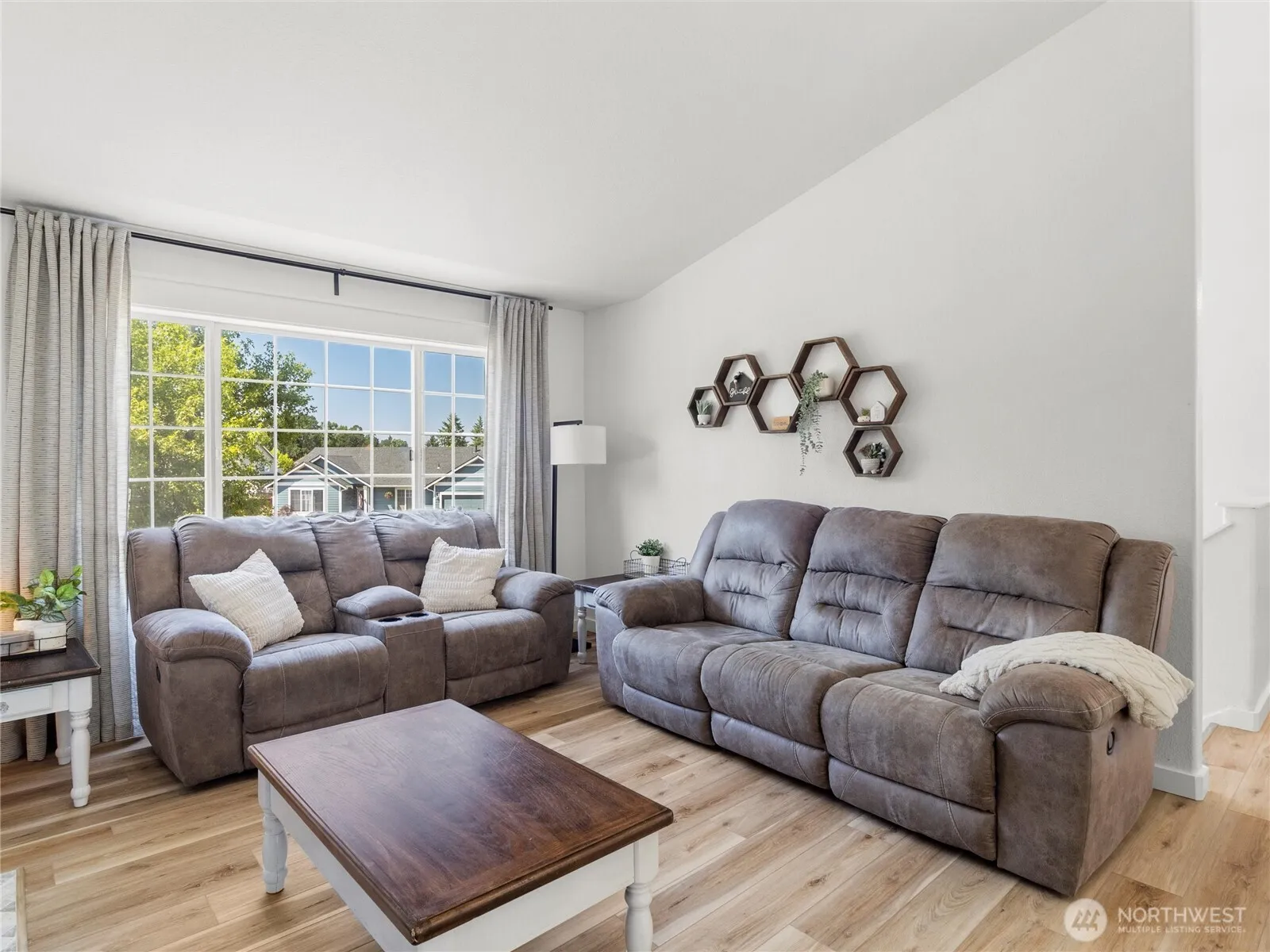 This bright blue split-entry beauty offers 5 bedrooms and 3 full bathrooms, thoughtfully updated throughout. Enjoy the modern touches including stylish accent walls, remodeled bathrooms, stainless steel appliances in an updated kitchen, and a cozy room featuring custom built-ins—perfect for a home office or creative space. The layout makes the home not only feel larger than it is, but allows everyone to spread out and enjoy their own space! Step outside to an entertainer’s backyard with upper and lower decks, a fully fenced yard, and plenty of room to play or relax! Plus a peak-a-boo view of Mt. Rainier! This inviting home blends character, comfort, and function—within minutes of all Yelm has to offer! Schedule your tour today!