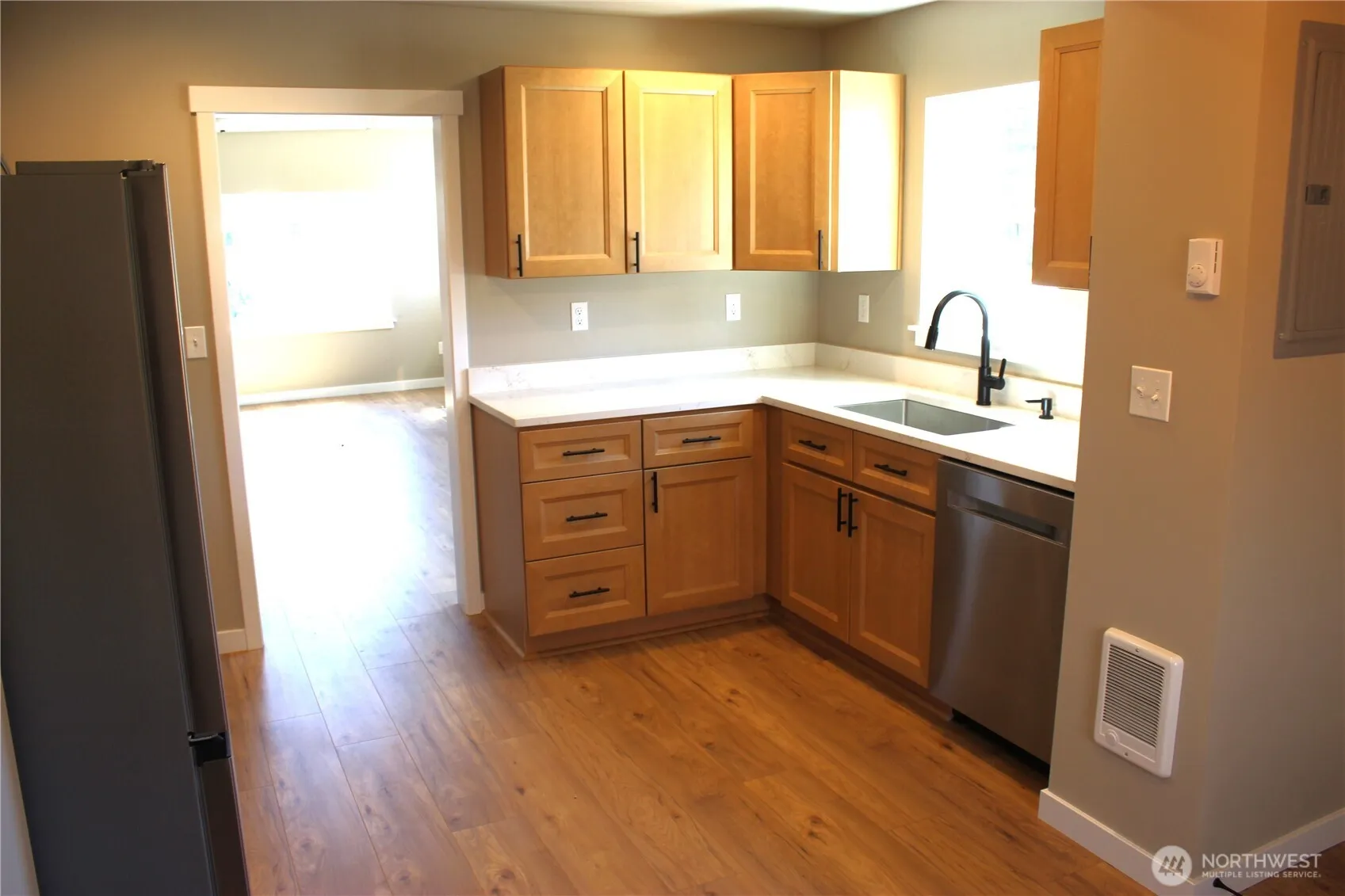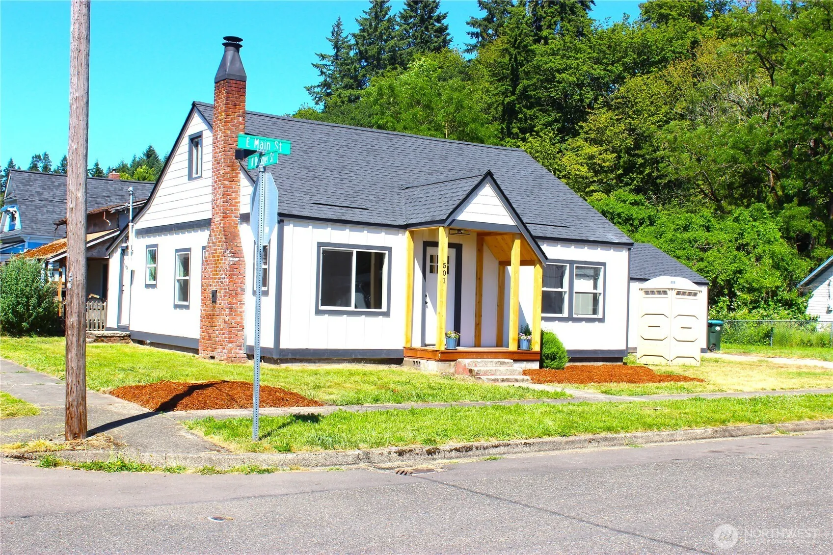 So much of this 1920s era home has been refreshed, updated and upgraded. Newly redone is the roof, siding, insulated vinyl windows, flooring, electric panel, HVAC system, kitchen and bath. Cute corner lot home is now energy efficient and modernized. Decor’ Quartz countertops, soft-close cabinets, tiled shower, vinyl plank laminate flooring, and ductless heat pump with AC. Matte black plumbing fixtures and stainless steel appliances. Features of this hm competes with new but at much lower pricetag. Good little garage/workshop for hobby’s and storage. Convenient location for dining and shopping. Walk to downtown restaurants and shopping. Enjoy the vintage brick streets of quaint and historic downtown Centralia. Broker is related to seller.