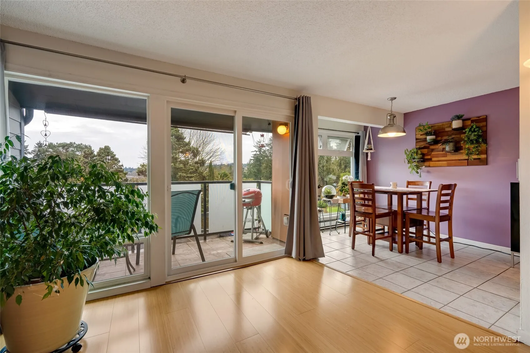 Wonderful top unit, 2 bedroom, 1 bathroom condo in Canyon Estates! This spacious unit features bamboo floors throughout. The large living area is open to the dining room as well as the huge balcony overlooking the territorial view. The exterior of the building was just completed with new siding, fresh paint, new balcony, new roof, and more! This unit has been updated with ample built-in closet storage and organization, maximizing the efficient floorplan. Both bedrooms are good size and the large bathroom has recently been updated with new shower and tub surround. Great location is easy to access the airport, I5, 405, Southcenter and more! This unit is a must see!