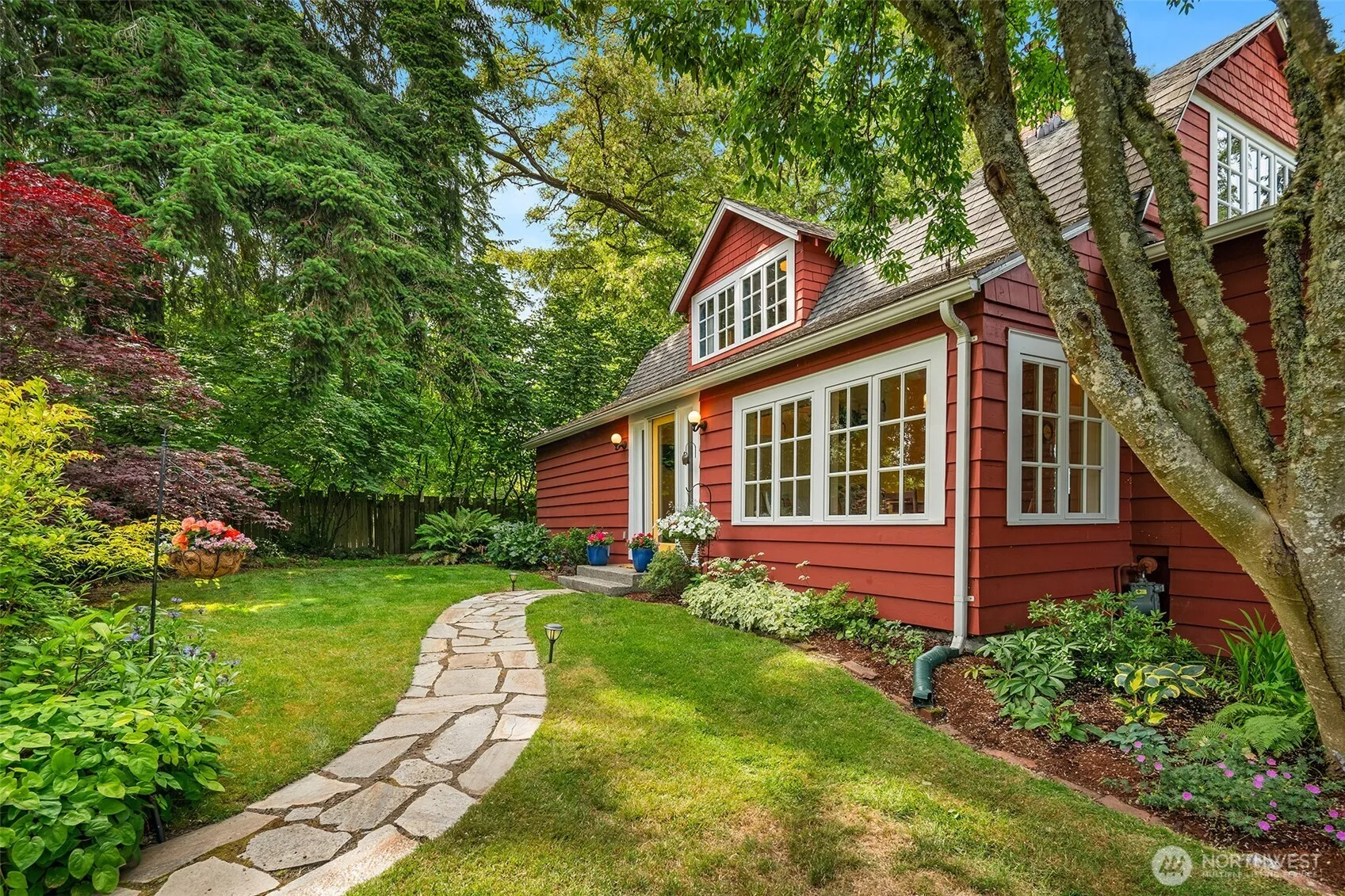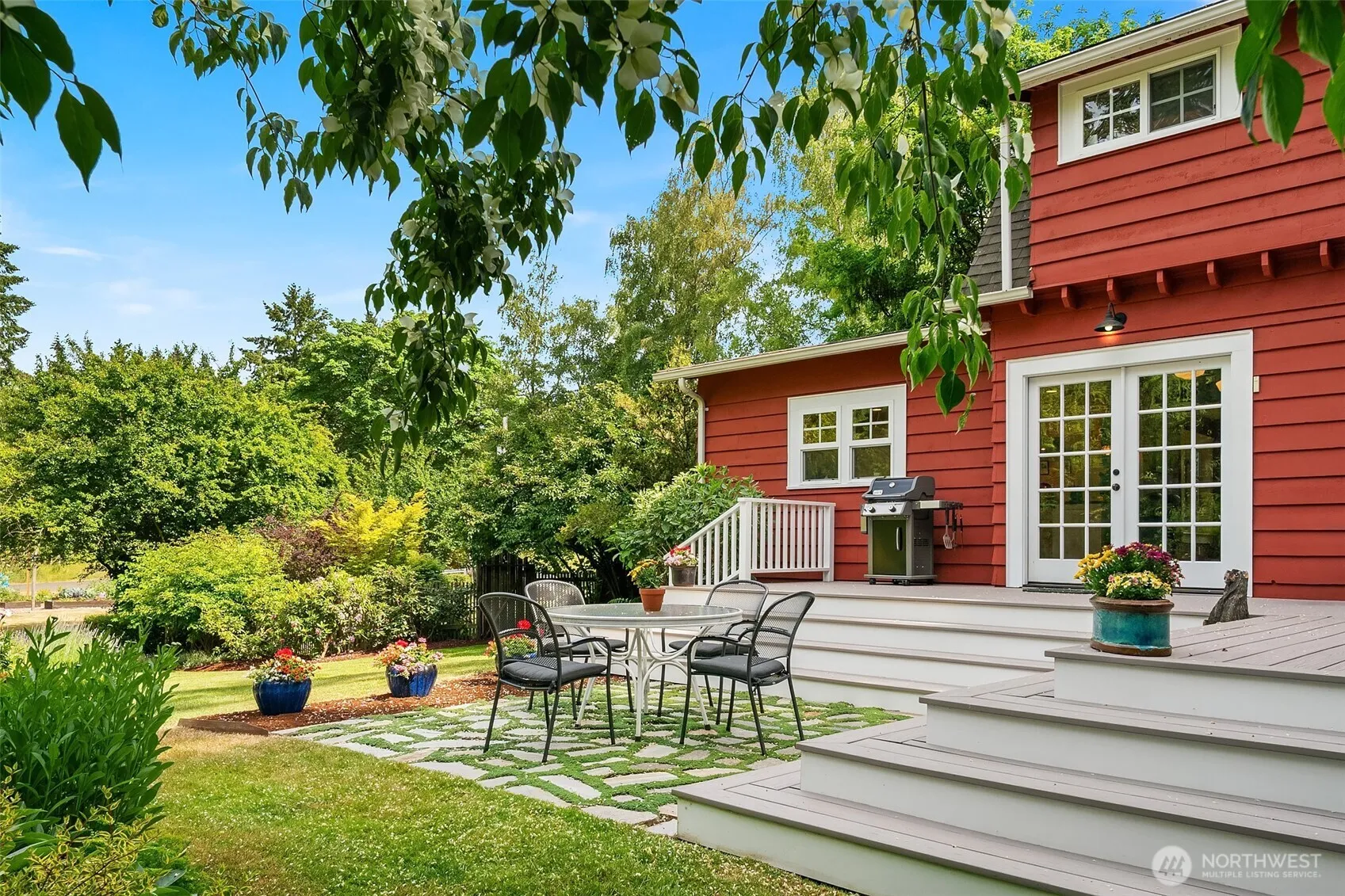 Step through the gate into this serene and peaceful oasis! The large all-weather deck provides the perfect spot to view the artfully landscaped backyard with manicured lawn, vibrant plants/flowers, seasonal pond, and many fruit trees. The 3bed/2bth 1912 farmhouse will captivate you with its classic period fixtures, crown molding, stunning tile work, and casement windows. Large cook’s kitchen has stone counters, farmhouse sink, stainless appliances, and tons of cabinet space. Large primary opens through French doors to the deck and your peaceful outdoor space. The property includes a charming studio cottage, whimsical wood storage bldg, and garage w/shop. Located near town, this property provides easy access to all the island has to offer!