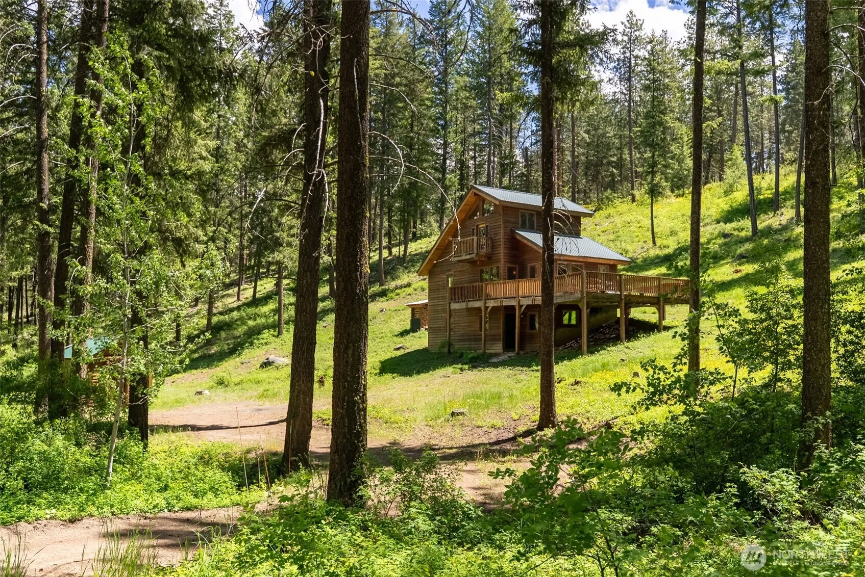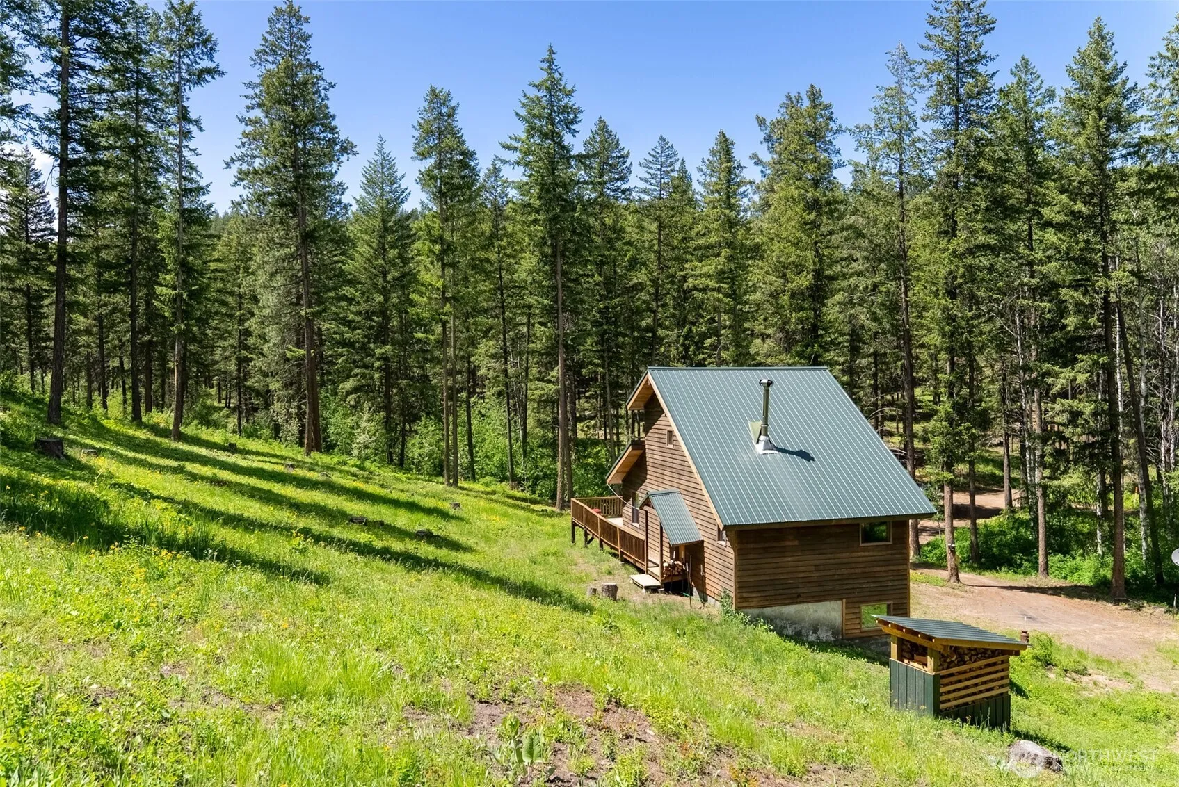 Pine Forest Community – Custom cedar mountain chalet nestled on a forested hillside with seasonal creek and a stunning aspen grove offering rare privacy. Thoughtfully built with exposed beams, vaulted ceilings, and rich wood finishes. The open-concept living area includes a wood stove, large windows, and generous deck for indoor-outdoor living. Features tile countertops, wood floors, and custom millwork. Two bedrooms, two baths, including upper-level primary suite with private balcony. Bonus room for office or dining. Detached storage shed. Direct access to hiking, biking, and USFS trails.