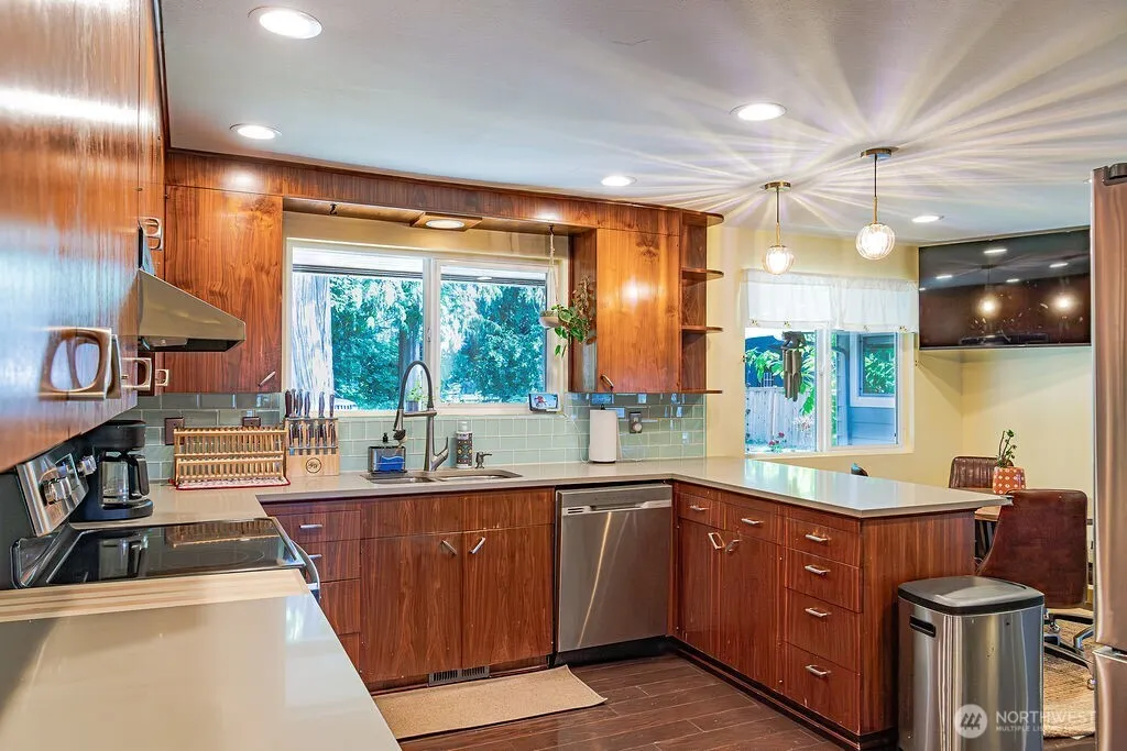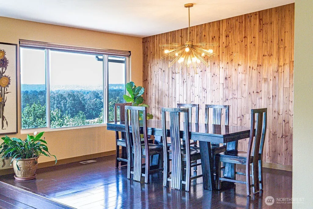 Discover this Mid-Century Modern home in a park-like setting with expansive VIEWS of the valley, surrounding mountain peaks, & Skykomish river! Gleaming engineered hardwood floors flow throughout the main floor. An impressive stone wall with wood burning fireplace set the tone of this marvelous home in the main floor living room. Step out onto the view deck to take in the outstanding natural beauty. The kitchen features SS appliances & quartz counters. The primary suite has a fireplace & spa-like shower. Downstairs offers another bedroom, full bath, 2 extra bonus rooms, & large rec room. Great potential for Multi-Generational living. Enjoy the comfort of A/C & the benefit of solar panels. Exceptional location provides privacy & convenience.