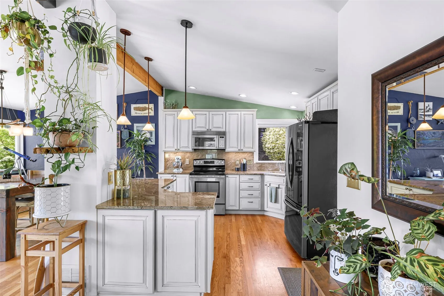 Welcome Home! Live your best life in the Shorewood on the Sound community! Enjoy stunning Sound views from this 3+ bed home on a spacious 1/3-acre lot just moments from the beach (private beach access) The kitchen features Thomasville cabinetry, slab granite counters, a large island, and high-end appliances. The open-concept great room boasts vaulted ceilings, hardwood floors and French doors that step out to a large entertainment style deck. A spacious primary suite w/bonus space w/ french doors. Downstairs offers flexible living with an additional bedroom, rec room with heated stone floors, a 3/4 bath, washer/dryer, and 2nd kitchen—perfect for extended stays or multi-use space. Fenced yards, bluestone patios, lush landscaping & Central AC
