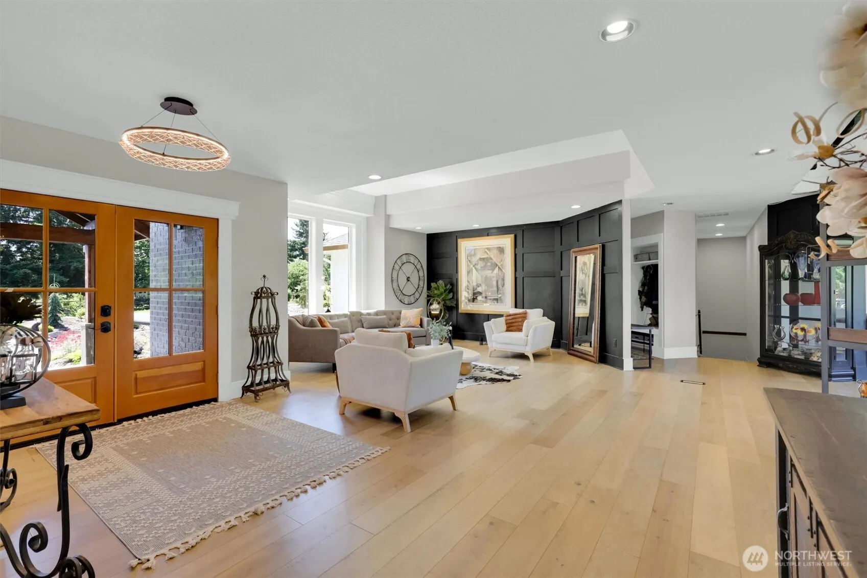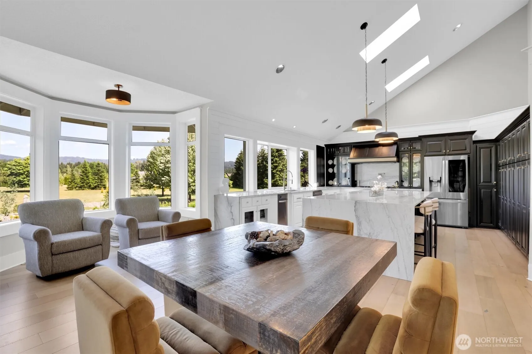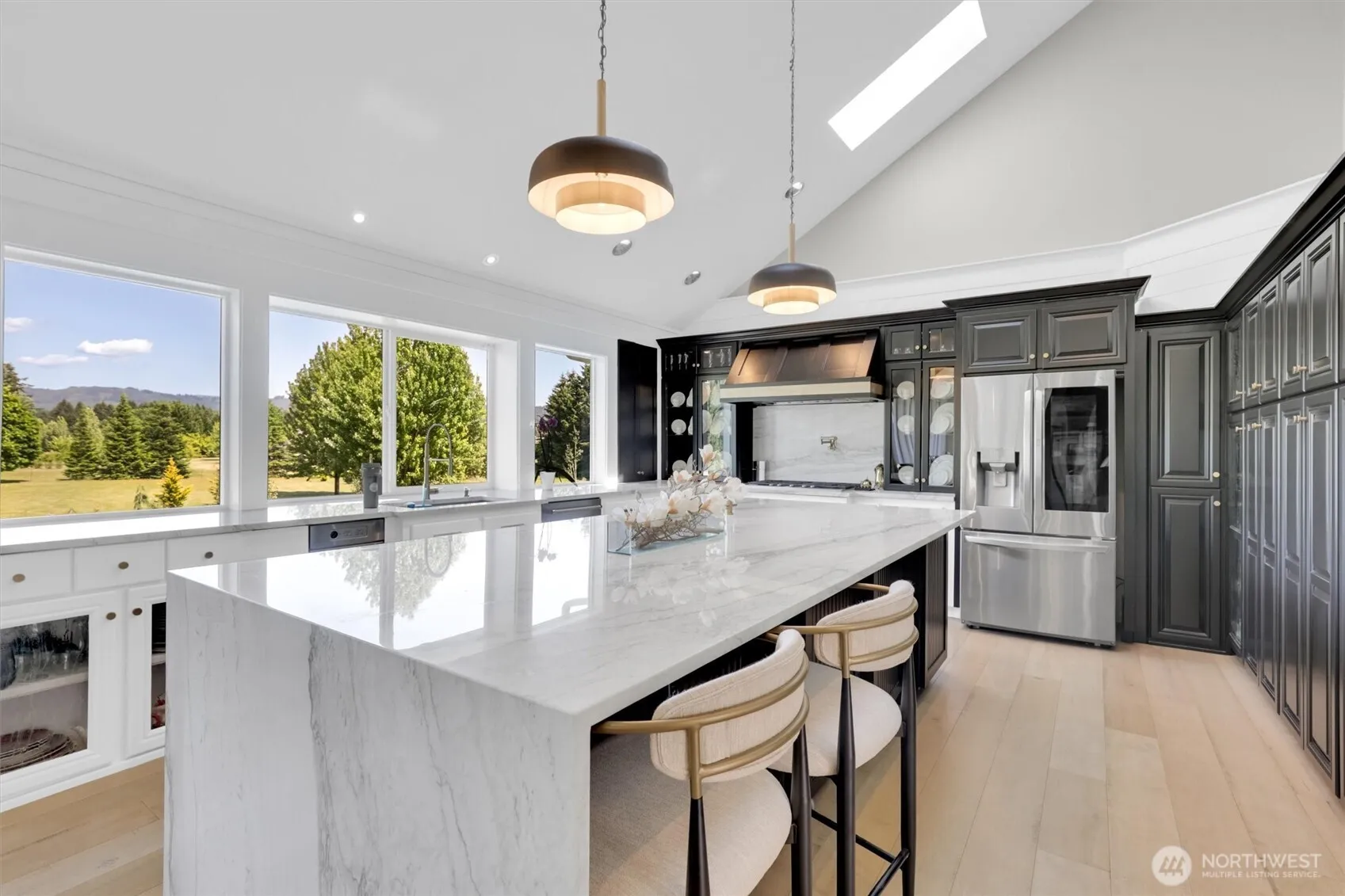 Exceptional estate in Mountain Meadows with stunning 30-ft waterfall, floating pond, & river waterpark on 2.5 private, landscaped acres.Set in a premier neighborhood of custom homes up to 2.5M, this home offers panoramic views and rare serenity yet only 2 miles to the best pizza restaurant in town! Vaulted ceilings, walls of windows and hardwoods,highlight the airy interior.The chef’s kitchen features gorgeous quartzite counters, oversized island, & brushed gold accents.Luxurious primary suite has a soaking tub & steam shower, open-concept living, formal spaces, & large deck with 12 foot stairway and viewing deck.The lower apartment is great for multi generational living with separate entrance and independent HVAV.Popular Hockinson schools.
