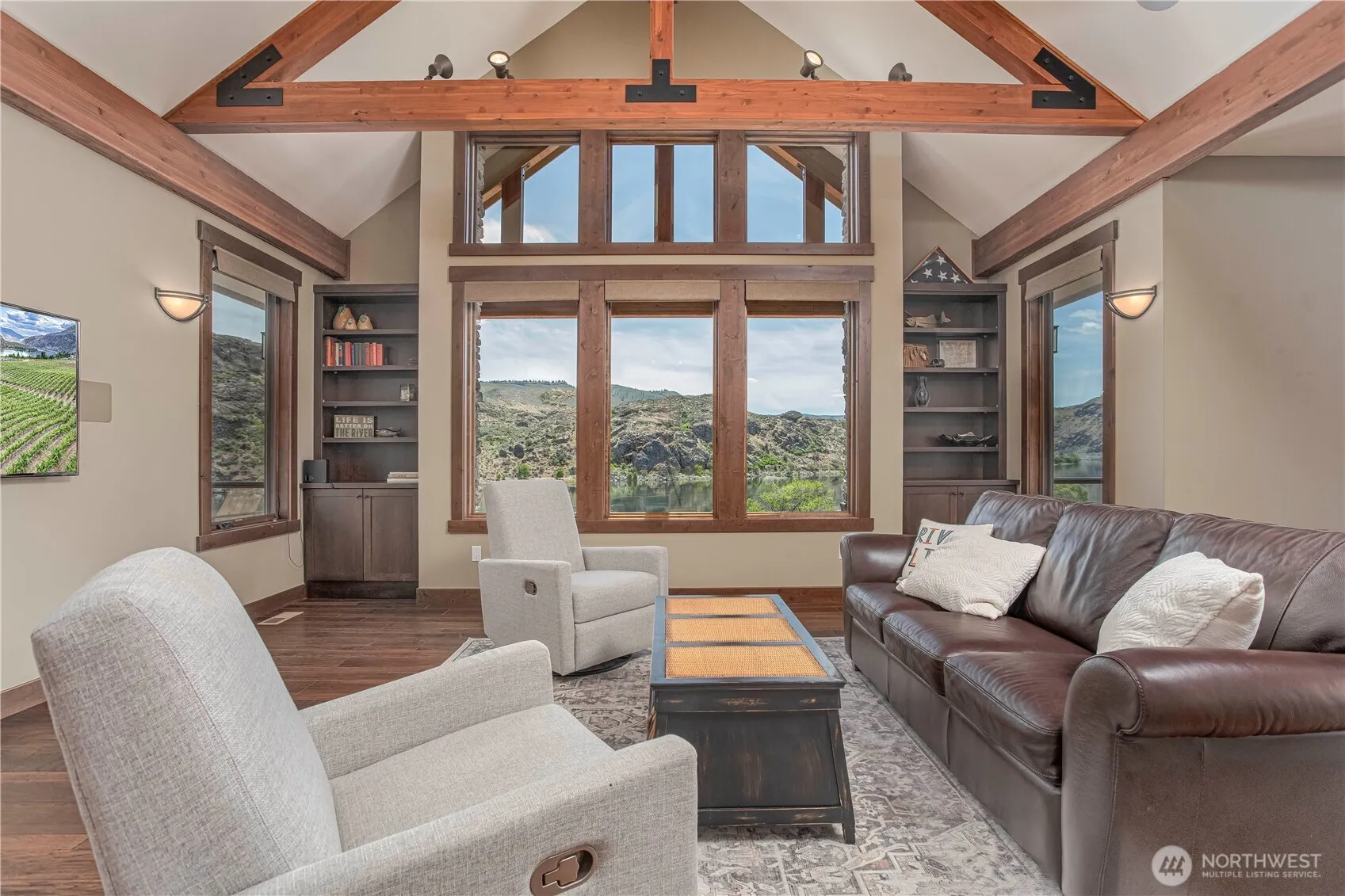 Experience luxury in this nearly 4,000 sq ft estate on 8.61 acres with 3 beds, 3 baths, and an office. Solid wood custom cabinets, granite countertops, heated tile floors in the primary and downstairs baths, and two propane fireplaces. Two large Trex decks overlook the Columbia River and 350 feet of waterfront. Includes a 4.25-acre vineyard with award-winning Albariño, Petite Sirah, Syrah, and Cabernet Sauvignon. A 36×40 insulated shop with RV hookup and separate wells for the house and vineyard complete this exceptional retreat.