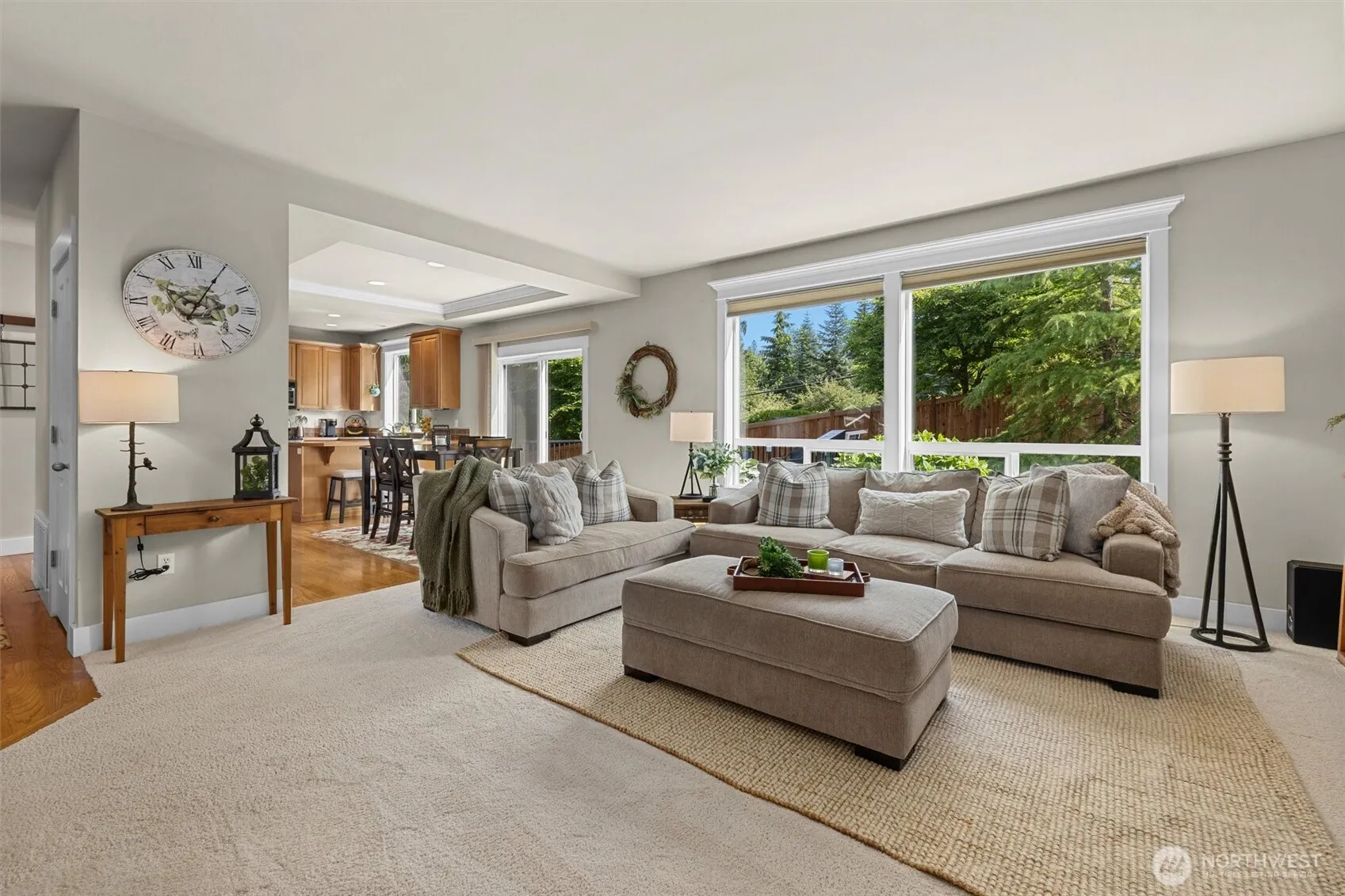 This beautifully maintained home sits in a quiet cul-de-sac in the heart of Duvall. The main floor office with French doors opens to a deck with views, making working from home enjoyable. The formal dining room with crown molding & tray ceiling flows into the butler’s pantry for effortless entertaining. An open concept kitchen with SS appliances & gas range leads to the spacious living room with new plush carpet & cozy gas fireplace. Upstairs offers 3 generously sized bedrooms and a bonus room. The peaceful backyard with multiple decks is perfect for BBQs & relaxation. Huge 3-car garage w/shop! Fantastic location blocks to Microsoft shuttle, restaurants, schools & Sno-Valley trails. Updates include a newer roof, deck, fence, washer & dryer.