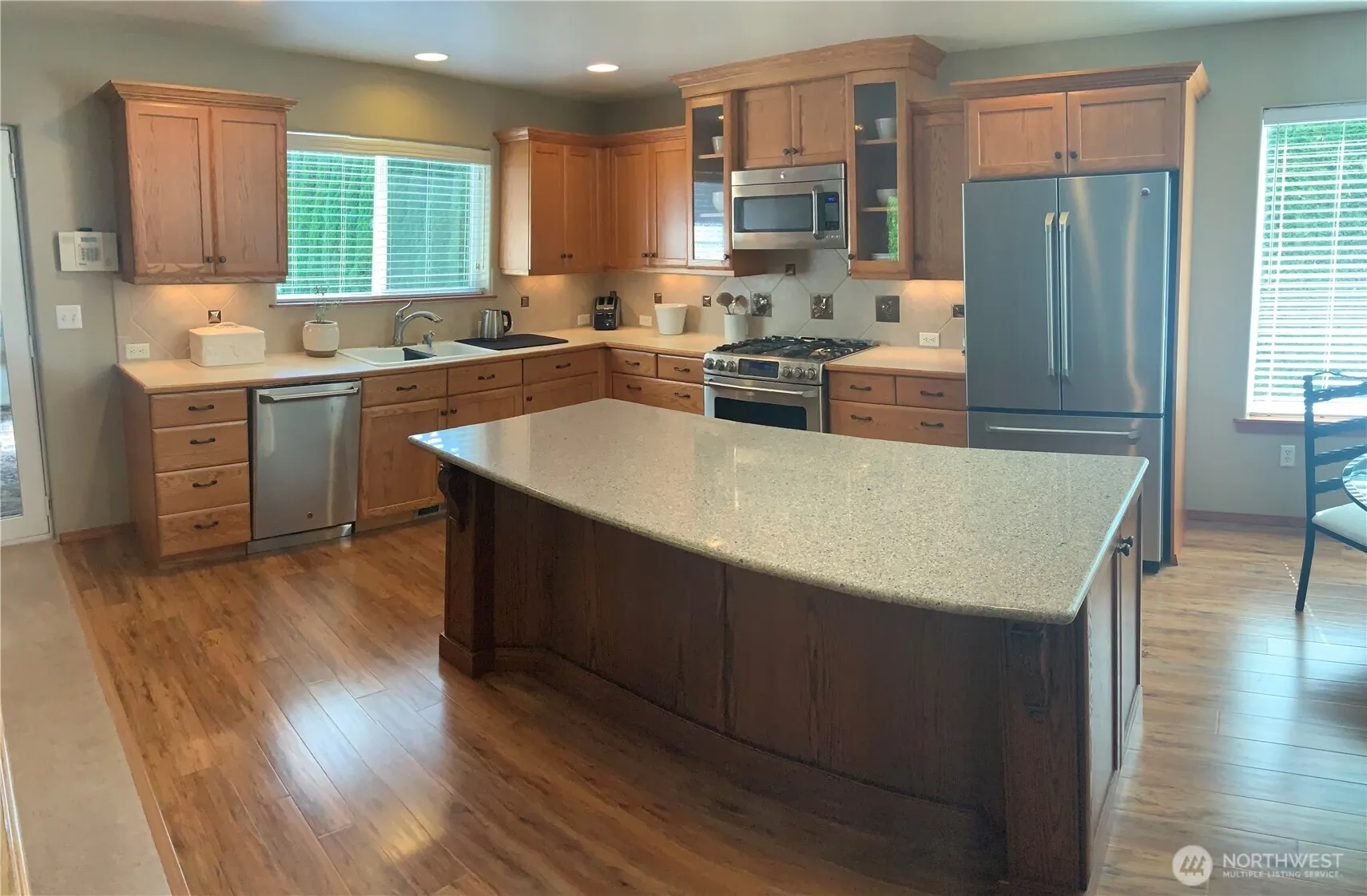 Stunning 4-Bed, 4-Bath Retreat on 1.5 Acres This beautifully maintained 3,200 sq ft home blends country living(horse property) with city convenience, minutes from shopping, schools, parks, and trails. Kitchen boasts custom cabinets, granite countertops, new flooring, and a large island perfect for gathering. Open-concept living area off kitchen. Spacious primary suite offers a en-suite bathroom. A bonus room provides flexibility for a 5th bedroom or home office. The fully fenced property features a 36×36 barn with 3 stalls, ideal for horses, and a 36×48 shop with concrete floors, 220 power, 12′ RV door, and dual 10′ doors for easy access.Mature fruit trees and lush pastures complete this private oasis. See remarks for recent maintenance.