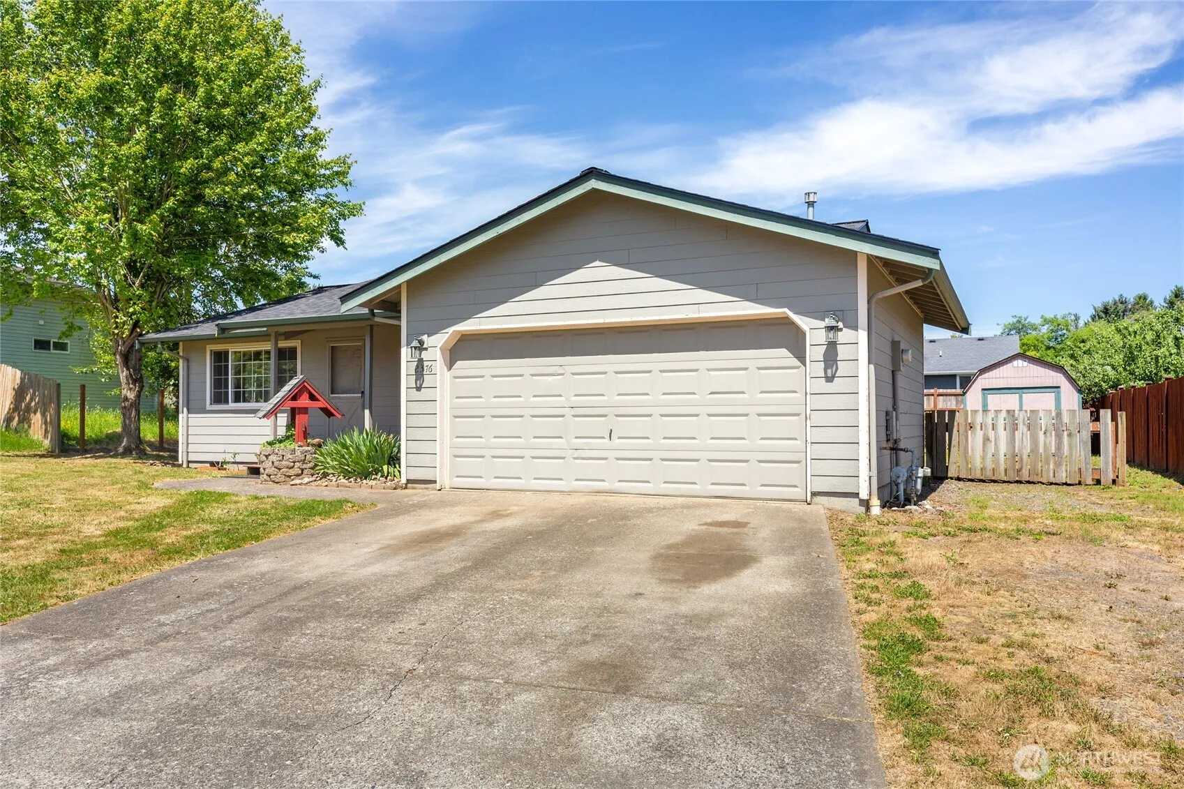 Welcome to this delightful 3-bedroom, 1.5-bath single-level home featuring a spacious 2-car garage. Nestled on a sunny and generous 8,712 sq ft lot, this property boasts a fully fenced backyard—perfect for pets, play, and outdoor entertaining. Enjoy the convenience of being just a short walk to top-rated schools and beautiful parks, all while tucked away in a peaceful neighborhood. The home features a brand-new roof, two ceiling fans for added comfort, and a dining room with direct access to the deck—ideal for summer BBQs and gatherings. While the home could use a bit of TLC, it offers incredible value and potential. Bonus: a charming pear tree graces the front yard, adding a touch of nature and sweetness to your new home.
