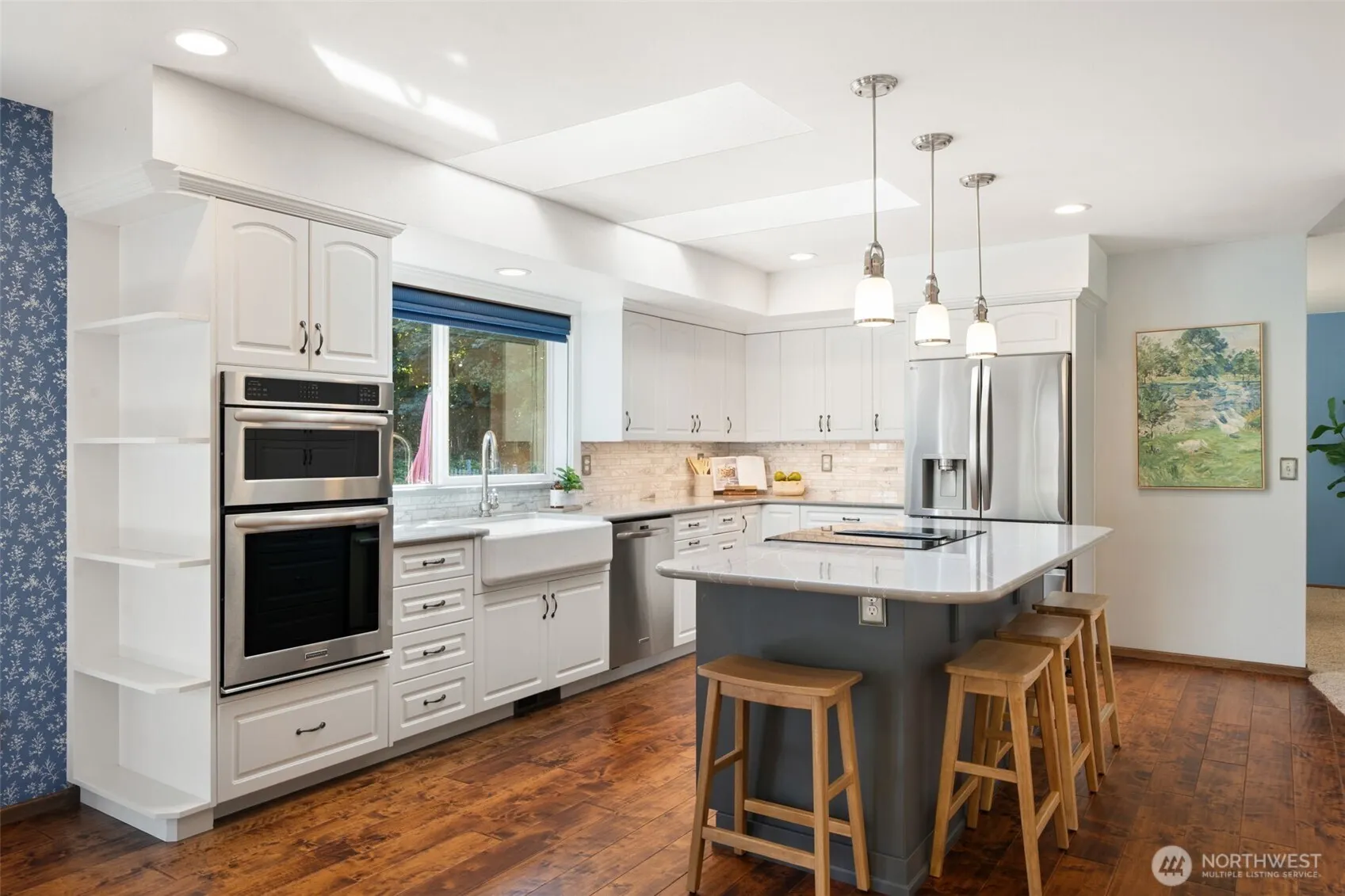 Discover your own private sanctuary in this beautifully updated 3-bed, 2-bath home on nearly 2.5 peaceful acres (2 tax parcels) in Belfair. Light pours through skylights into a stunning custom kitchen, while spacious living and dining areas invite gatherings and quiet moments alike. Outside, your park-like retreat includes manicured lawns, a sport court, and apple trees surrounded by evergreens—plus a huge 40’x60’ 4-car garage/shop, perfect for car collectors, RVs, boats, or creative projects. Whether hosting friends or savoring the quiet, this tranquil setting feels worlds away yet is minutes from town.
