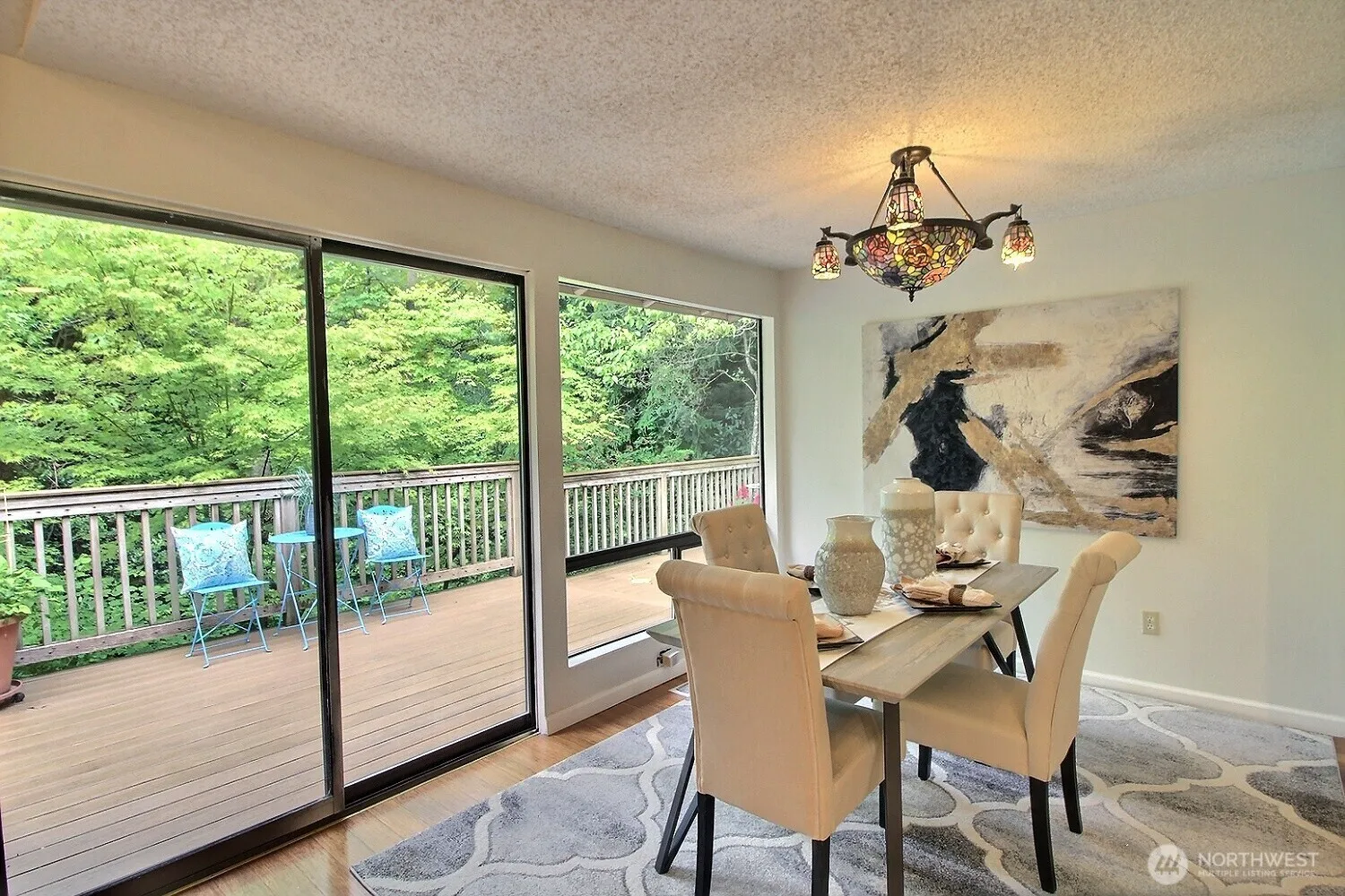 Wonderful updated single story home w/ tranquil scenes next to lake Rasmussen. Inviting living room w/ hardwood floors & gas fireplace opens to dining room. Central kitchen w/ quarts countertops, white shaker cabinets, SS appliances & extra room w/ vaulted ceiling. Desirable second living room w/ office space. Primary suite w/ attached 3/4 bath & two large closets. Two additional bedrooms & full bathroom. Stay comfortable w/ new carpet & A/C. Relax on private wrap around deck surrounded by mature landscaping, trails, wildlife, pond & lake views. Fully fenced yard w/ outbuilding. Extra storage utility room. Long driveway w/ off street parking. Stroll down dead-end street to downtown for shopping, restaurants, parks, Snoqualmie River & more.