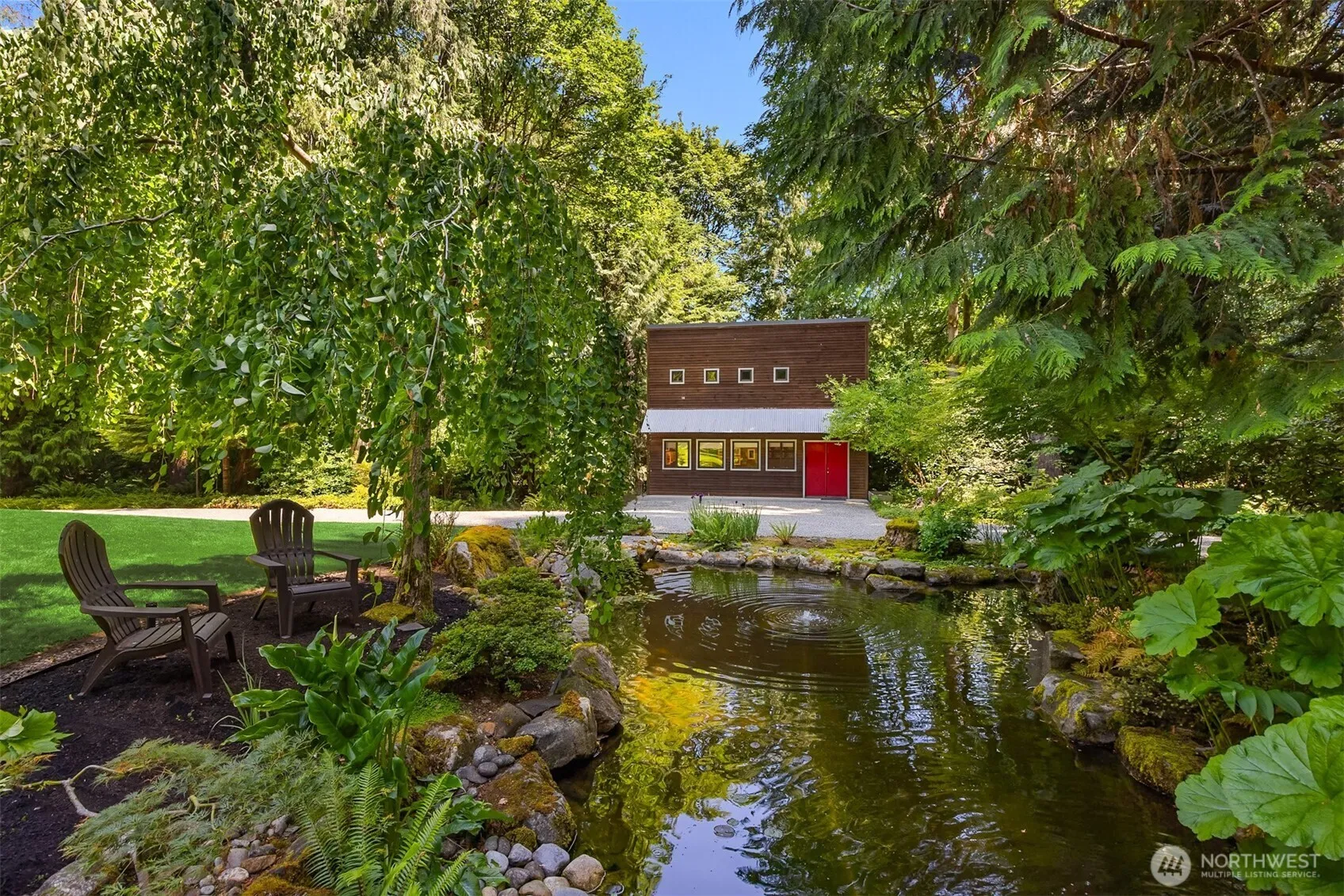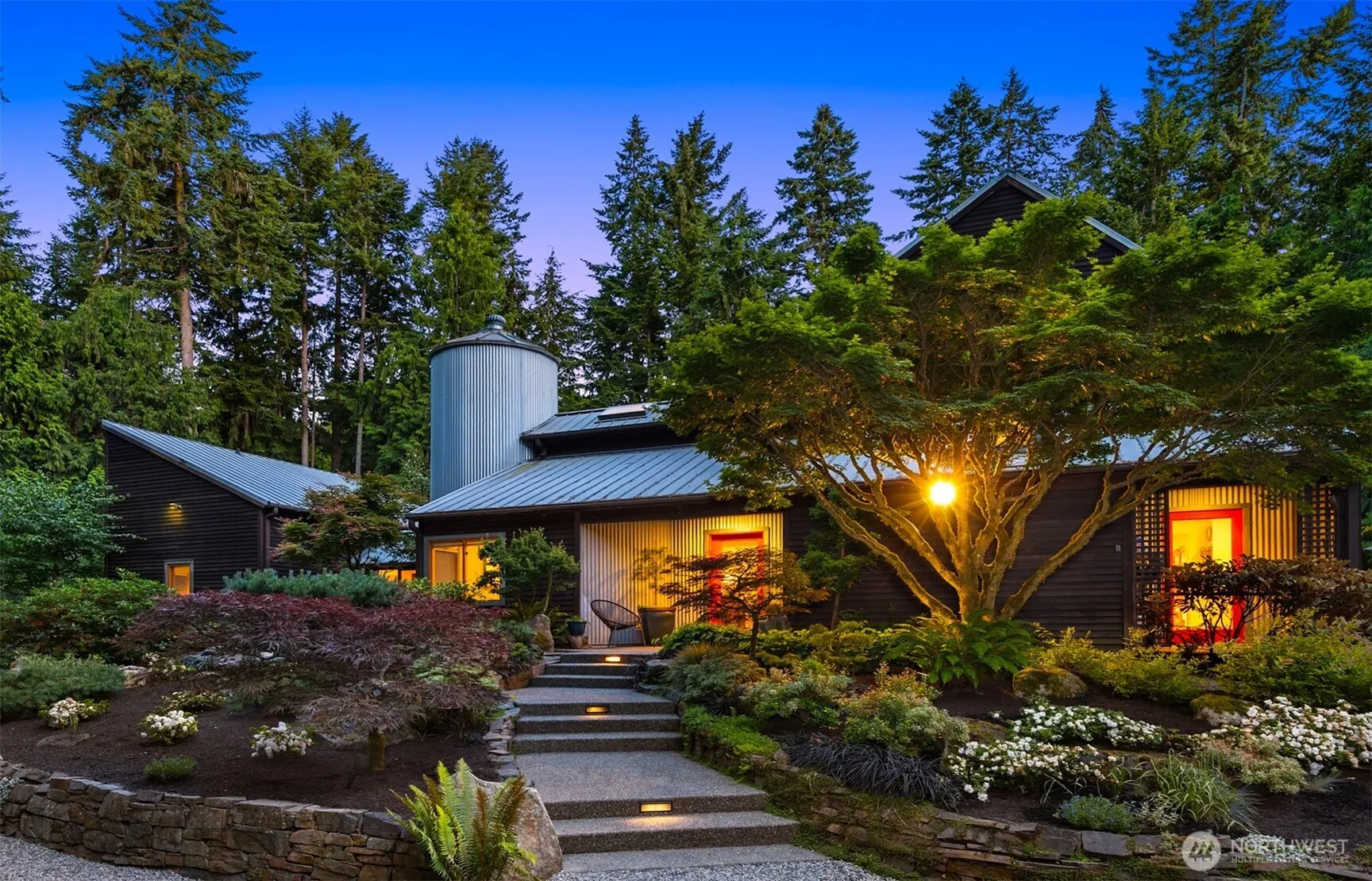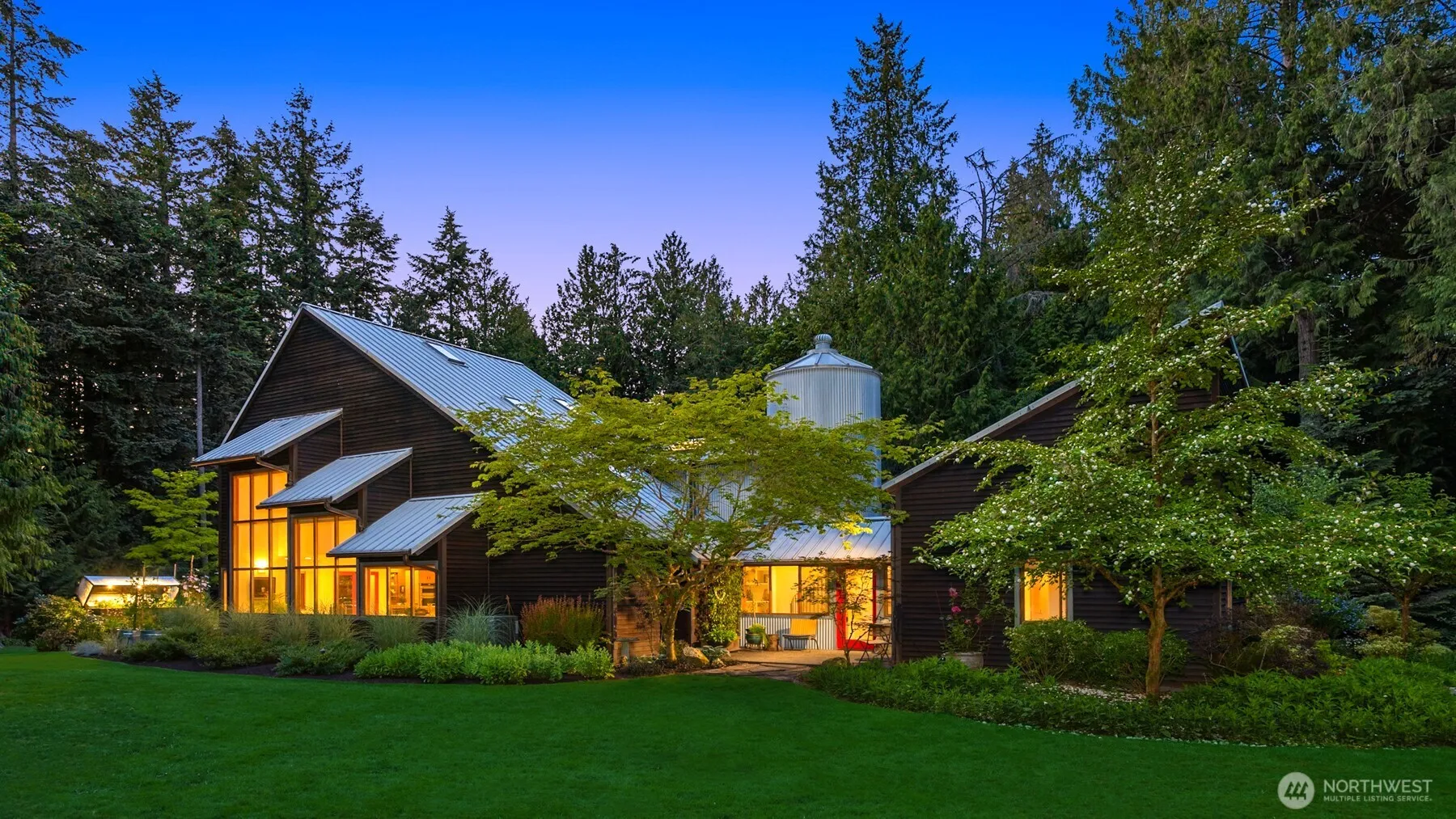 Tucked within the quiet folds of Port Madison on 4.5 curated acres, this sophisticated contemporary farmhouse unfolds like a private park, a “mini Bloedel” to those who’ve experienced its winding paths & lush gardens. Inside, soaring 30ft ceilings & a 24ft south-facing window wall fill the grand room w/ light, highlighting meticulous craftsmanship. 2 main floor beds occupy their own wing; the entire upper level is devoted to the primary suite w/ spiral staircase, ensuite bath, & ample storage. The kitchen & scullery open to expansive Western deck & patios. The experience continues outdoors w/ towering trees, specimen plantings, perennial beds, pond, & firepit. Finished 3-bay garage + separate artist’s studio complete this private sanctuary.