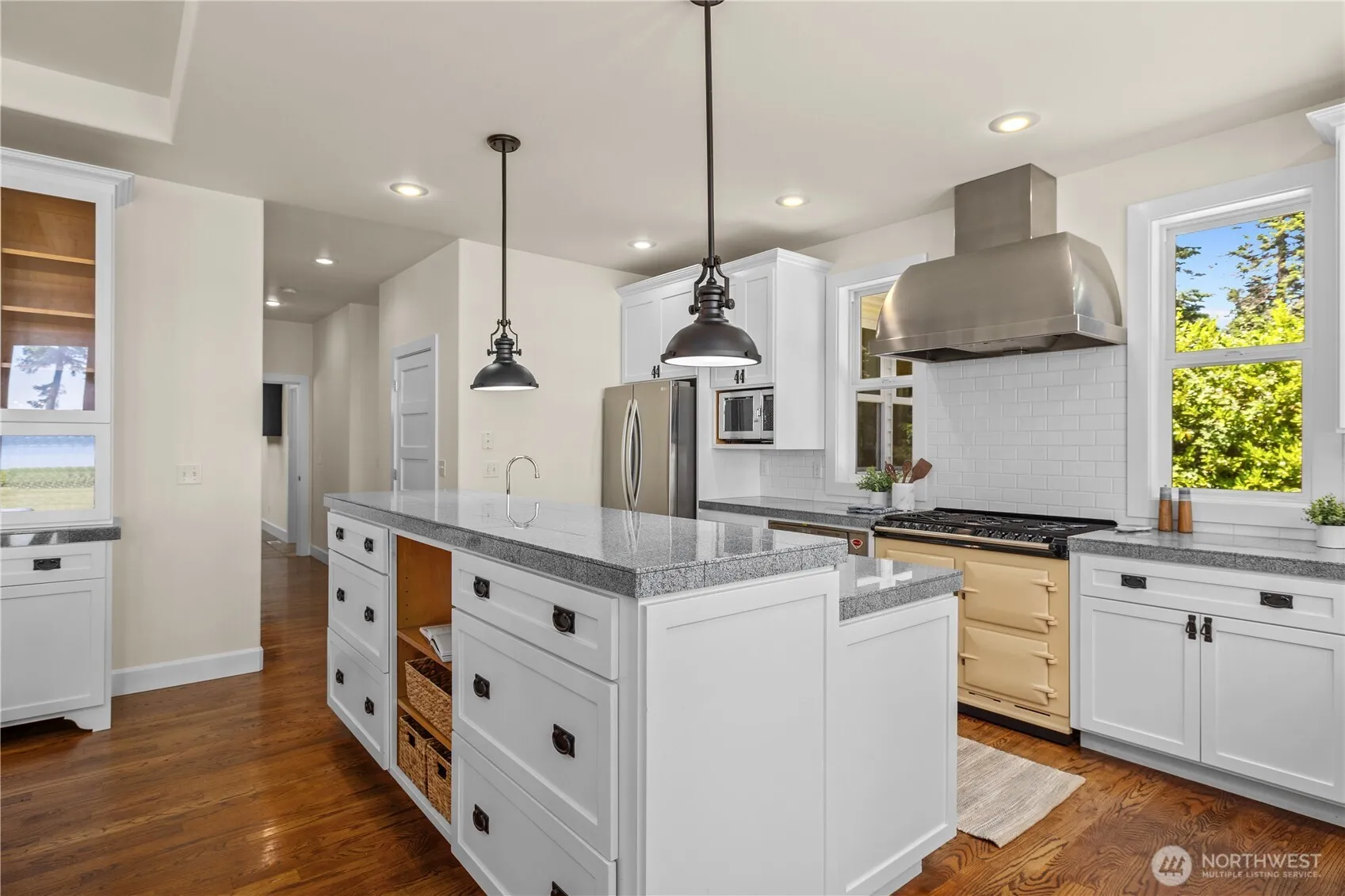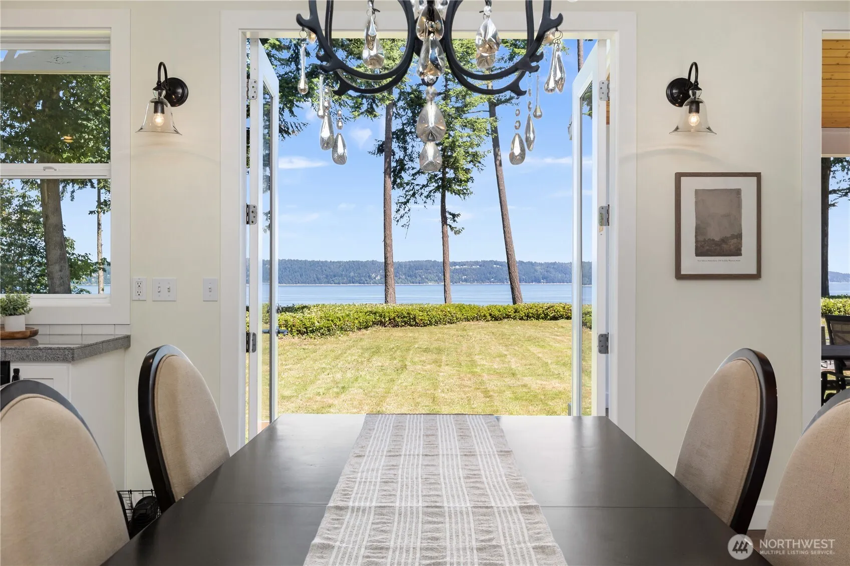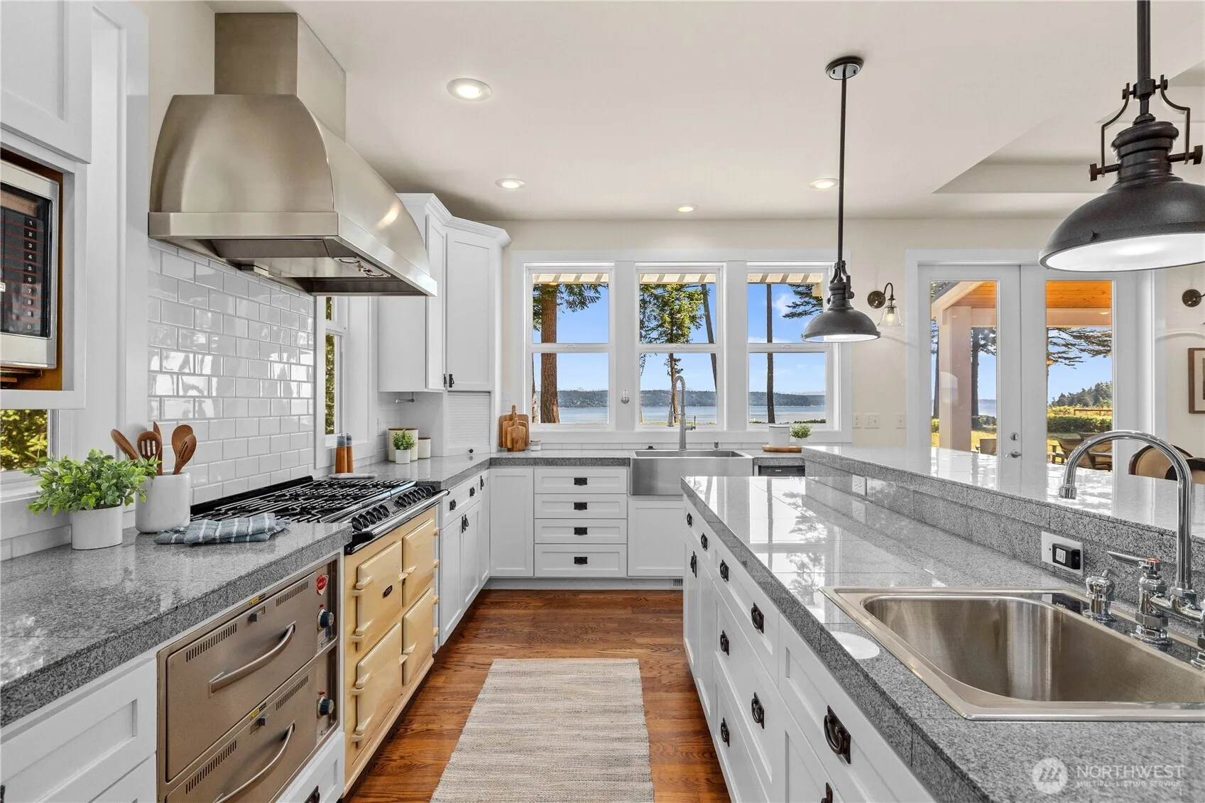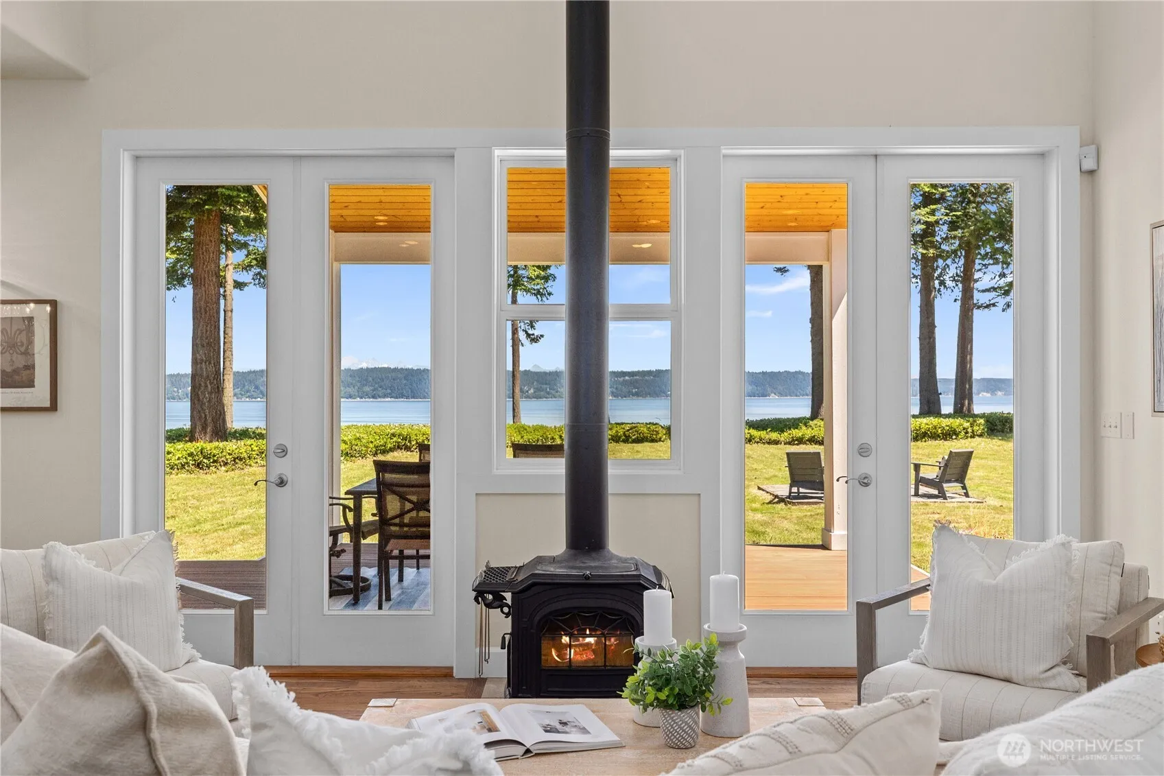 Wake up to soaring bald eagles, passing whales, & sweeping Puget Sound views—serenaded by birdsong. This modern farmhouse w/ contemporary design is a stunning custom home on 2+ private acres, thoughtfully planned for single-level living. Enjoy 2 beds, 2.5 baths, loft, library, mudroom, & utility room—all crafted with high-end finishes and timeless character, and each positioned to take in full water views. Chef’s kitchen features commercial-grade appliances, & 6 French doors seamlessly connect the interior to expansive outdoor living areas. 2-stall barn w/ shop offers flexibility for horses, hobbies, or extra storage. Privacy & custom craftsmanship throughout, this home captures the essence of island living with modern sophistication.