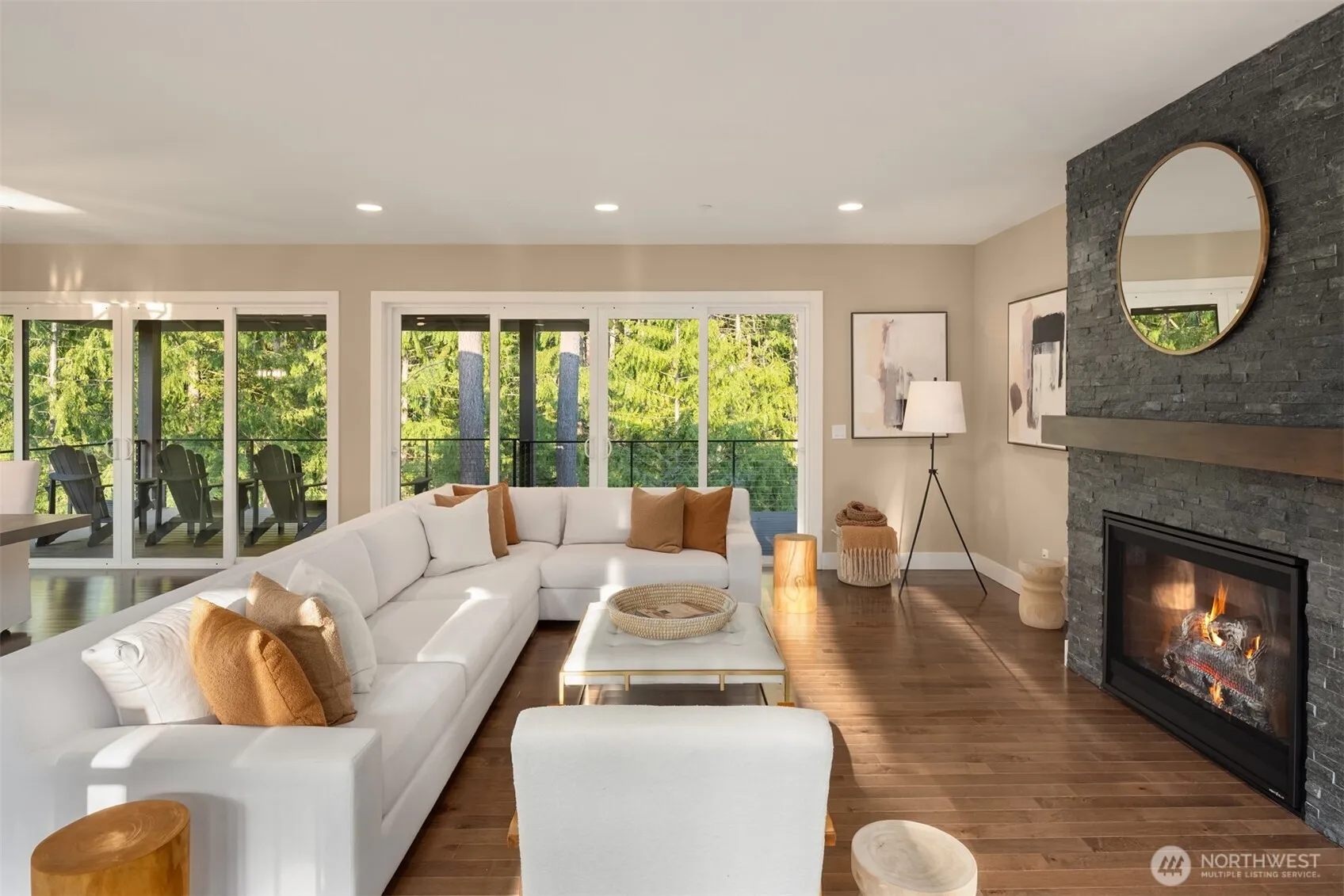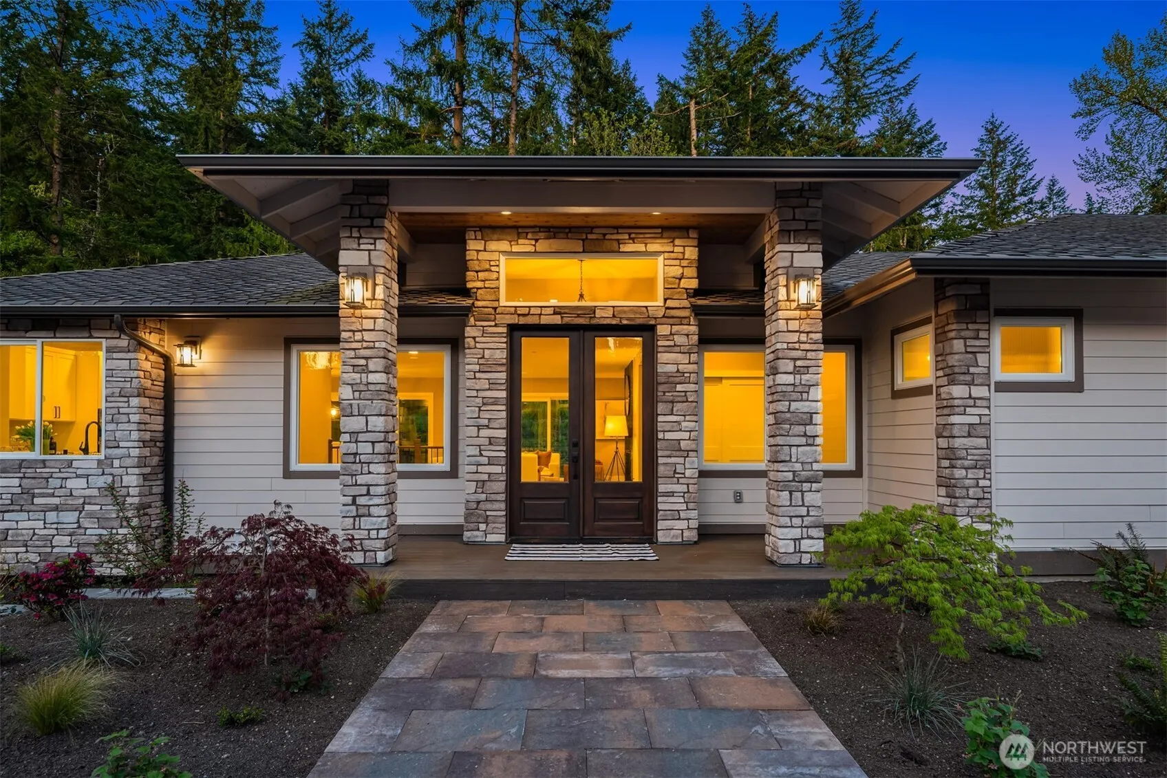 [WHERE DESIGN MEETS STILLNESS] Tucked at the end of a 350-foot private drive, this newly built rambler with an expansive, fully finished basement rests quietly on two wooded acres in the heart of Newcastle. Surrounded by evergreens and curated with intention, the home offers ADA-accessible main-level living, blending timeless design with long-term ease. Unapologetically positioned with grace and confidence, a wall of windows anchors the seamless indoor-outdoor flow—inviting the landscape into daily life. Wide hallways, oversized custom doors, and generous natural light evoke a grounded sense of Pacific Northwest grandeur. Quietly luxurious, deeply livable, and beautifully balanced. A place where design whispers and nature holds the rhythm.