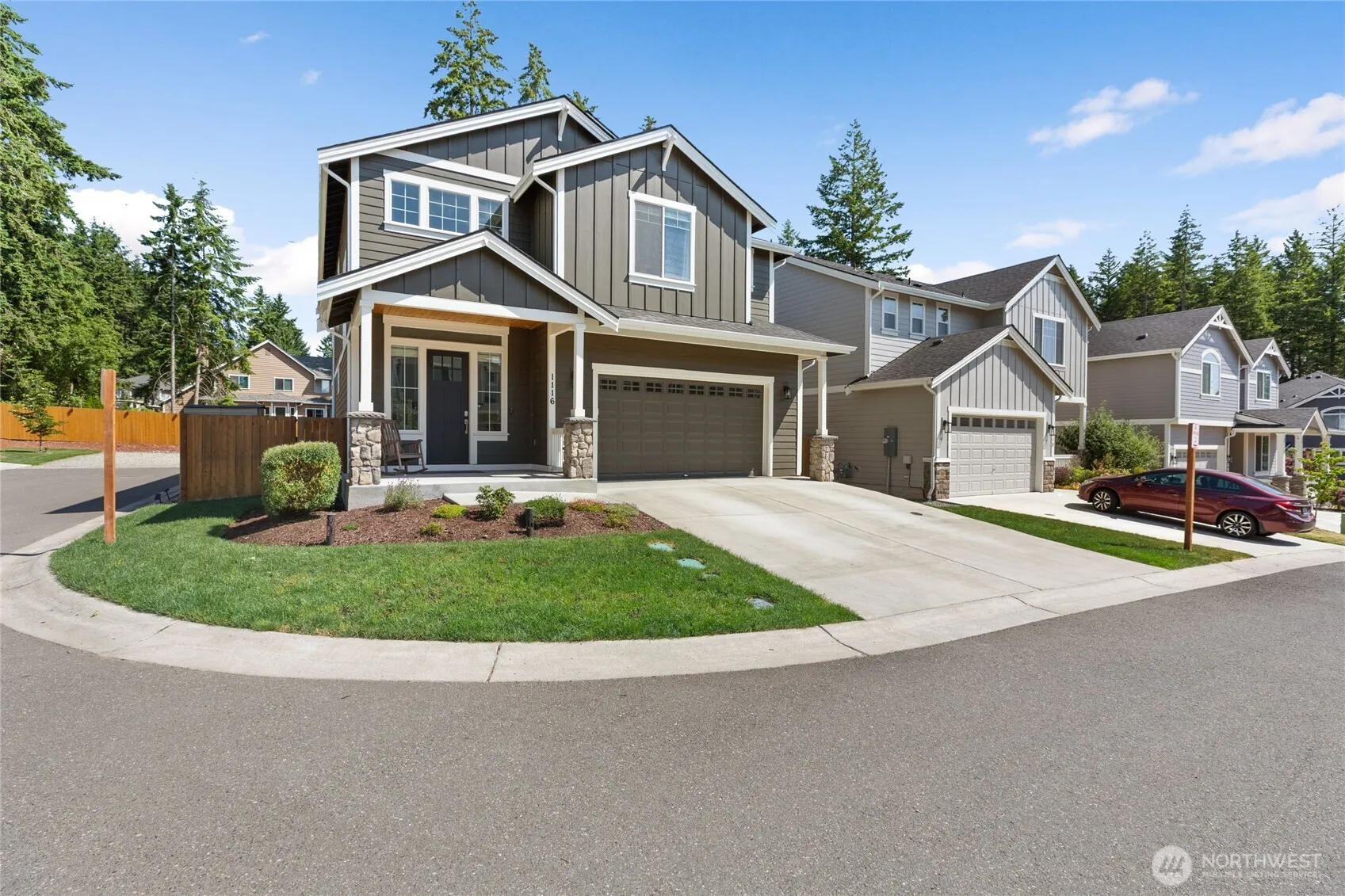 Home is nestled in the desirable Monarch Ridge. W/custom designed craftsman touches. Boasting a grand 2-story vaulted entry way. The expanded ceiling heights on main lend to the open concept living. Features white painted doors/millwork/cabinets, built-ins, premium stainless appliances, pantry, & a den/home office providing convenient Home/Work balance. Solid quartz counter tops throughout, 4 large bedrms & dedicated loft area. Three full baths provide ample convenience w/the primary bath including soaking tub, separate large shower & walk-in-closet. The covered patio and handy gas stub for BBQ, enhance the outdoor entertaining area. AC Heat pump & fully fenced large back yard. Central Kitsap schools and mins to Silverdale and Naval bases.
