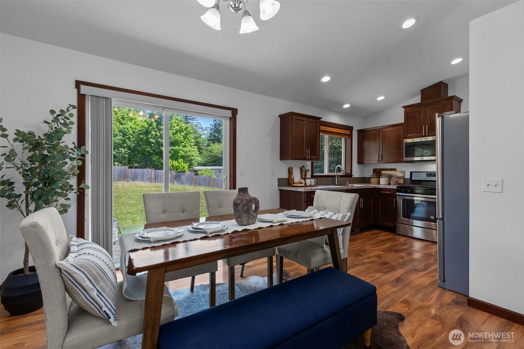 Charming 3-bed, 2-bath rambler in the quiet Creekside Vista community of Gold Bar. Freshly painted inside and out, and new carpet in the bedroom. Vaulted ceilings and an open-concept layout create a spacious, airy feel. Enjoy year-round comfort with a tankless water heater and heat pump with A/C. The kitchen features stainless steel appliances and ample counter space. Step outside to a large, fully fenced backyard—perfect for pets or play. Conveniently located near restaurants, shopping, and outdoor recreation. Welcome Home!