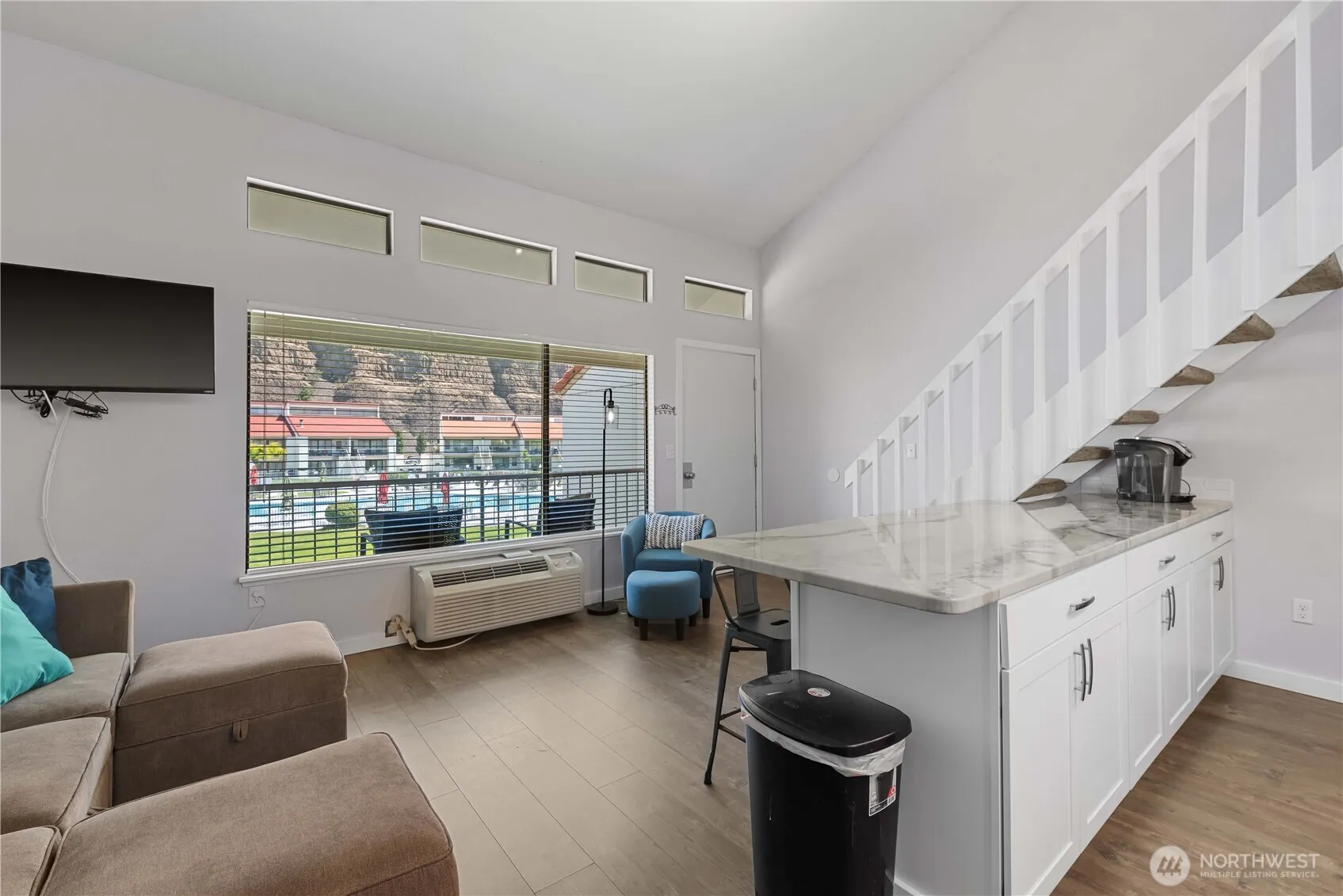Have you ever dreamed of living/vacationing surrounded by stunning basalt cliffs, 300 days of sunshine, & all the amenities you could ask for? Here is your opportunity to join the Crescent Bar Community in your completely renovated condo! Boasting new kitchen cabinets, SS appliances, beautiful counter tops, LVP flooring & new stackable W/D. Condo comes completely furnished & ready for you to start enjoying the river access, beaches, marina, golf, trails, & resort style living offered at this beautiful location in sunny NCW. Visit nearby wineries, restaurants, or grab a concert & the Gorge. Condo sleeps 6-9 comfortably, has strong rental history, & is ideally located with views of the surrounding territory & gorgeous pool!