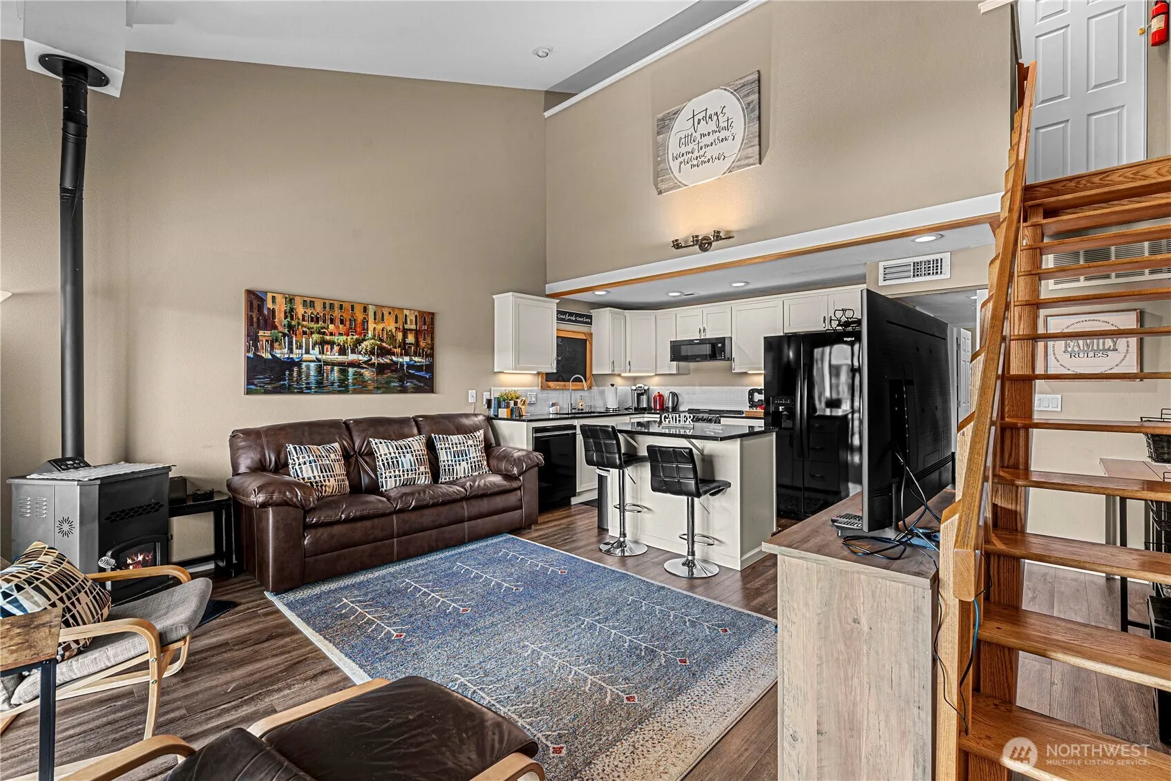 Experience Crescent Bar living in this beautifully remodeled 2-bed, 2 bath top-floor 2-story condo with mountain & river views. Updated in 2020, the home features quartz countertops, soft-close cabinets, new appliances, laminate flooring, and custom blinds. Enjoy indoor comfort with full A/C and ceiling fans, & pellet stove for cozy evenings. Double French doors open to a spacious deck with storage, room to relax, & indoor/outdoor living. Recent upgrades include a 2024 dryer, newer washer, and premium newly upgraded windows. EV parking options available as well! Sold furnished with strong rental history & upcoming income. Located near the new winery and amphitheater, within walking distance. Don’t miss your chance to own in Crescent Bar!