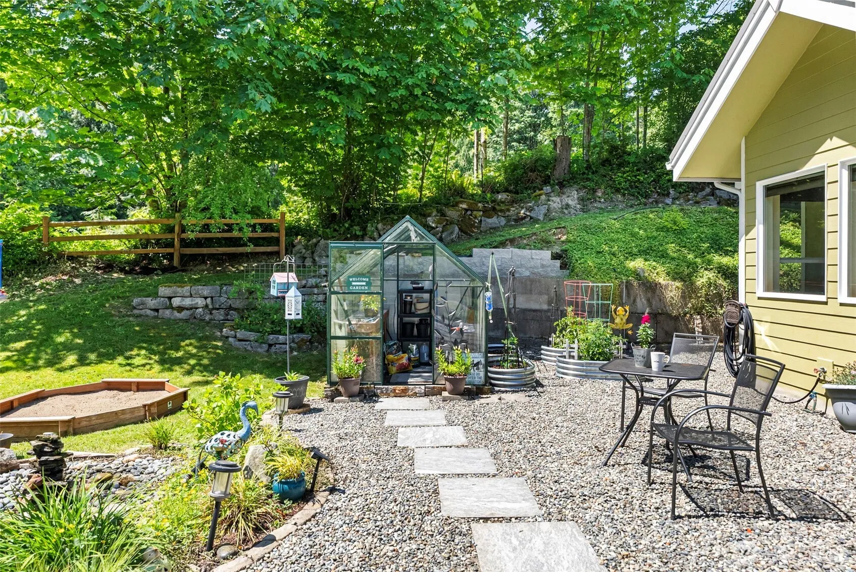 On 2.41 acres of beautifully landscaped grounds, this SIP-constructed custom home offers privacy, efficiency, and quality throughout. A 3 bed, 2.5 bath, office, and oversized bonus room layout is complemented by radiant floor heat, Daikin mini-split system, remodeled primary bath, granite kitchen with stainless appliances, and a new 80-gallon Rheem heat pump water heater. Tesla L2 charger, generator-ready panel, gigabit fiber, and a premium lifetime metal roof complete the package. Enjoy fruit trees including apple, pear, plum, and cherry, plus blueberries, a vegetable garden, and wildlife from covered porches. Ideally situated between Kingston and Bainbridge ferry terminals.