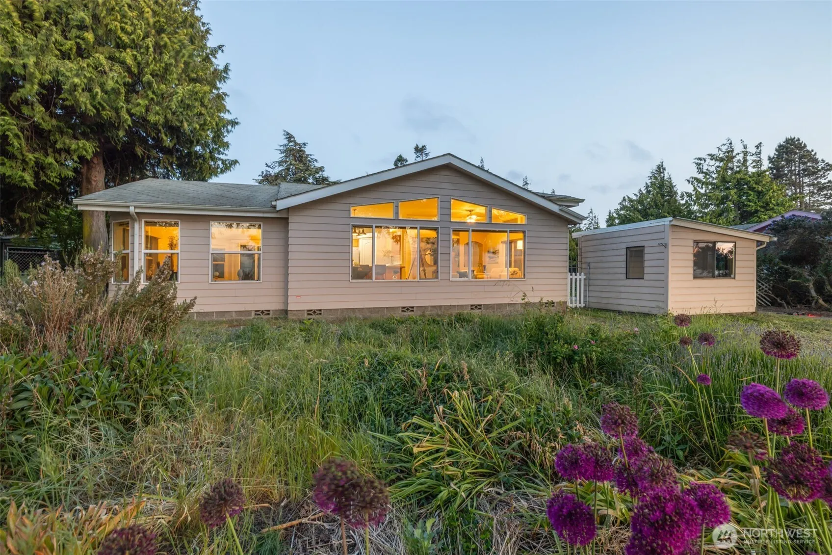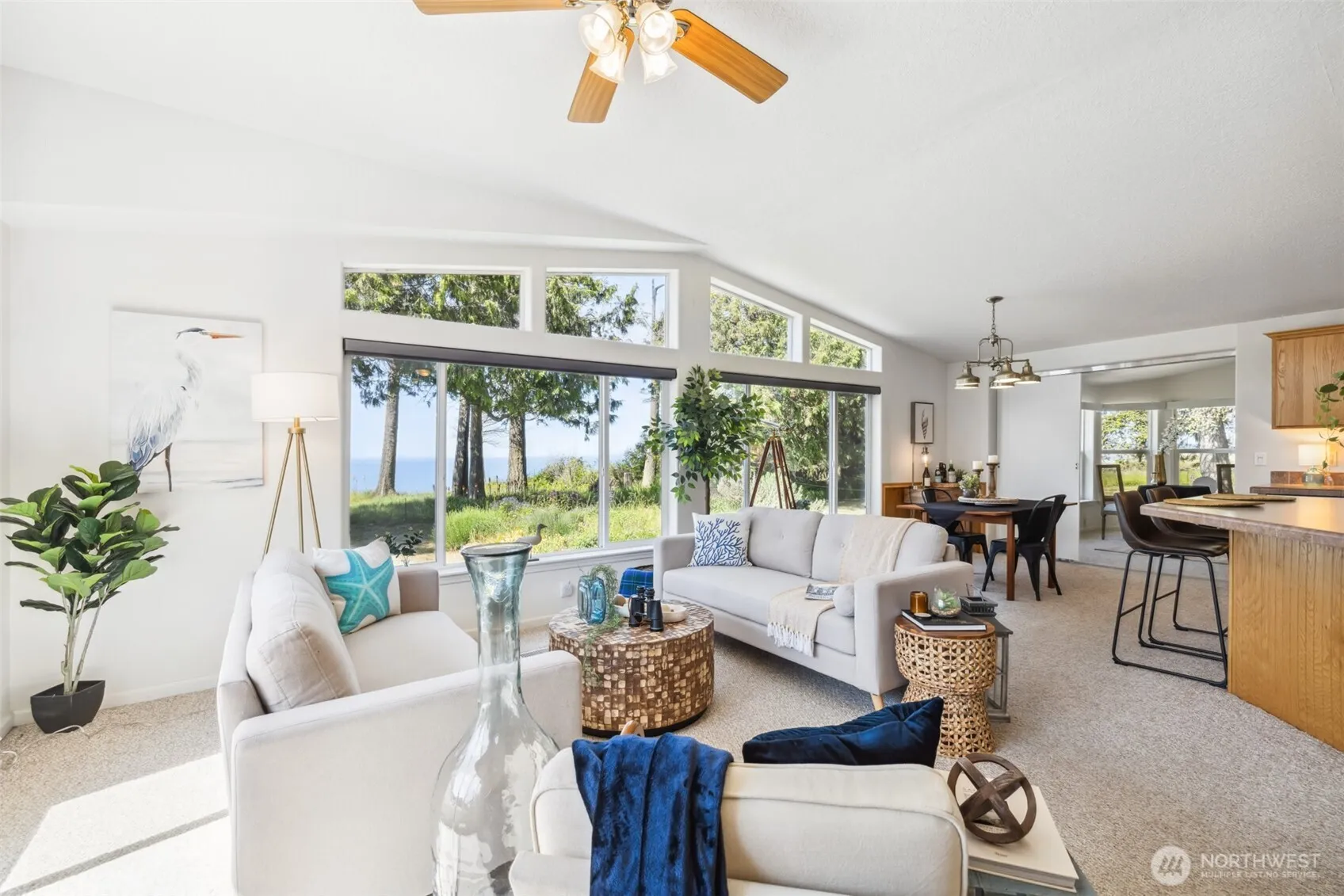 Luxury View | Listen to the waves lap the shore & experience panoramic saltwater views from this light-filled home featuring vaulted ceilings, wall of windows, electric blinds & Heat pump. Enjoy a family & living room, a spacious pantry & ample closets, & low-maintenance, no-mow yard. In addition to the detached garage there is also a creative space with inspiring water view. Relax with your favorite beverage in an Adirondack & take in the jaw dropping sunset view of the shipping lanes, Victoria & the Salish Sea. Community perks: clubhouse, fenced RV parking, serene 55+ community (no residents under 18). Home warranty included. Great neighborhood for taking a stroll with loved ones or pets. Just 1 mi to the iconic Agnew Store & Sunny Farms