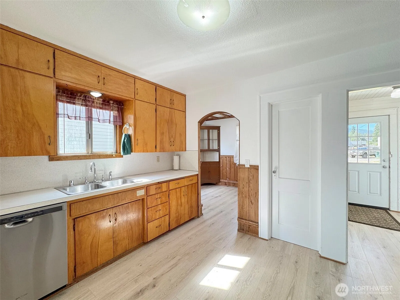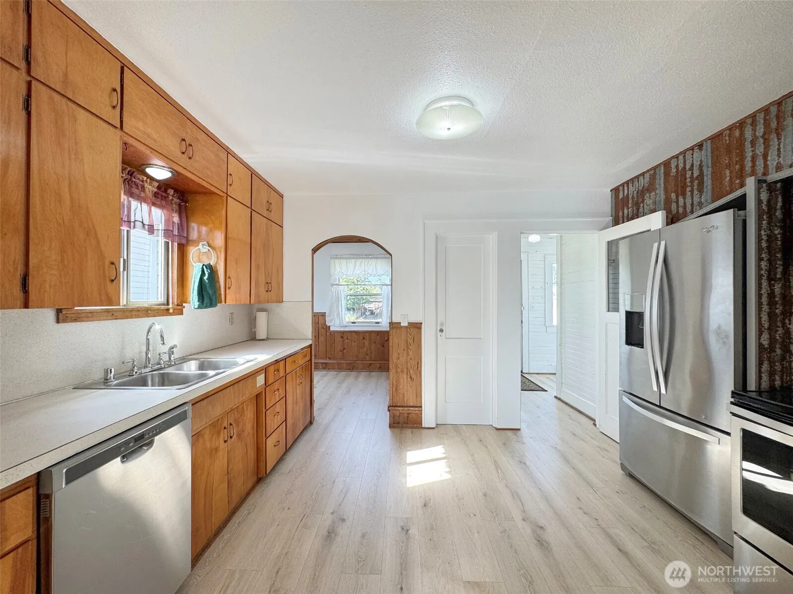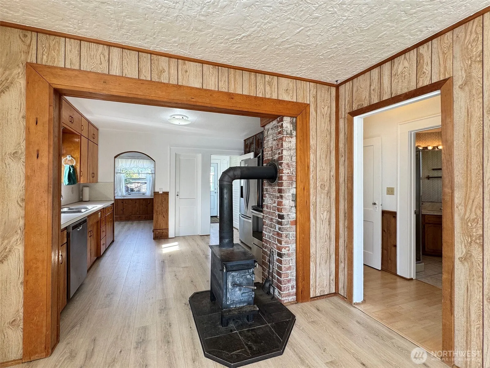 Charming bungalow with flexible Commercial Neighborhood zoning, allowing for residential, office, childcare, personal services, and more. Situated on a 7,000 sq. ft. level parcel, there’s space for an accessory dwelling unit or additional development. Enjoy north-facing views of the Strait of Juan de Fuca and southern views of the Olympic Mountains. Updates include a new electrical panel (2024), double-pane windows, luxury vinyl plank flooring, and vinyl siding. The kitchen features stainless-steel Whirlpool appliances. A cozy wood stove warms the home, with extra storage in the root cellar and attic. Step outside to a sunny backyard with a low-maintenance synthetic deck. Plenty of opportunity to customize, expand, or enjoy as is!