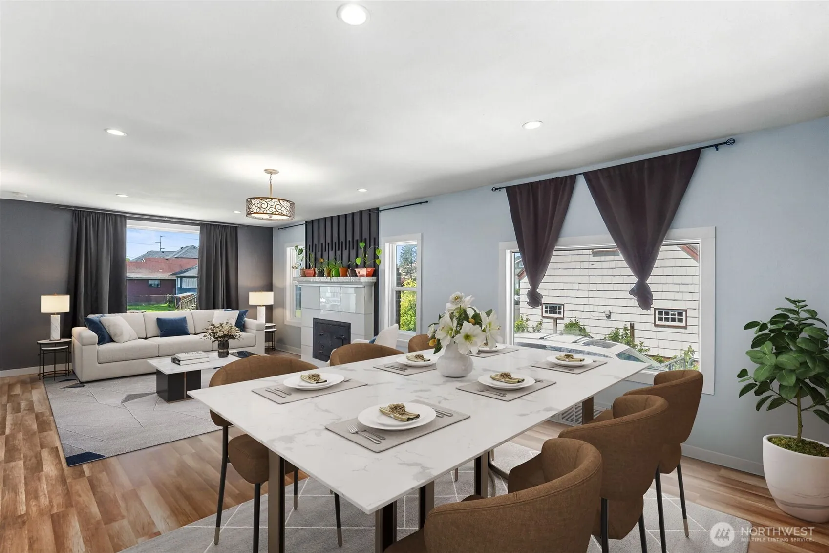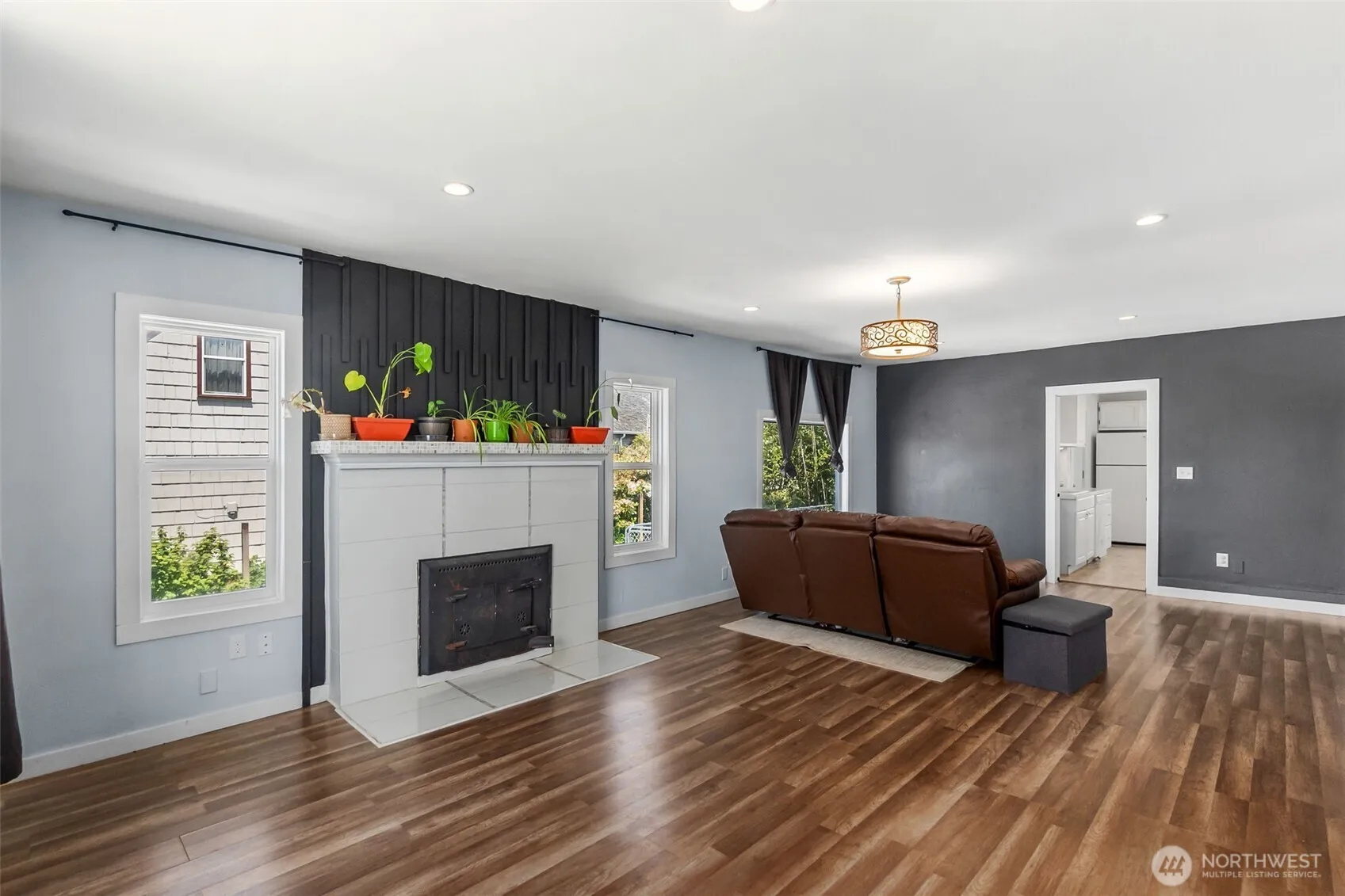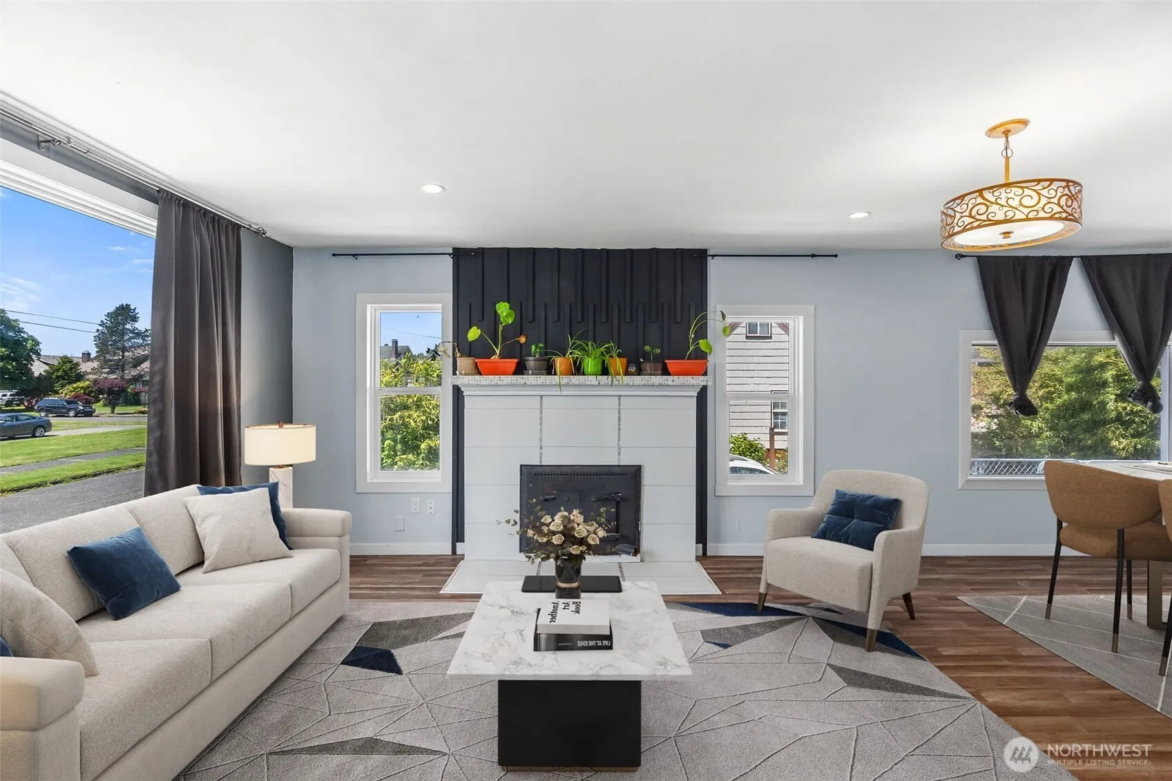 Discover timeless character blended with stylish updates in this Cozy Craftsman Charmer tucked safely out of the flood zone! Inside, enjoy the spacious open concept living and dining area with high ceilings, abundant natural light, and sleek modern laminate plank flooring throughout. The modern fireplace adds a fresh focal point, while the updated kitchen features a contemporary tile backsplash and ample storage. A bright 972 sq ft unfinished daylight basement offers endless potential—studio, workshop, or extra living space. Outside, enjoy a low-maintenance lot with garden-ready flowerbeds, a large patio for entertaining, and a private driveway. A perfect blend of historic charm and modern comfort!