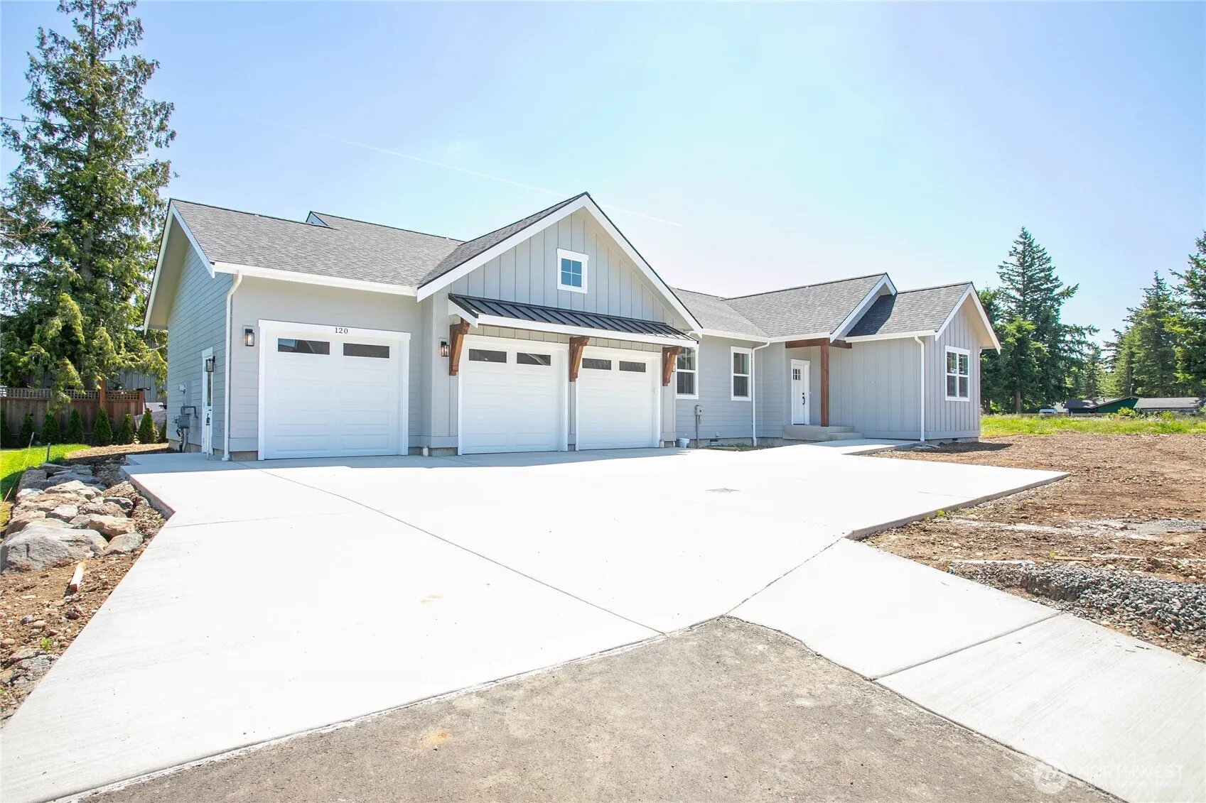 Beautiful new Pacific Edge Builders home w/ 4 bed & 2 bath on one level w/ large 3 car garage! Custom designed finishes including quartz countertops & LVP flooring throughout. Upgrades including gas fireplace & air conditioning. Large kitchen w/ custom cabinetry, tile backsplash and stainless steel appliance package. Open design concept with vaulted living room and functional floor plan. Primary bedroom with large walk in closet, bath with soaker tub & separate walk in shower. Large covered patio w/ gas hookup great for year round grilling and entertaining. Great location in a neighborhood of new homes with a short walk to Everson Elementary School and community park. Vacant and move in ready!