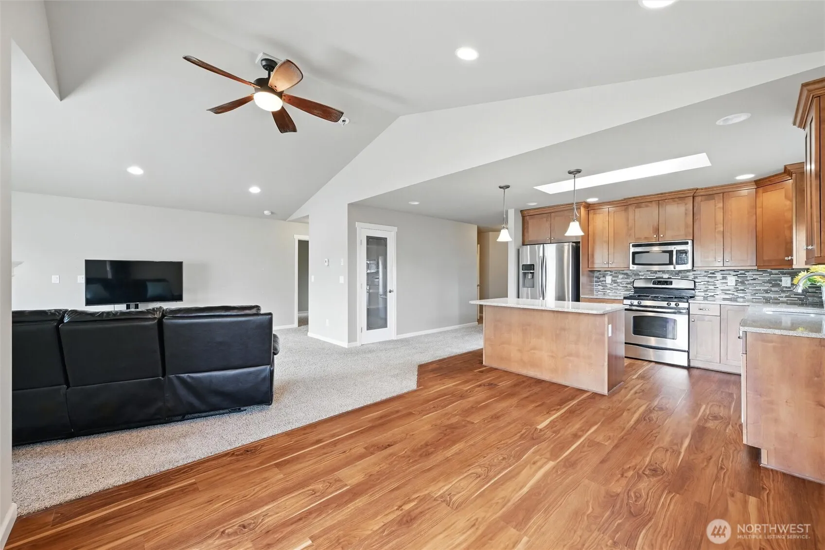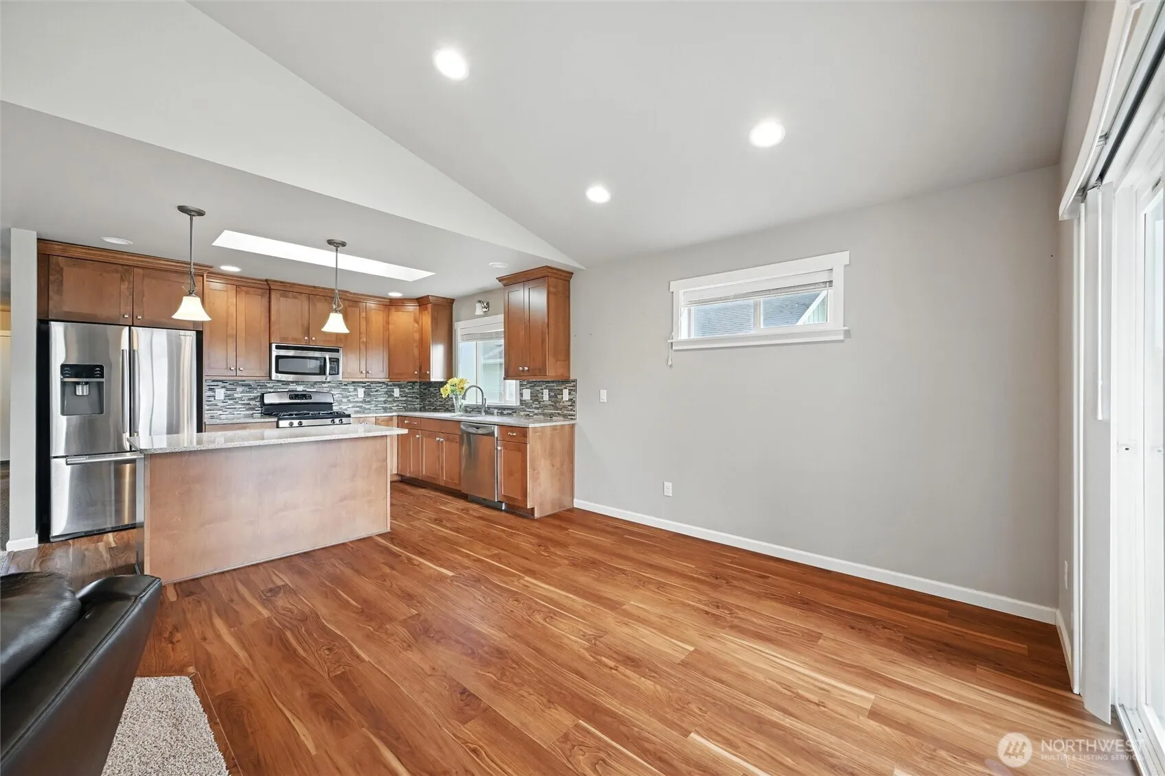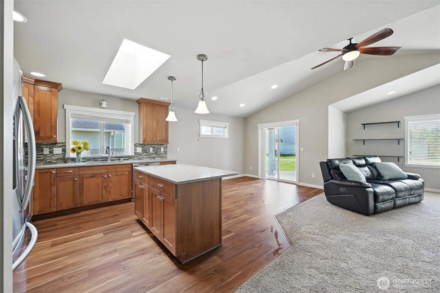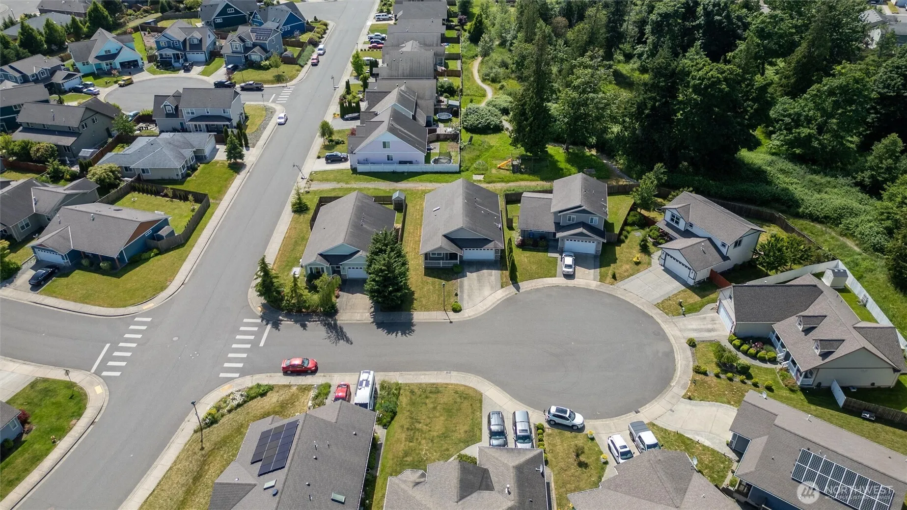 Quality rambler built by Kramer in 2013 with no steps! Even better….no HOA dues! Quiet cul-de-sac location bordering greenspace, park w/play toy & trail. Light interiors w/skylights & vaulted ceilings. Open floorplan w/inviting great room/kitchen is included in the pictures. Kitchen includes plenty of storage, granite counters, an island & walk-in pantry. Primary bedroom suite with a 3/4-bathroom, walk-in closet, fan & patio. Great room offers space for dining & patio for Summer barbecues. The home has been pre-inspected & is in very good condition. In- floor gas fired radiant heat & gas hot water. Laundry/mud room leads to oversized 2 car garage. Exceptional neighborhood with stunning view of Mt. Baker. Seller credit of $2,500. Hurry!