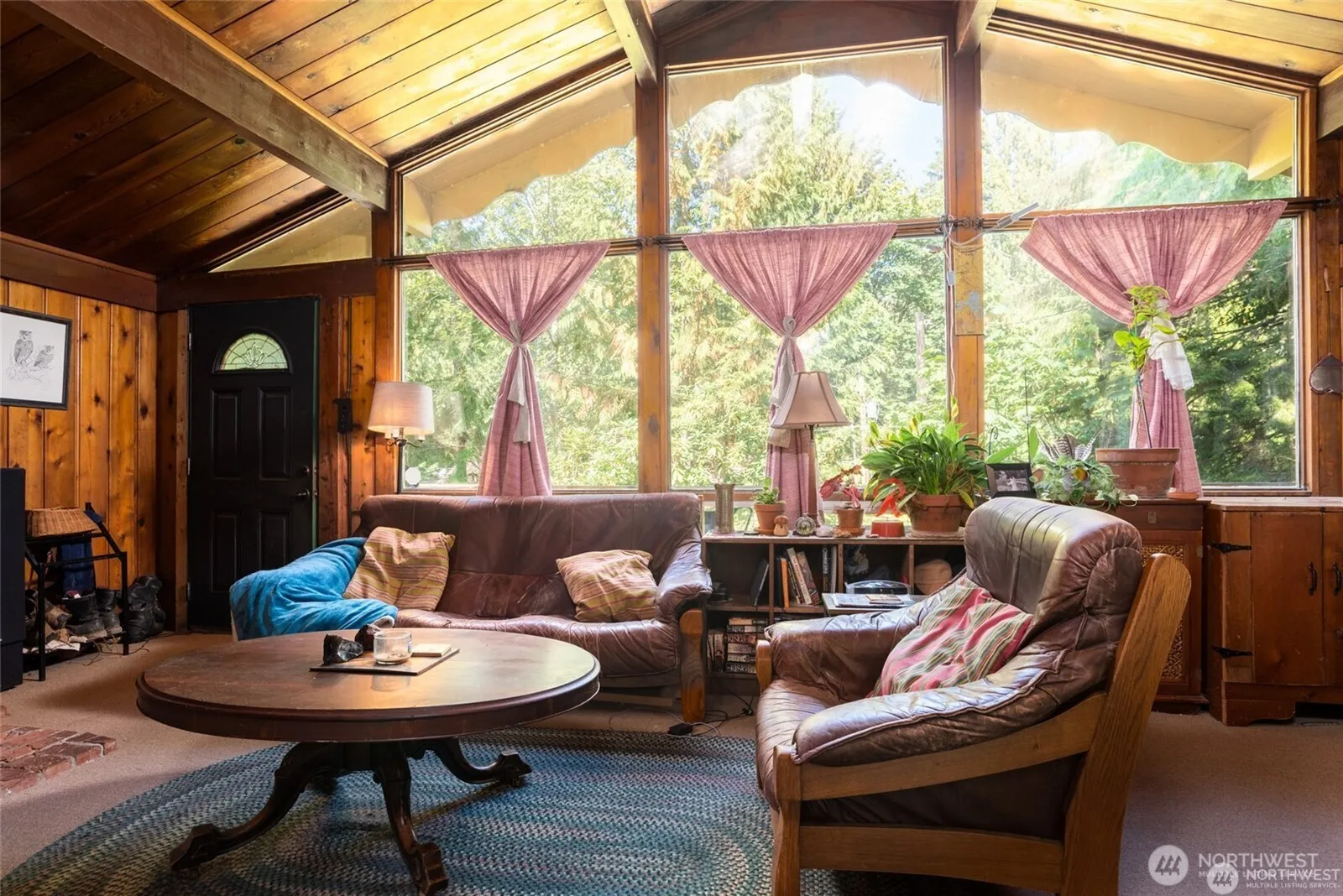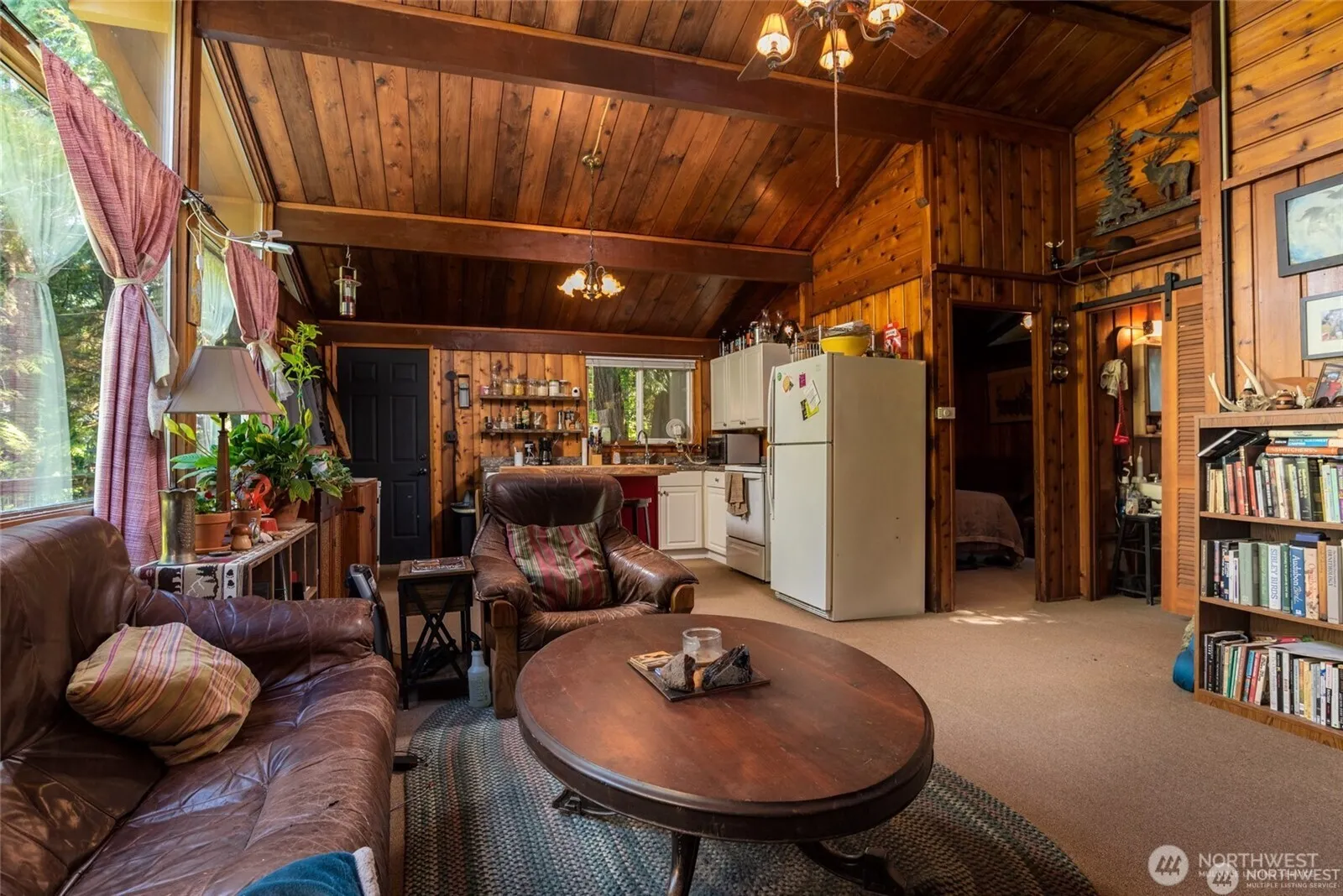 Nestled among mature evergreens on a private corner lot in Glenhaven, this Lindal Cedar home at 570 Lakeside Drive blends rustic charm with modern ease. Vaulted ceilings soar above an open-concept layout, where warm wood finishes and expansive windows frame tranquil views of wildlife. A modern kitchen flows into living and dining areas ideal for gatherings. Outdoors, unwind on the wraparound deck, cozy up by the built-in fire pit, or store gear in the 10×12 shed. The quarter-acre yard provides ample parking, plus easy 5-minute freeway access and 15-minute drives to Bellingham and Mount Vernon. Community perks include two lakes for fishing or kayaking, a summer pool, tennis courts, and clubhouse.