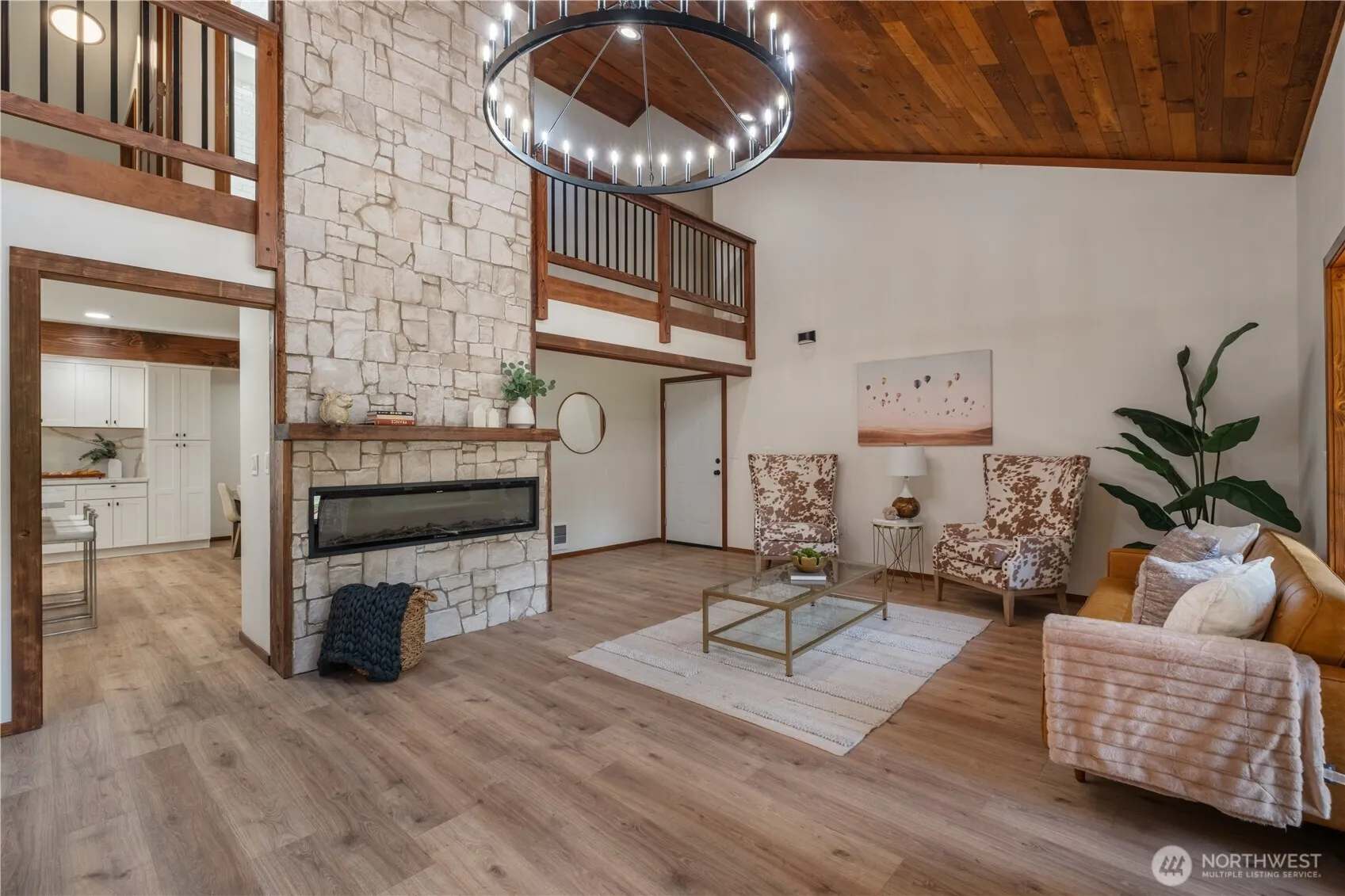 Stunning, fully updated home on 1.3 private acres with designer finishes and room to live, grow, and entertain. The main home features a brand-new chef’s kitchen with quartz countertops, a 36” professional-grade stove, shaker style cabinets, and large island. Open-concept living area boasts soaring ceilings and a dramatic two-story fireplace. Spa-like primary suite with luxurious bath. Enjoy an oversized deck, RV parking, 2 new water heaters, and no HOA. Bonus main-level ADU with private entrance, new kitchen, and full bath—ideal for guests, multi-generational living, MIL, rental income or airbnb use ($1500 is average in area) to off set mortgage expense. Oversized Garage with room for storage, and flat, usable land ready for your dreams.