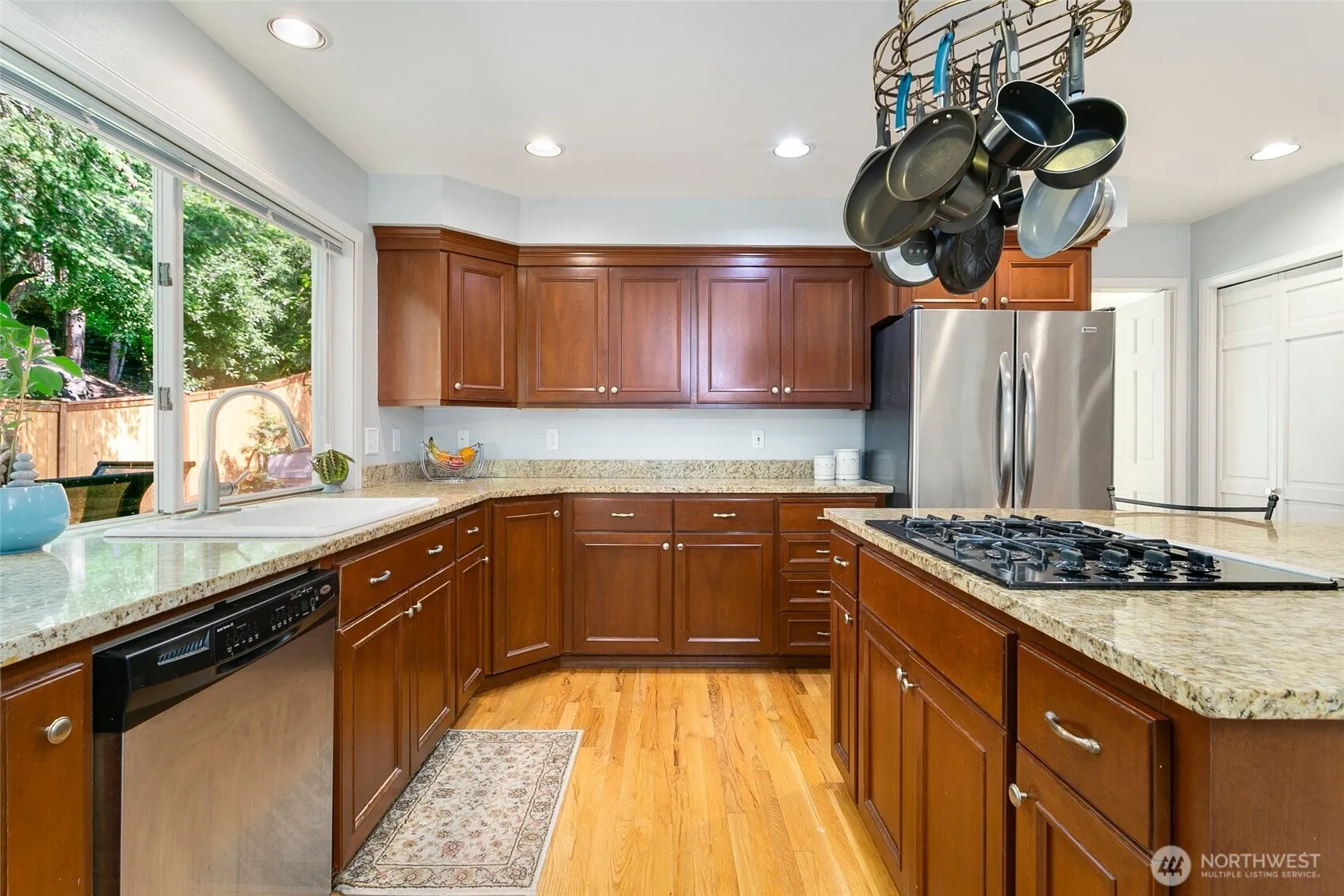 Back on market as buyer couldn’t close! Rare Opportunity in Coveted Lake Forest Estates – Tahoma School District! This beautifully maintained 5-bed + office, 2.5-bath home offers exceptional living space. Step into the gourmet kitchen feat. granite counters & lg island. Primary suite boasts fully updated 5-pc bath. Soaring vaulted ceilings elevate the elegant formal dining & family rooms, perfect for entertaining. New 50 year roof installed in 2007, Newer furnace & A/C. All baths & laundry room with high end remodeling. Custom backyard transformation w/ brick & tile work, firepit, & elegant walkways. 3-car garage. Private neighborhood amenities incl. a park, lake access w/ private beach & dock, sports courts, scenic walking trails, & more!