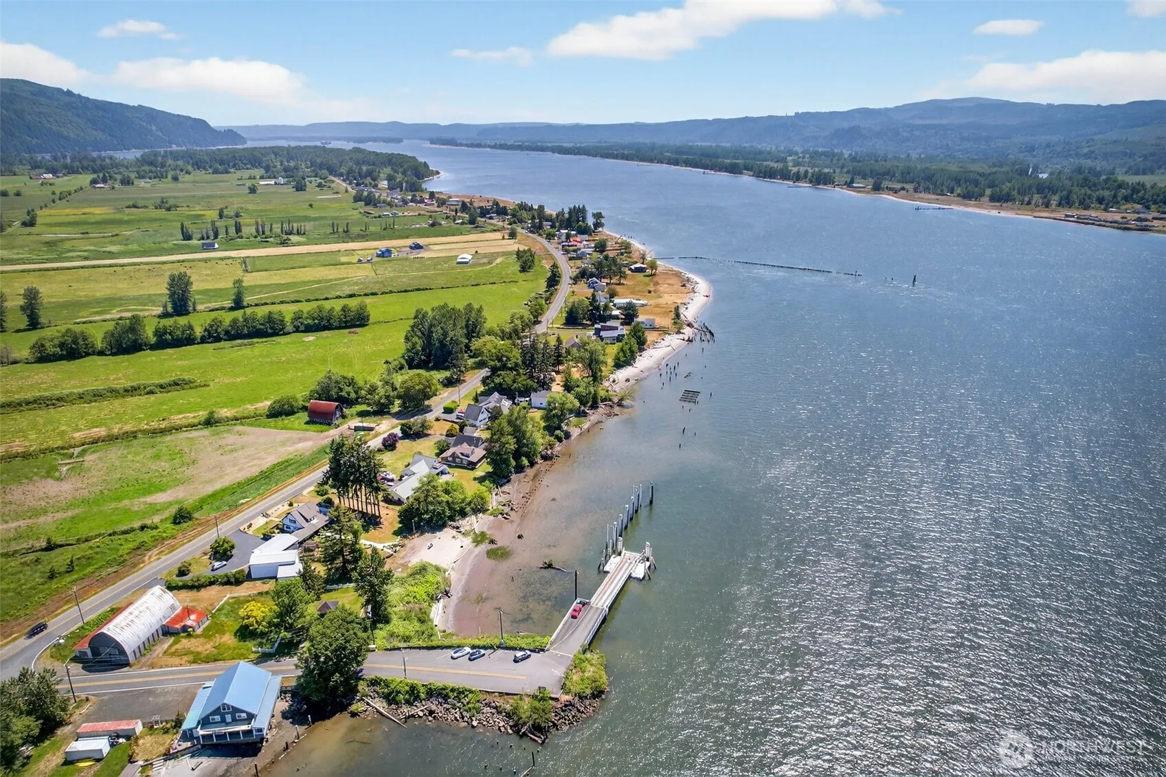 RIVERFRONT Modern country home offers a sandy beach on the Columbia river. Open plan living blends old & new. A farm style kitchen, dining room adjoins living room w/wood stove , separate Library/TV room. Master has large closet and roman tile ensuite. Upstairs-3 large bedrooms with views and a mezzanine area overlooking the river. Attic has 864 SF for your creativity. A covered breezeway leads you to 2136 SF of shops. 13′ doors on RV shop, separate entrance to tool shop w/possible ADU potential. Multiple covered parking for the car enthusiast, 2 RV Glamping spaces by beach, 1272 SF enclosed garden Conservatory w/ greenhouse & shed and chicken coop to complete this country home.