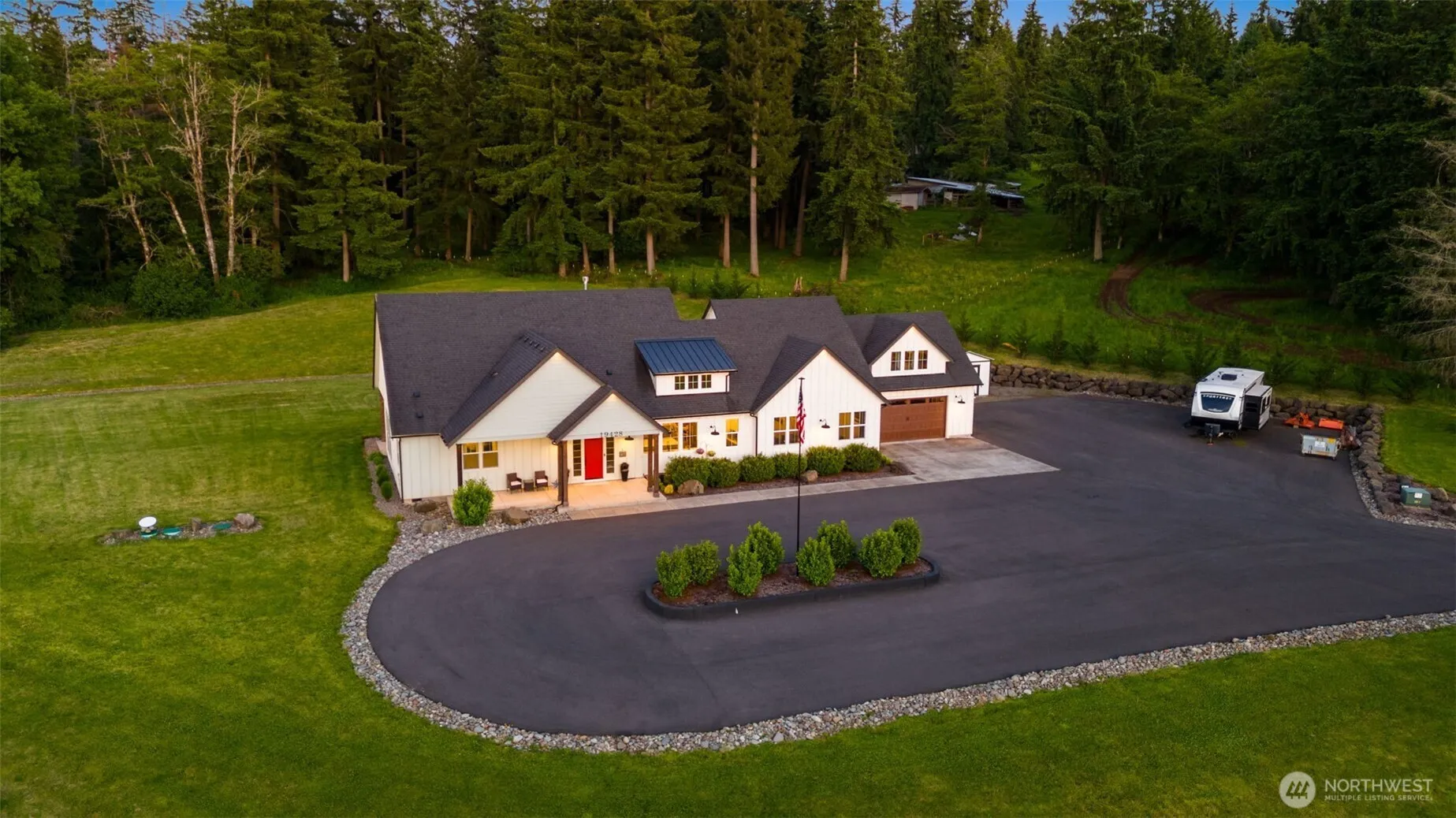 Come to be mesmerized by this custom built craftsman-Style home on 5 private, level, acres in the country side next to BG Lake but only minutes from downtown BG. This 2018 modern farmhouse features 10-ft ceilings, floor to ceiling windows, dual propane fireplaces & LVP flooring throughout. The chef’s kitchen includes SS apps, Smart-Dual ovens, built in fridge, 5-burner gas range, and a walk in butler’s pantry. The primary suite offers a spa-like bath with soaking tub, curb-less shower and large walk in closet. All bedrooms & powder room are on the main level. Full length covered patio, fire pit, 10 x 12 shed. 40×40 concrete pad ready for shop/barn. 3-car garage. RV/boat parking and water filtration system. Shop plans with purchase.