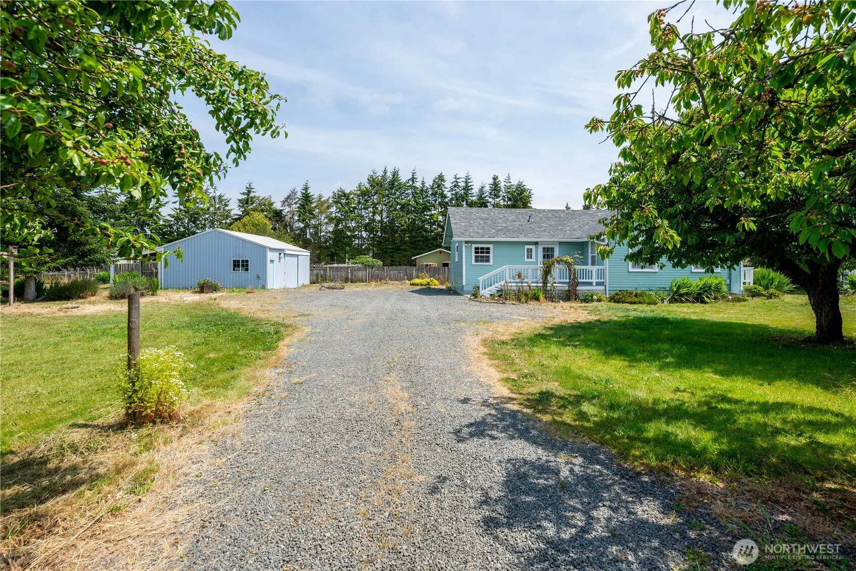 Peaceful farmhouse retreat with a Olympic Mountain backdrop. Built in 1934, this lovingly maintained cottage offers vintage charm, functional space, & room to grow on nearly 1 acre of land. The home features 950 ft² of finished living space, including a bright & open farmhouse kitchen with bead board ceilings, tiled backsplash, & open shelving. Shiplap walls, hardwood & vinyl floors run throughout, bringing warmth & personality to each room. Large windows invite natural light & frame the breathtaking mountain backdrop. The land is complete with fruit trees, garden space, greenhouse & a 720 ft² garage – ideal for hobbies, parking, or storage. Peaceful country living with quick access to Port Angeles, Sequim, & Olympic Discovery Trail.