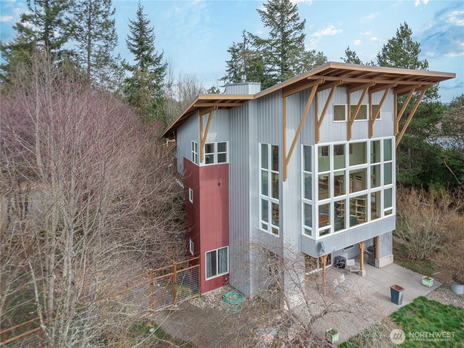 Large Estate with TWO tax parcels, altogether 8.15 acres. The three-level home features a mountain view & overlooks a lush fenced yard. This stunning architectural home features a wall of windows for passive solar gain. 3BR w/bath on each level. Many artistic flourishes. Extras include a wine cellar, Murphy bed, built-in desk & bookcases, hand-forged metalwork by local artisans, heated garage (676 sf), heated 10’x20′ heated studio + greenhouse & two fenced gardens. The extra parcel features a 960 sf pole barn with attached RV carport with water & power. Multi-generational living possible- ADU below & add’l house + ADU on other parcel. Seller intends to sell the house first and not sell the extra parcel now. Dream big and settle down here.