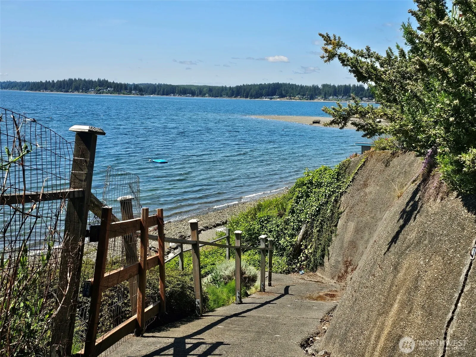 Huge waterfront home with amazing views of Case Inlet, Treasure, Stretch, Harstine Islands, and beyond! Enjoy life on the water on this acre+ lot with easy paved access to the beach to boat, fish, or harvest shellfish on your private tidelands. The main floor of the house consists of a living room with a wood stove and T&G cedar ceiling, a functional kitchen, a half bathroom, and a guest room with an ensuite bathroom. The expansive primary bedroom boasts a wet bar, pellet stove, walk-in closet, 5-piece bathroom, & sun deck. Also upstairs is a bedroom, a storage area, & a three-quarter bathroom. Both levels have washers & dryers. The comfortable heat pump, three-car garage, and elevator help complete this excellent value. Check it out today!
