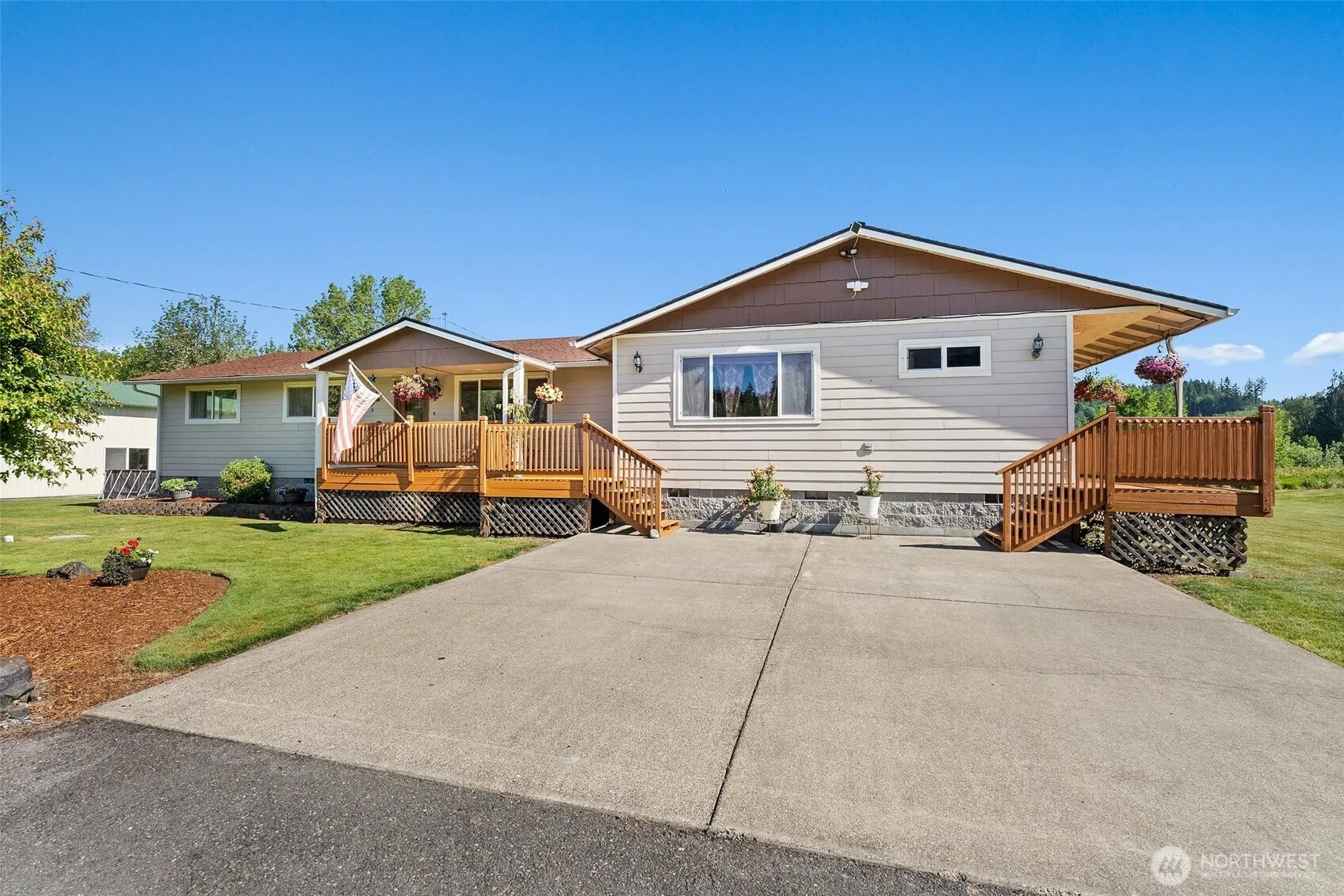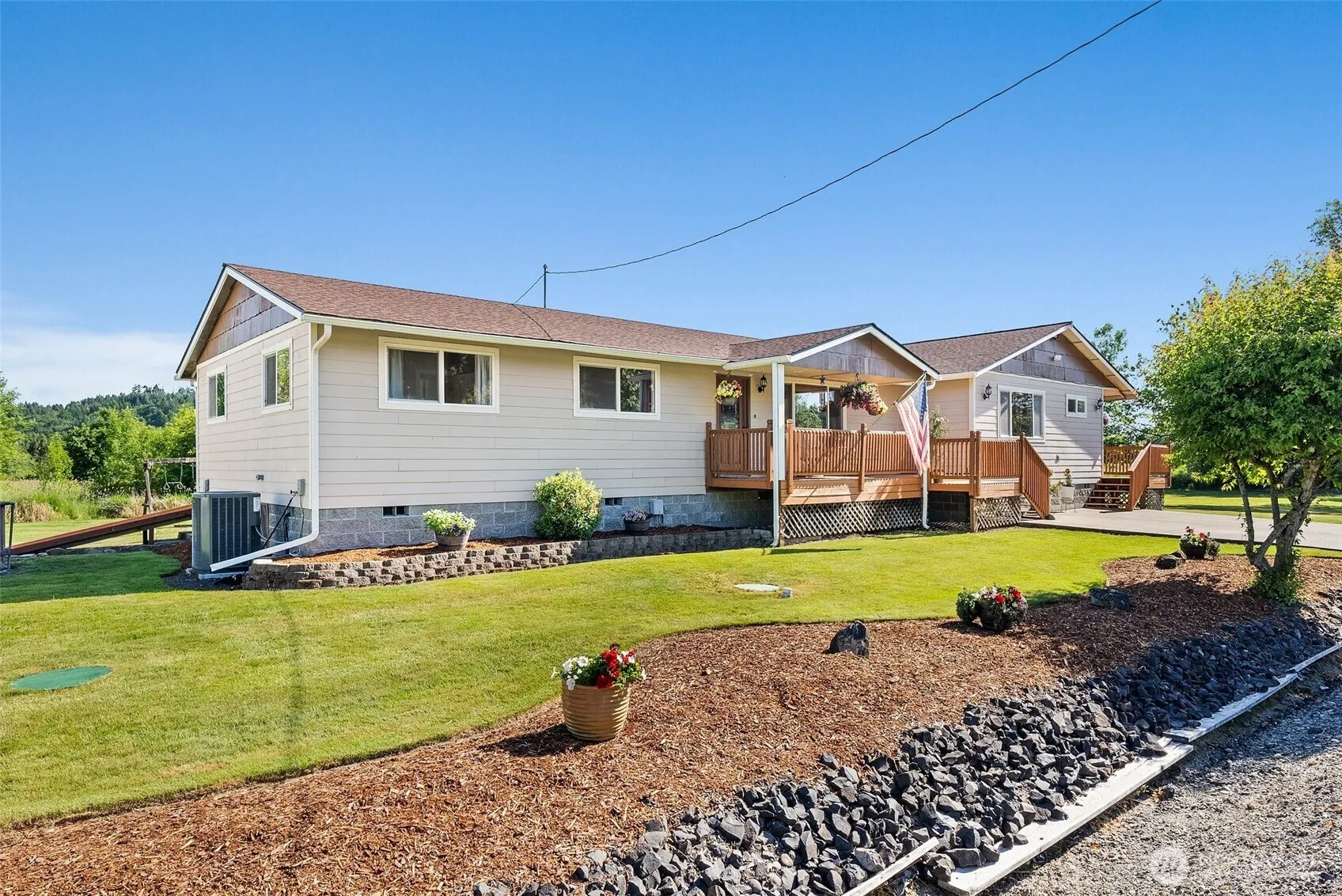 Welcome Home! This stunning 2400+ sq.ft. home boasts spacious throughout! 4 bedrooms. 2.5 baths & an amazing open concept kitchen w/all stainless appliances, two ovens & eating bar. The dining area & lg. living rm. with vaulted ceiling, wood stove & doors to the back deck make this home perfect for entertaining. The primary bedroom is truly a retreat w/enormous walk in closet & a Lg. full bath. The other end of the home, you will find 3 beds, a full bath 1/2 bath & 1 bedroom can dbl.as an additional primary. Step out & and fall in love with the 2 park like acres. Lg. detached shop, enclosed pen perfect for chickens & an animal or two. Country living yet minutes to shopping, parks & I-5. Pride of ownership shines. Come view this one today!