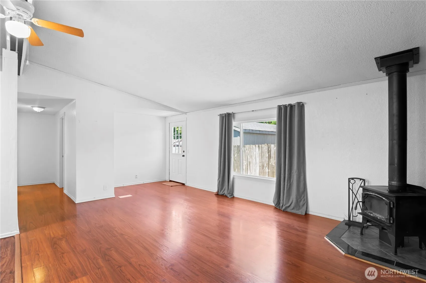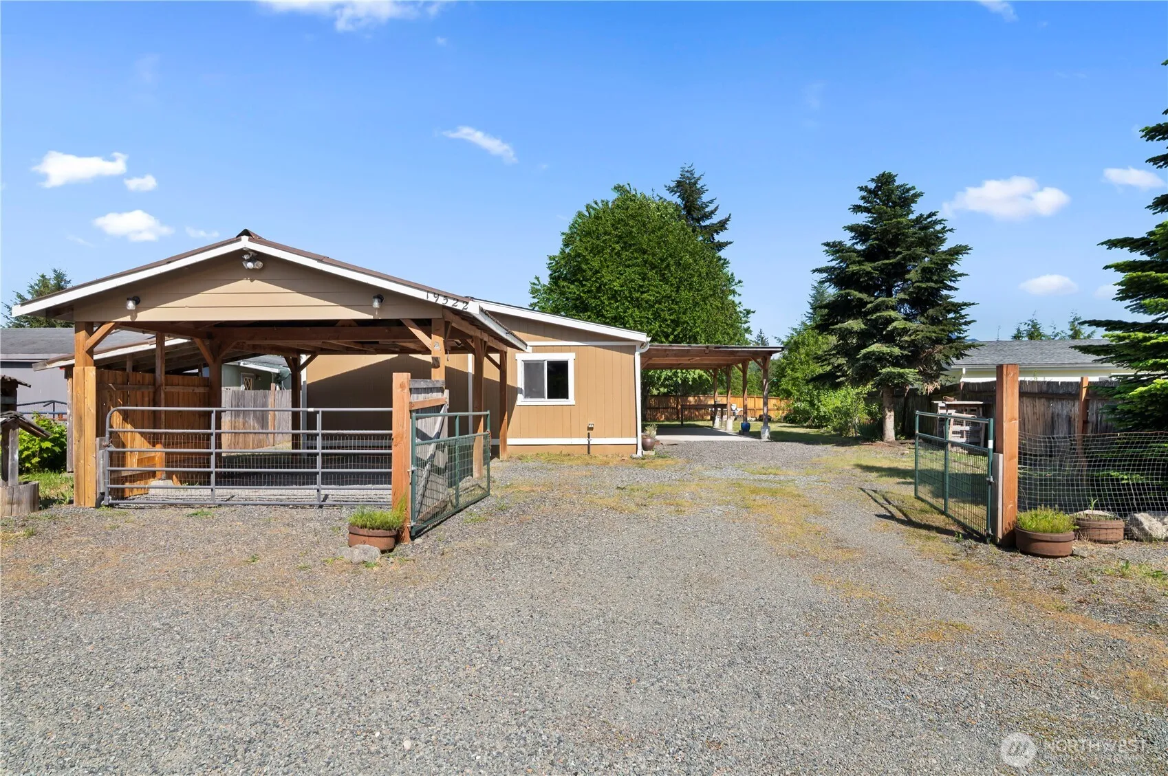 Their loss is your gain- last buyer lost financing. This country gem is ready for you to move in and love. Big, flat lot has mature cherry, apple, pear trees and blueberry bushes ready for you to harvest fruit this summer/fall. Huge, covered patio is perfect for year-round fun with the bbq. Fully fenced yard has two drive-through gates. Detached carport is accessed two different ways- space to park two vehicles plus wood storage. This home is generator-ready and can keep most of your home seamlessly running during the winter power outs. Big, open kitchen, living and dining room, and skylight brightens the whole kitchen. Big primary has its own full bath and walk-in closet. Bring your paint brush and make this beauty shine again.