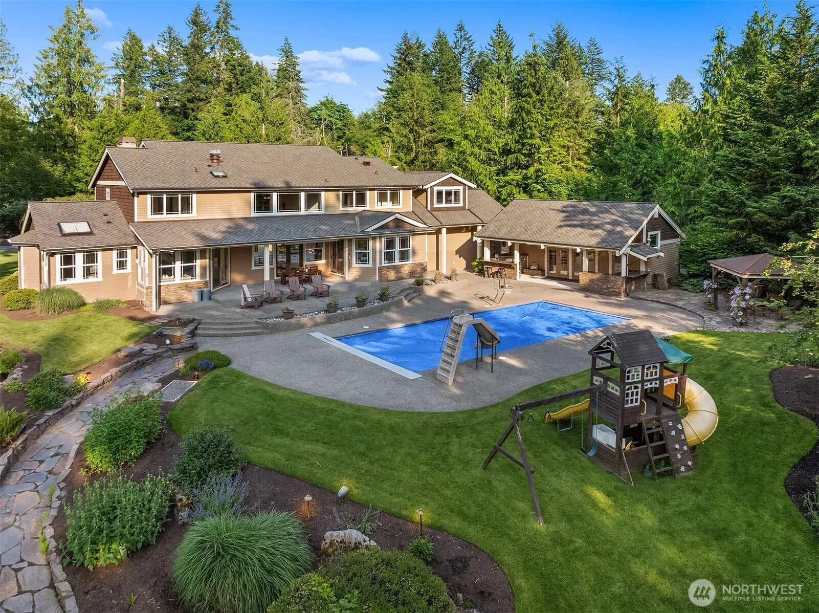 SELLER PAYS FOR 2-1 BUYDOWN! Start your rate in the 4s! Tucked away on a quiet cul-de-sac, this extraordinary shy 5000sf Home exudes luxury while offering privacy and room to roam on well over 3 acres. This custom Home boasts expansive Living spaces with a Kitchen/Great Room to amaze. Sub Zero, 2 Dishwashers, Wolf 6 Cooktop, Warming Drawers, built-in Miele Coffee, Kegerator…& room for a crowd. Luxurious Primary Suite on the Main. 3 bedrs upstairs (2 Ensuite), Pool Room, Media Room, A/C…But the real excitement comes when you walk out the back door…inground Pool, Cabana with full Kitchen, 3/4 Bath, sleeping Loft & outdoor BBQ area! Tiny House, Fishing Pond, 3000+SF Shop that fits a 45′ RV. Simply stunning. Tahoma SD. Welcome Home!